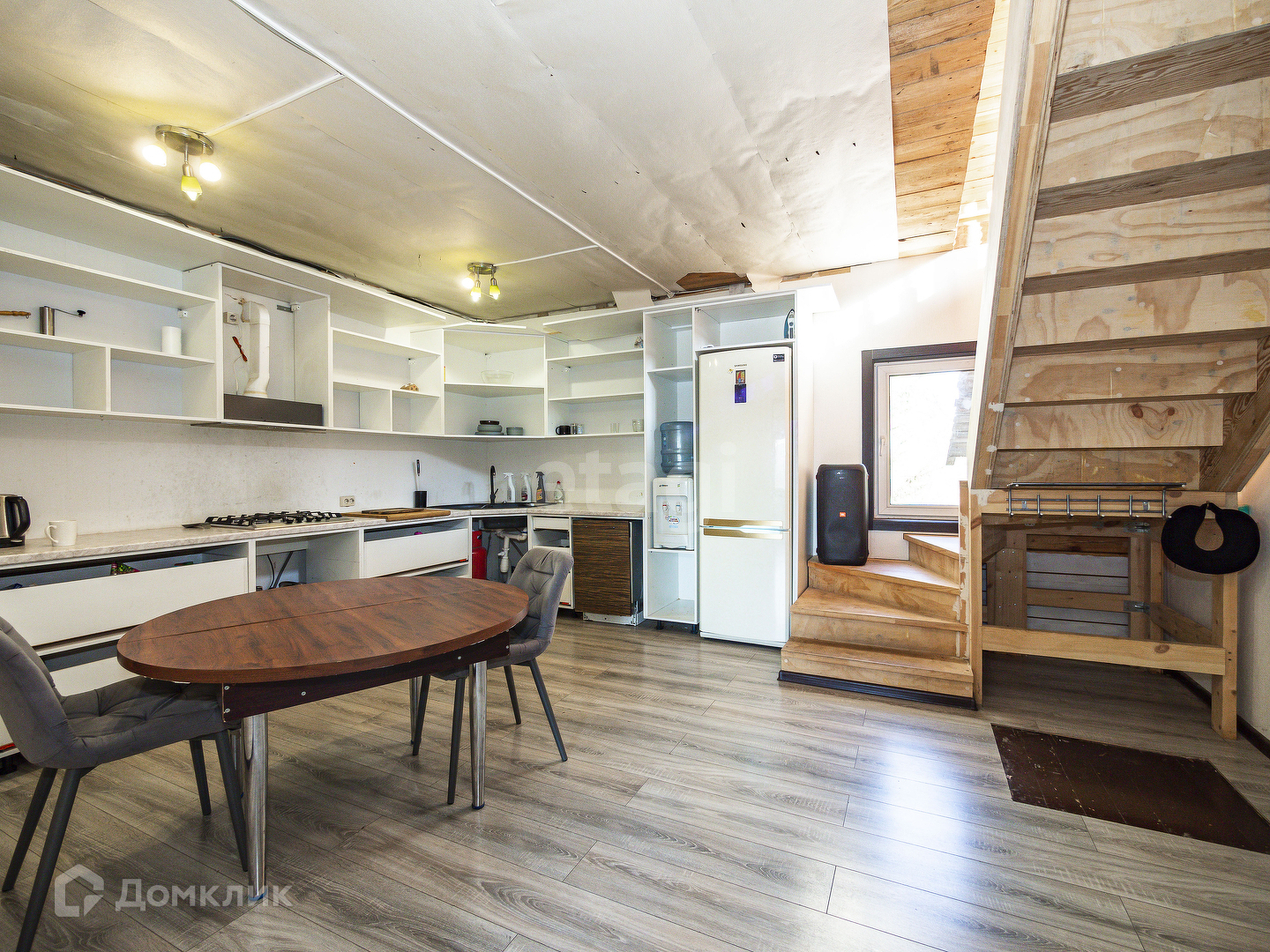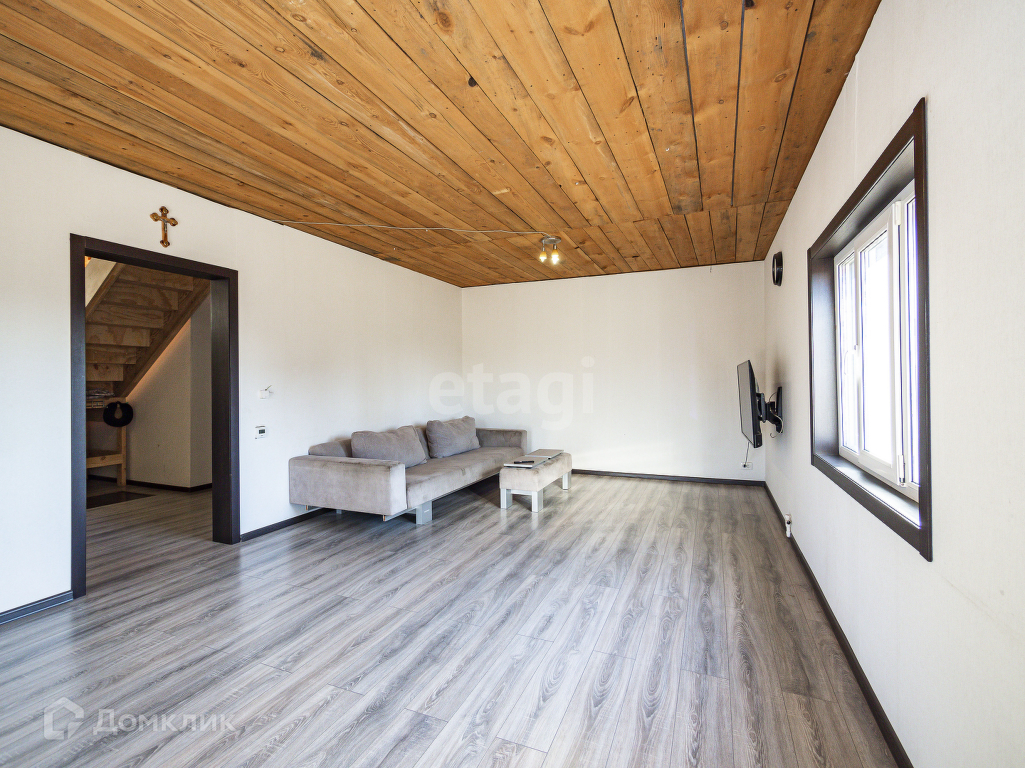 На первом этаже дома находится кухня-гостиная, гостевая, хоз.комната, санузел с душевой, большая прихожая.