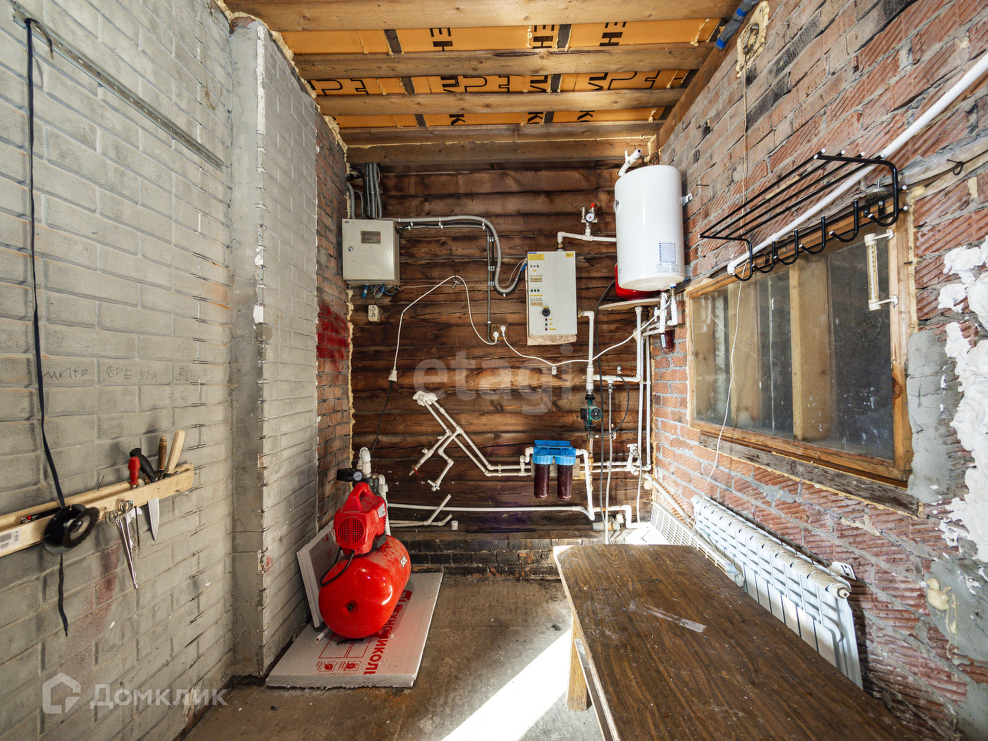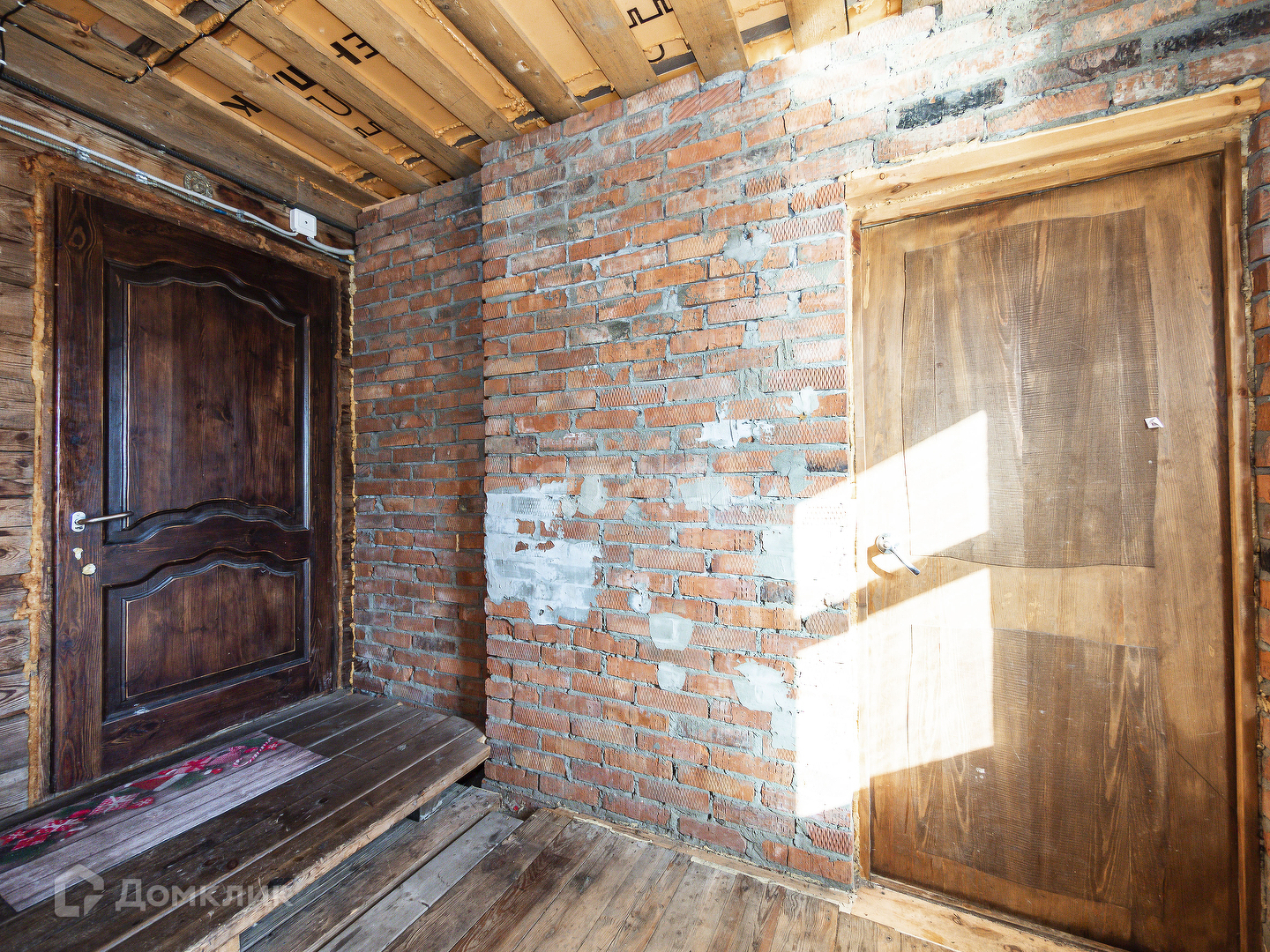 Дом из бруса, обшит сайдингом, проложен утеплитель. Фундамент бетонный ленточный, крыша металлочерепица.