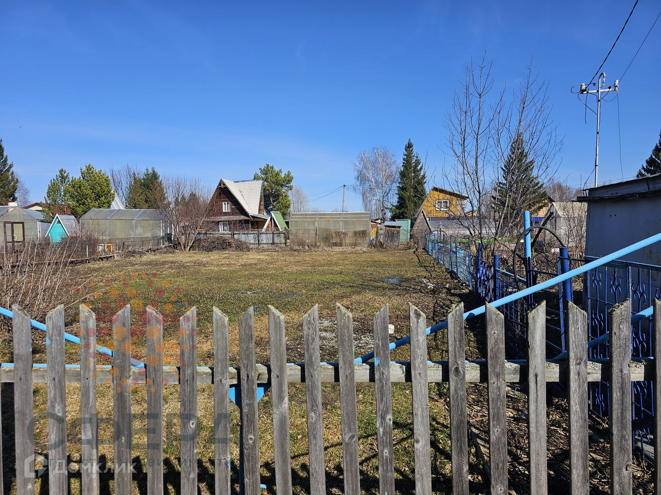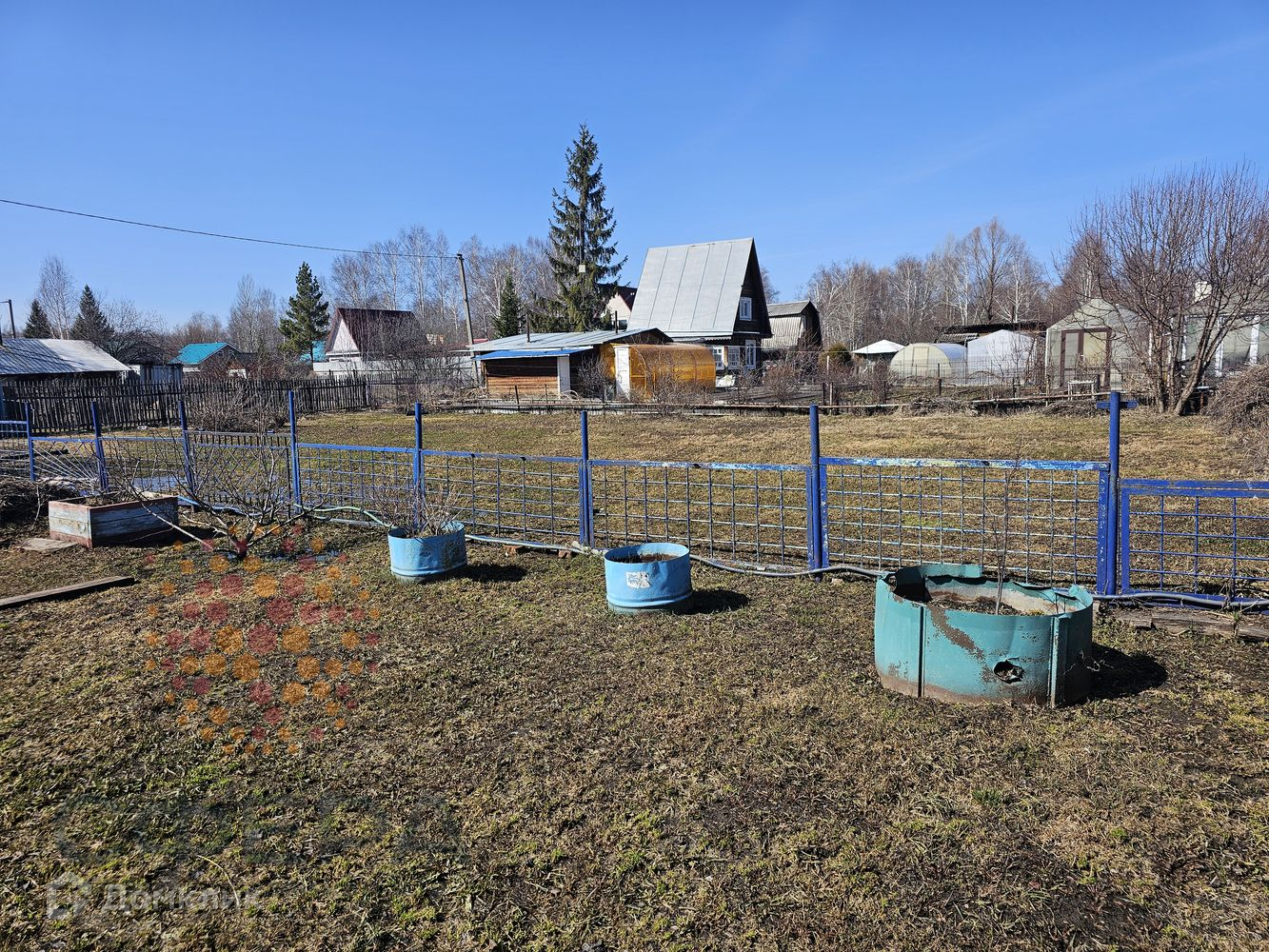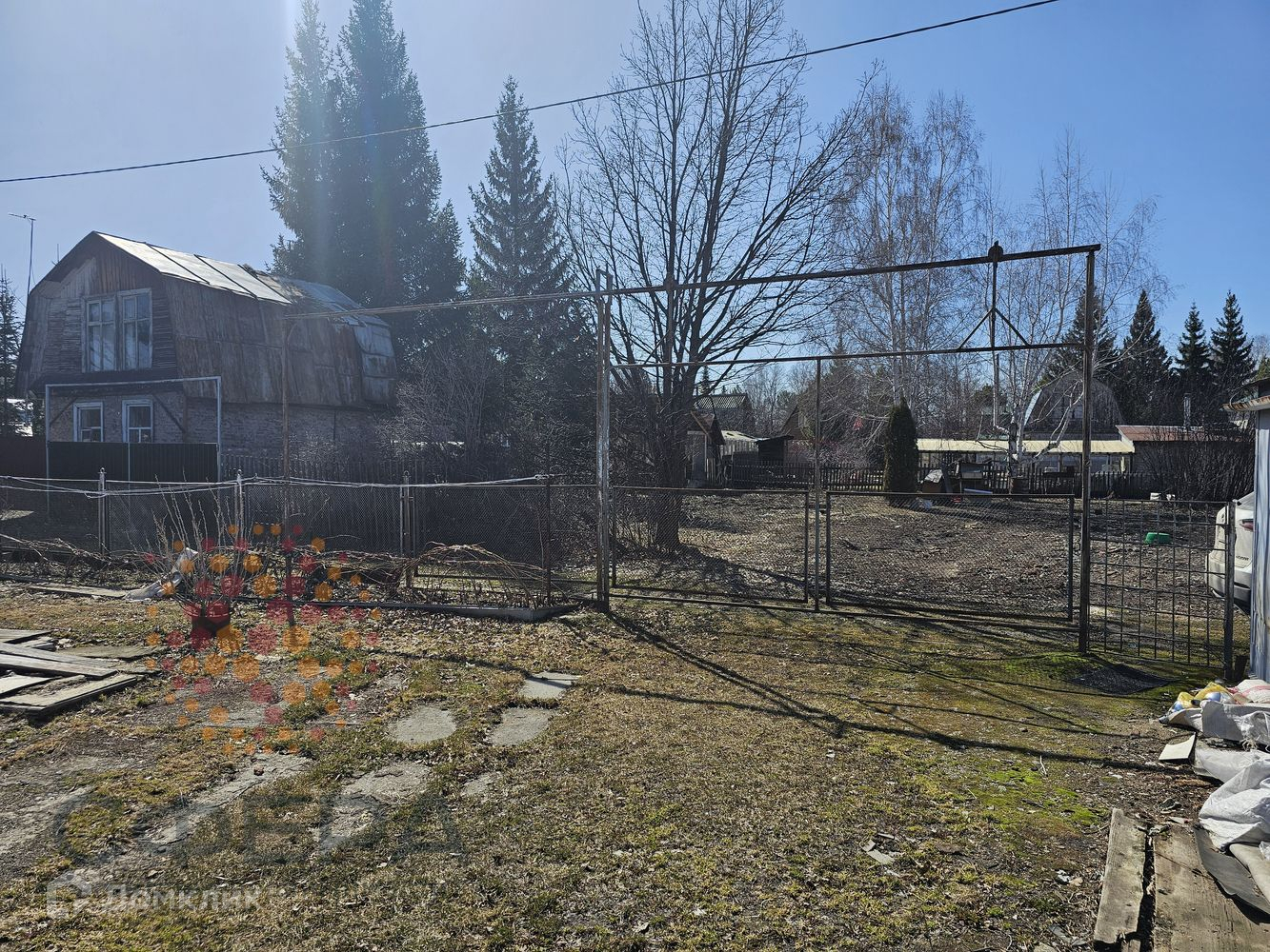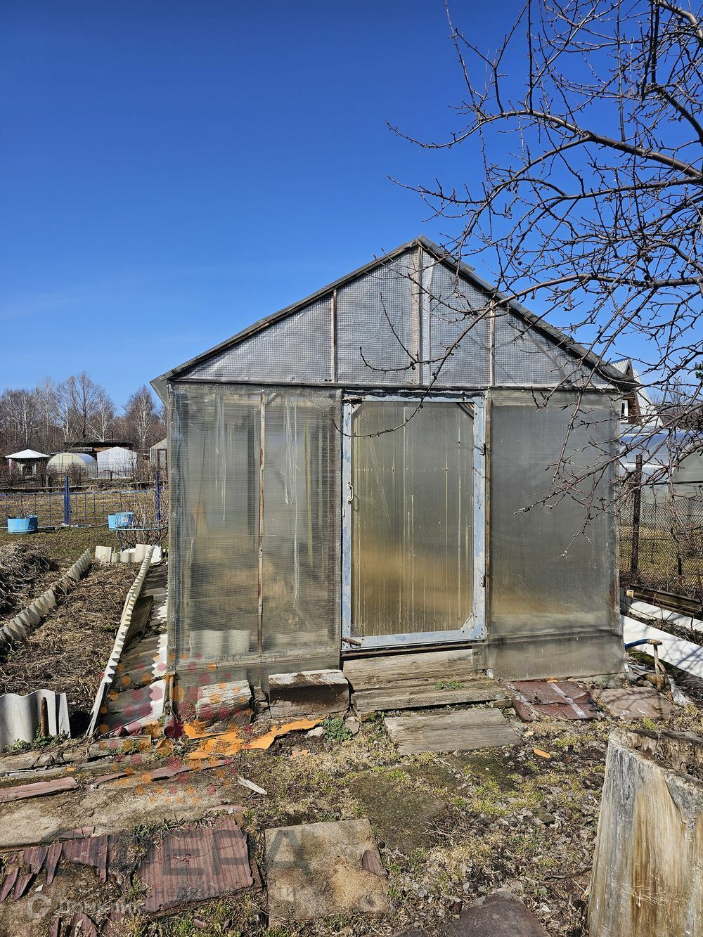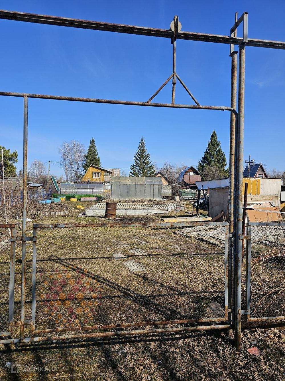 На участке теплица, гараж металлический, много дров, навес для отдыха, огороженные грядки.