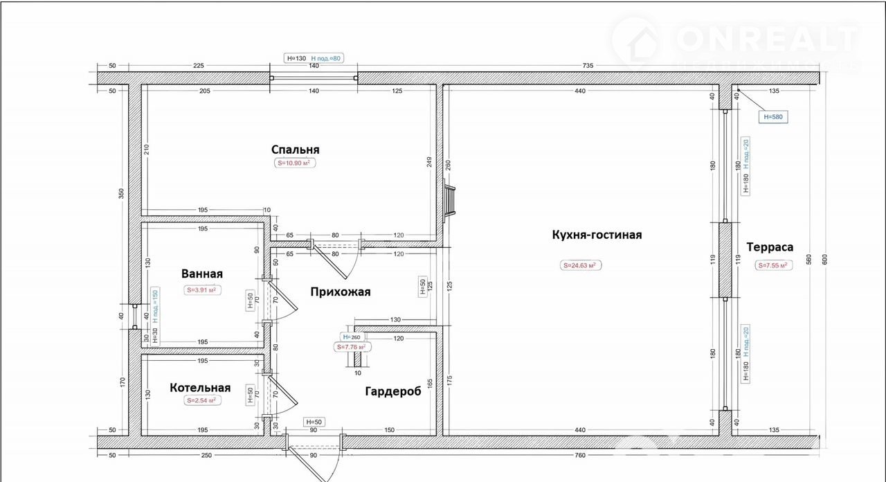 Высота потолков 2,6 м. , высота дома 6 м.