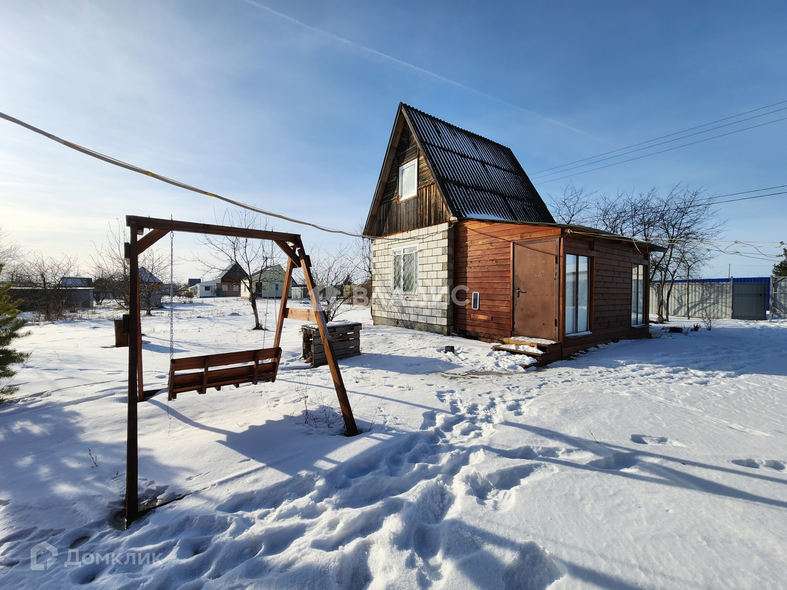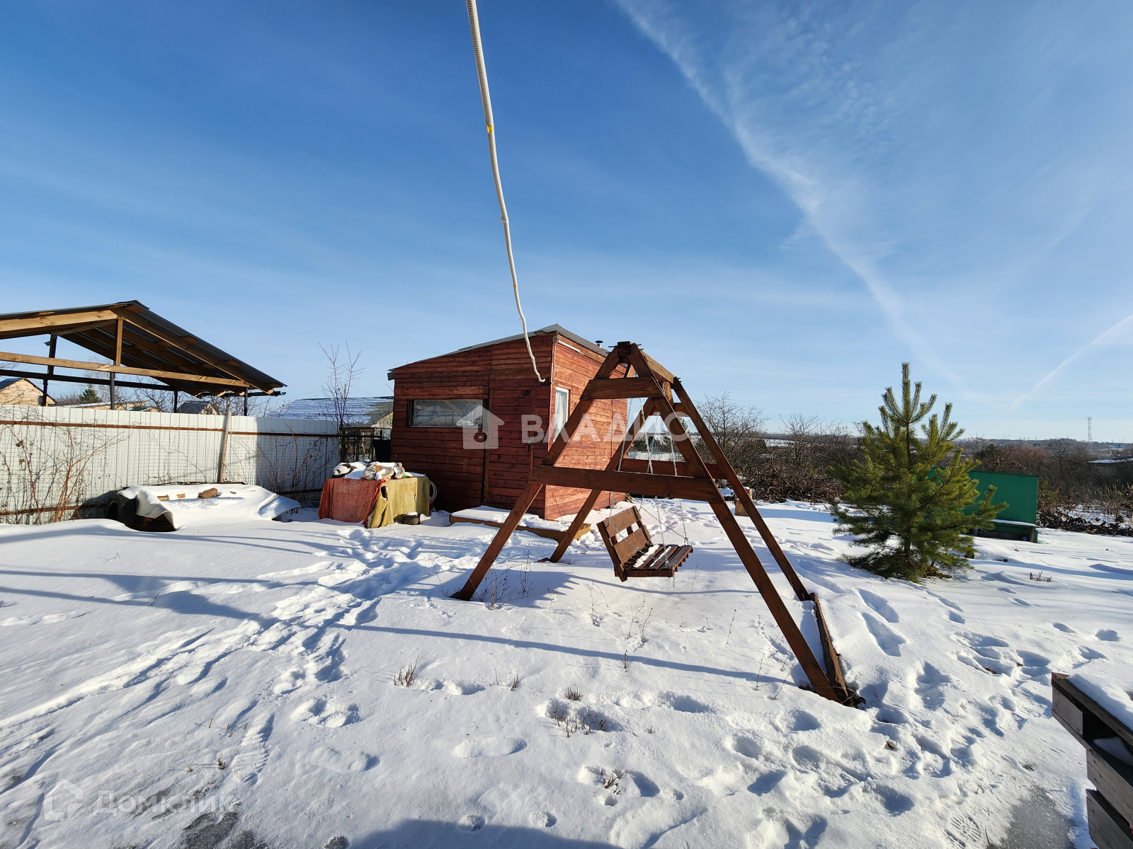 На участке расположена  баня обитая вагонкой, деревянные качели для комфортного отдыха, мангал.