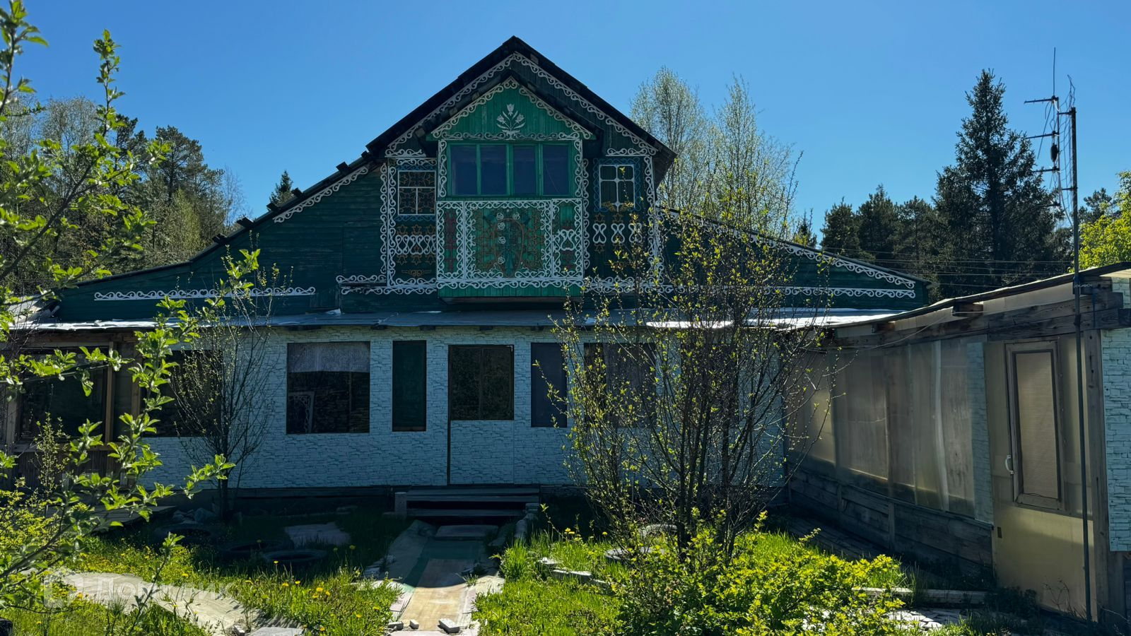 На территории есть сараи, баня, теплица.