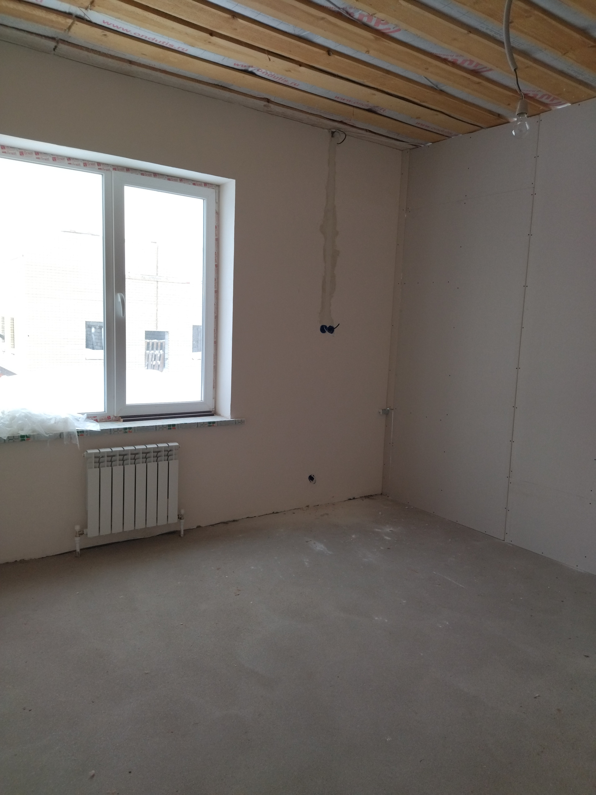 Дом продается в предчистовой отделке: гипсовая штукатурка, полусухая стяжка пола, разводка электрики по всему дому, «теплый пол» по всему 1 этажу и в сан. узле на 2 этаже дома, металлический каркас лестницы, пластиковые откосы и подоконники, радиаторы отопления под каждым окном, двухконтурный газовый котел.