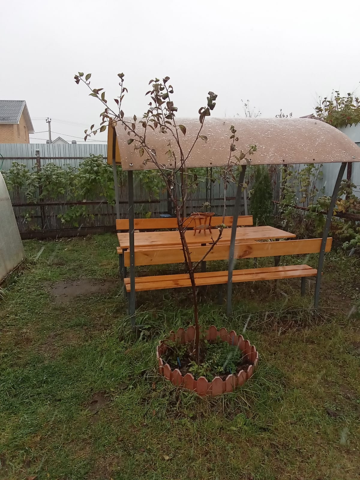 Участок имеет квадратную ровную форму с ухоженным садом (6 яблонь, 5 груш, сортовая малина и т.д.), зону отдыха с мангалом, теплицу, гараж, на въезде автоматические ворота, калитка с цветным домофоном.