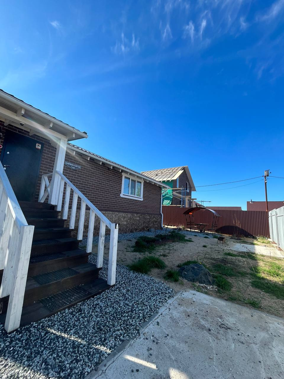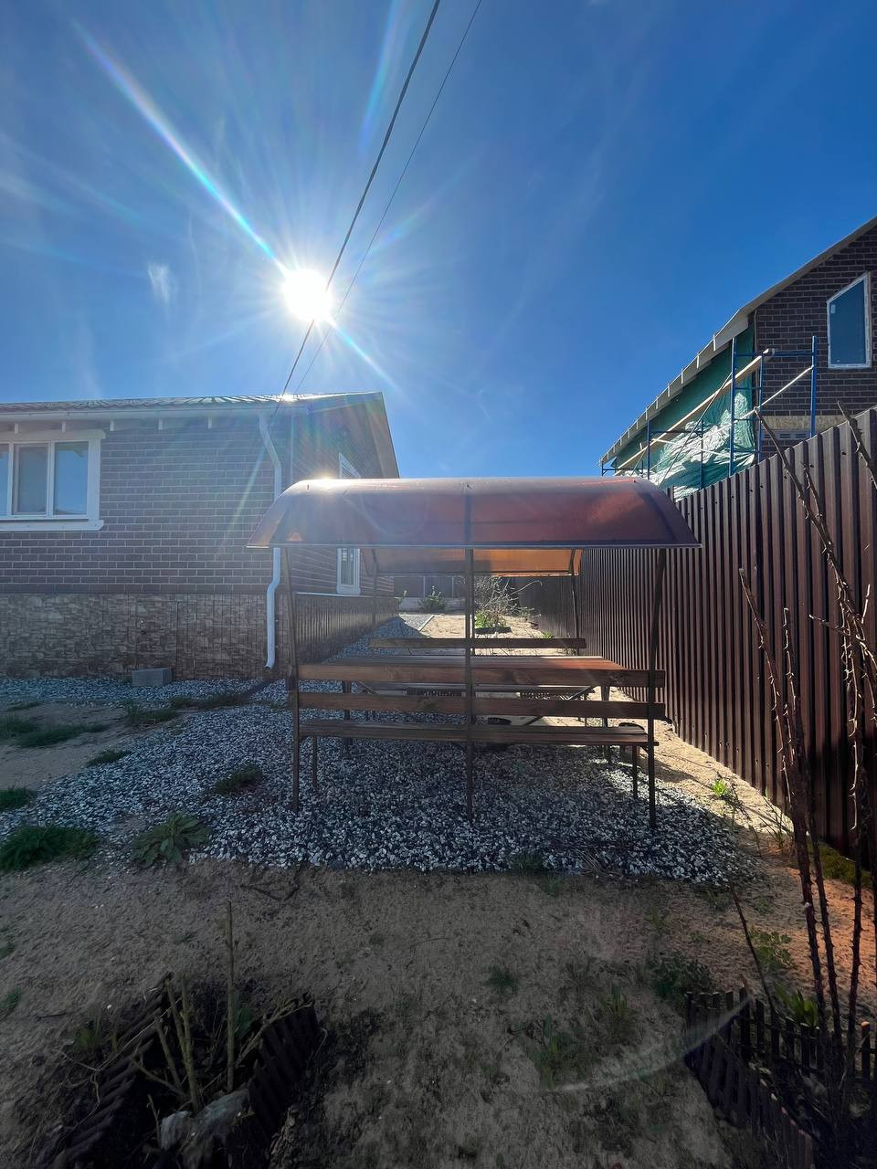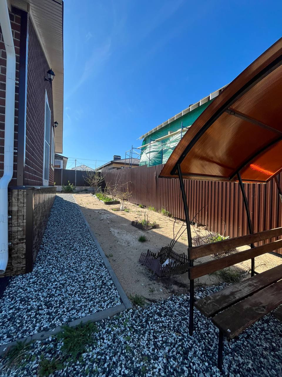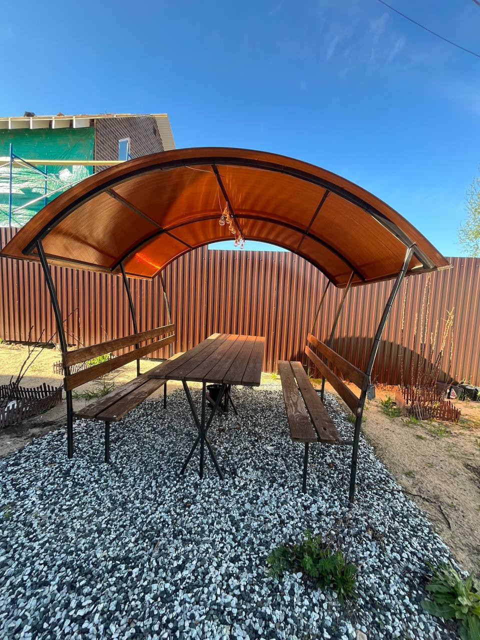 Ландшафтный дизайн, зона барбекью, беседка, забор из профнастила и т.д. Замечательный дружные соседи.