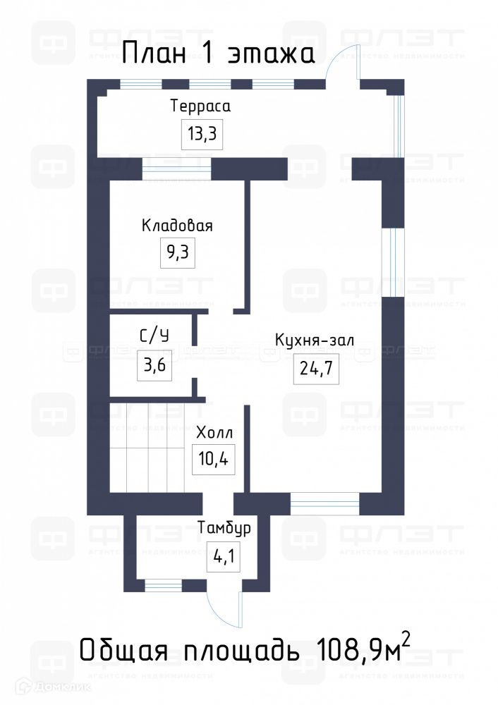 Общая площадь дома 108,9 м2: