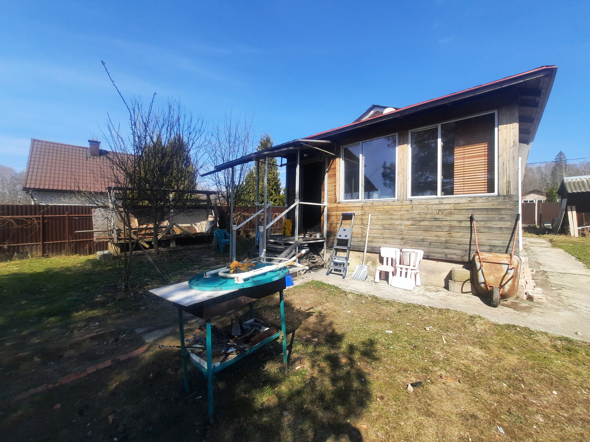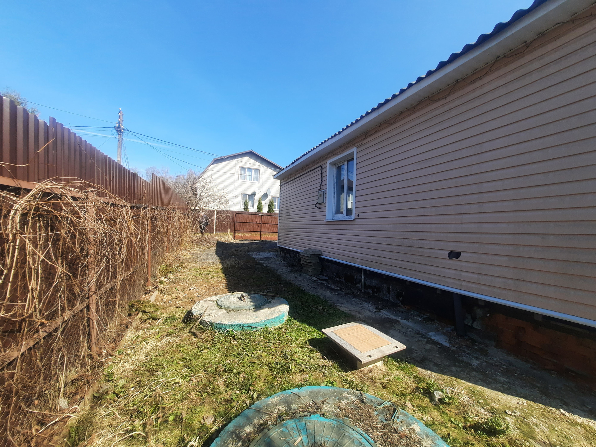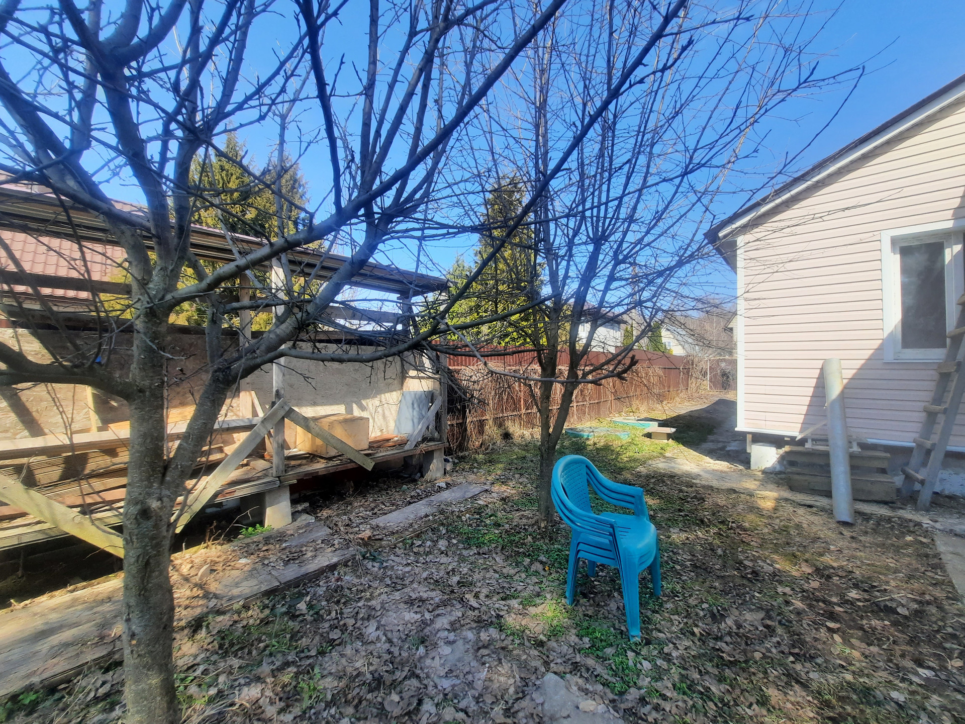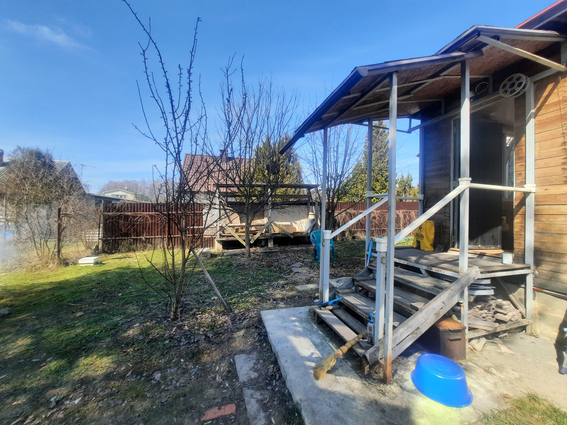 Участок огорожен забором из профнастила и сетки рабицы.