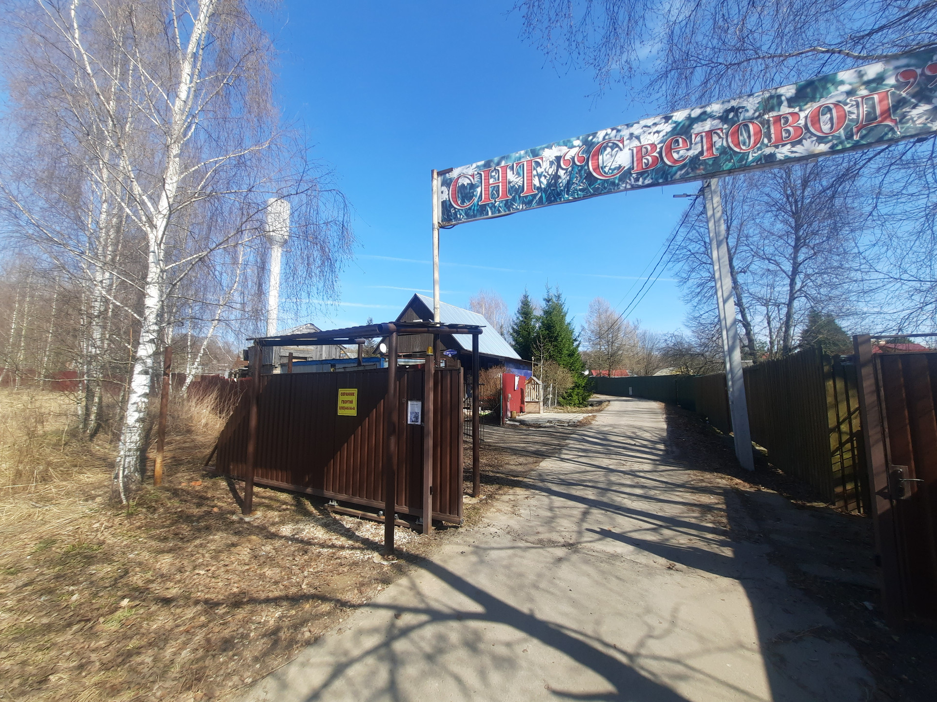 Огороженная территория, охрана на въезде, автоматические ворота.