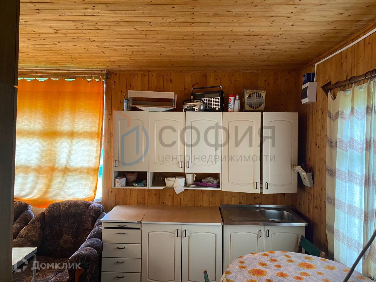 В доме оставляем часть мебели - кухонный гарнитур, диваны.