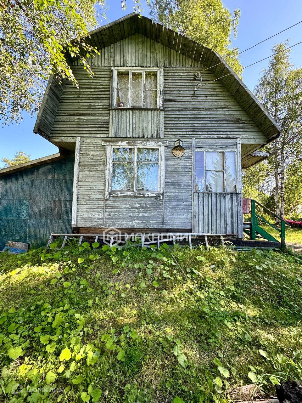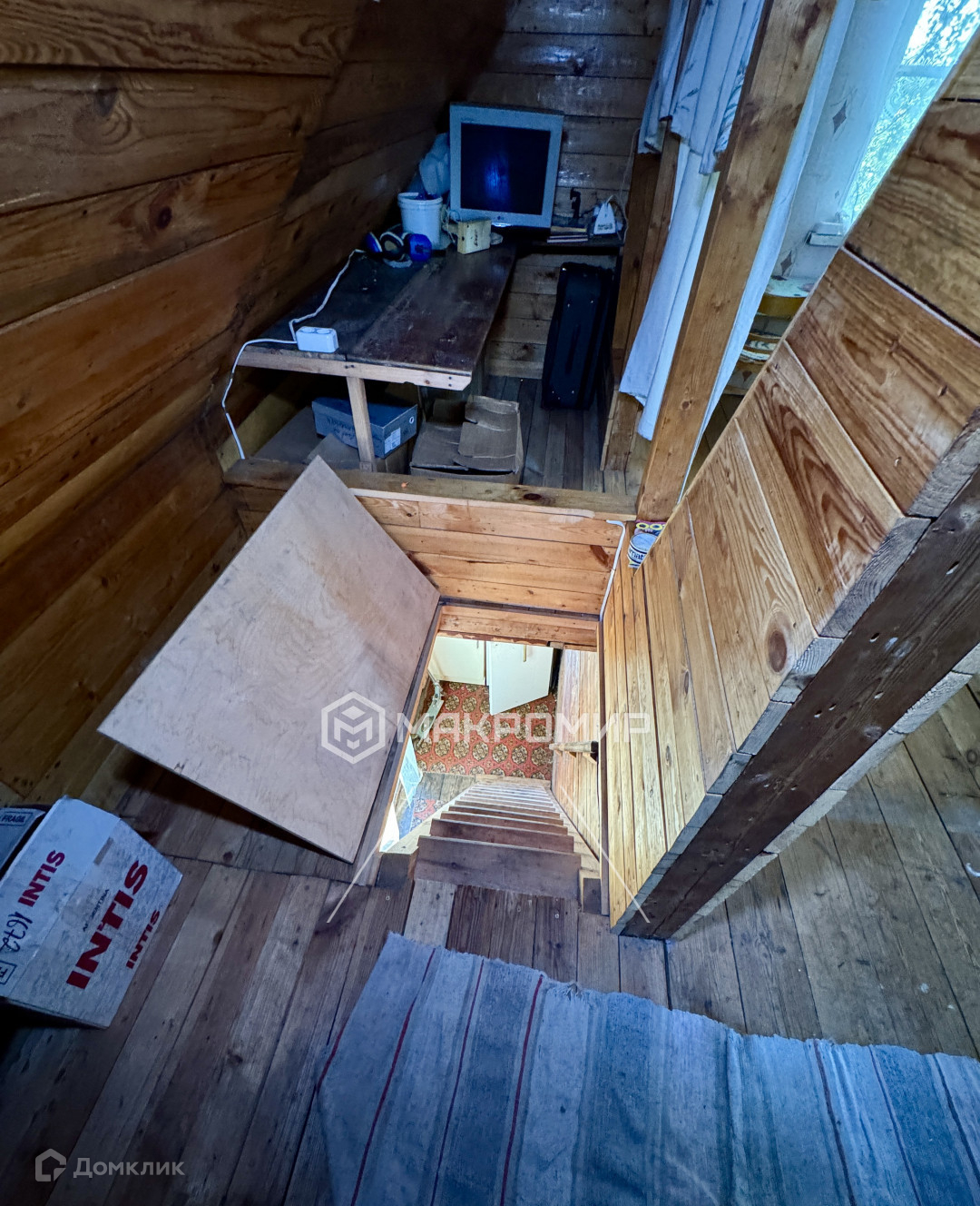 Дом из бруса, подходит для проживания зимой (тепло держит хорошо), 2 -этажный, стоит выше уровня участка на 1,5 метра, на бетонных балках на которые постелен брус.