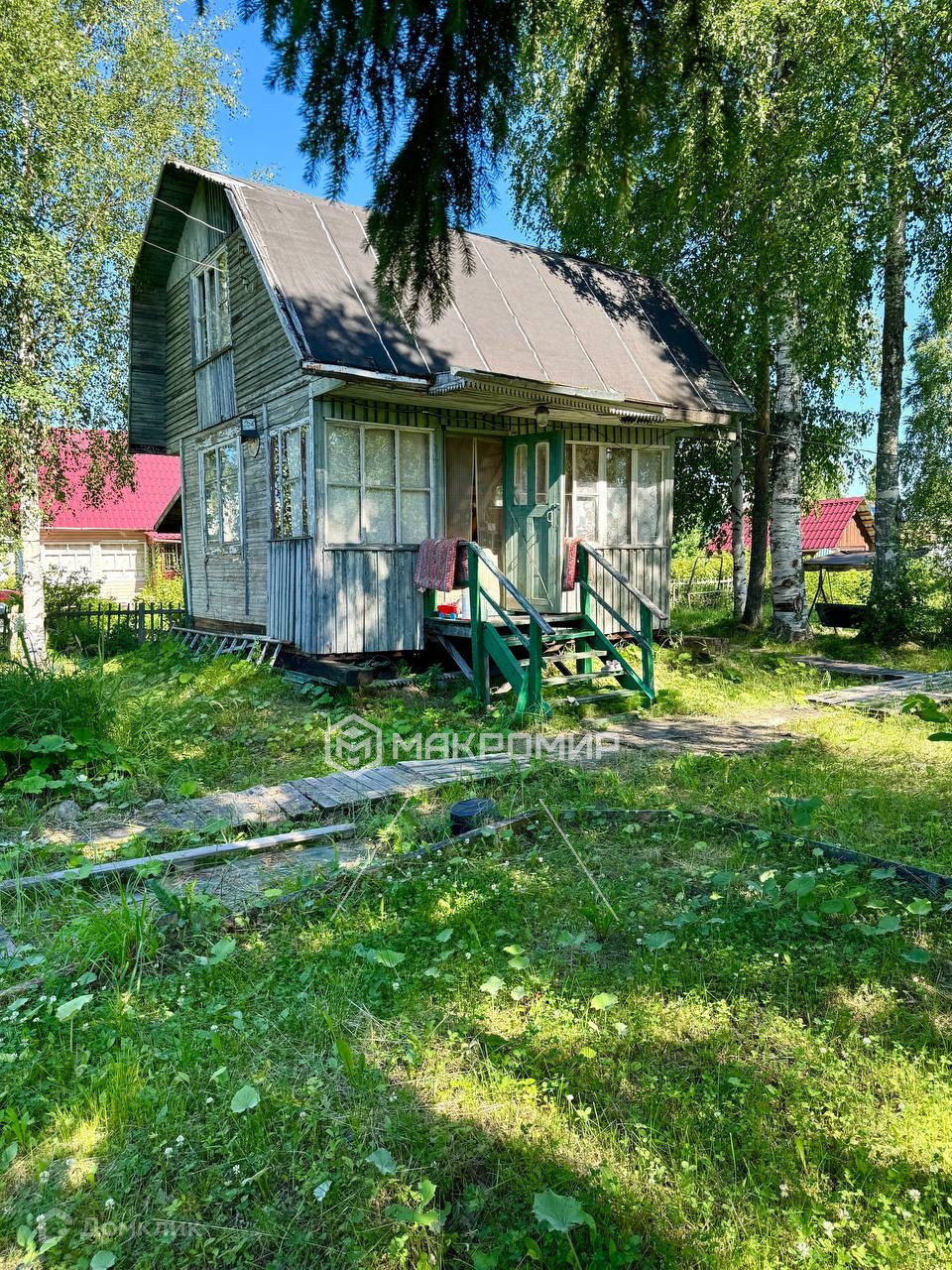 У участка отличное расположение, находится он недалеко от въезда в снт, что значительно облегчает доступ к даче. Так же одной из уникальных особенностей данного участка является то, что на участке достаточное количество деревьев, которые дополнительно создаю атмосферу уюта и единения с природой, а так же служат естественным фильтратором окружающего воздуха.