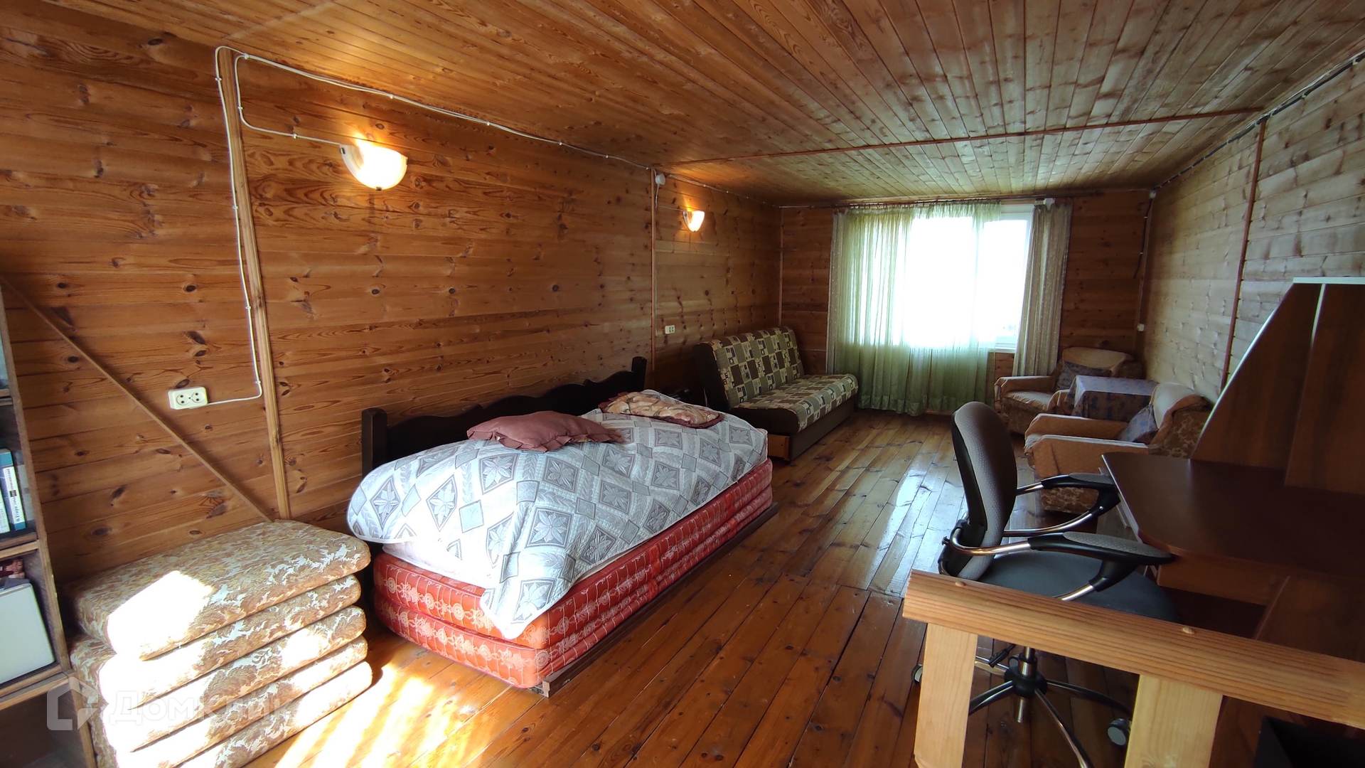 Дом двухэтажный. Первый этаж утеплен для зимнего проживания, мансарда летняя. Всё окна пластиковые. Санузел легко сделать на первом этаже.