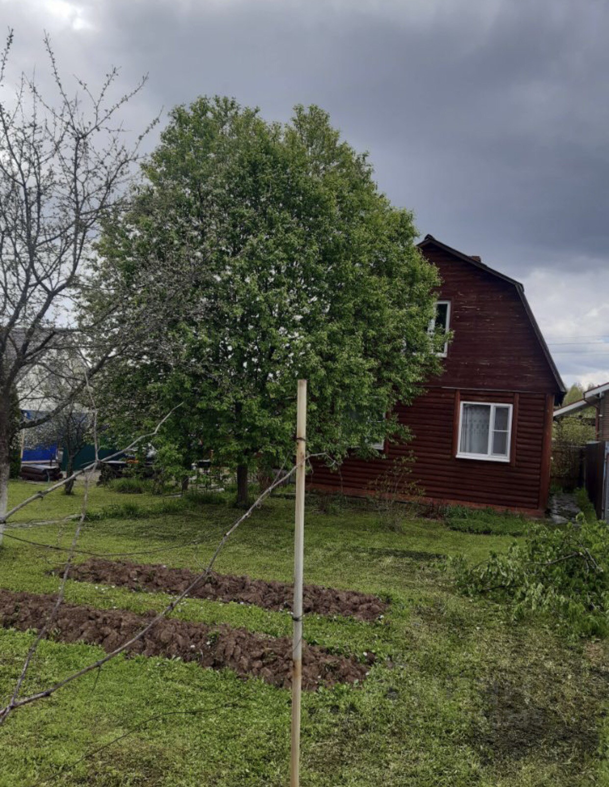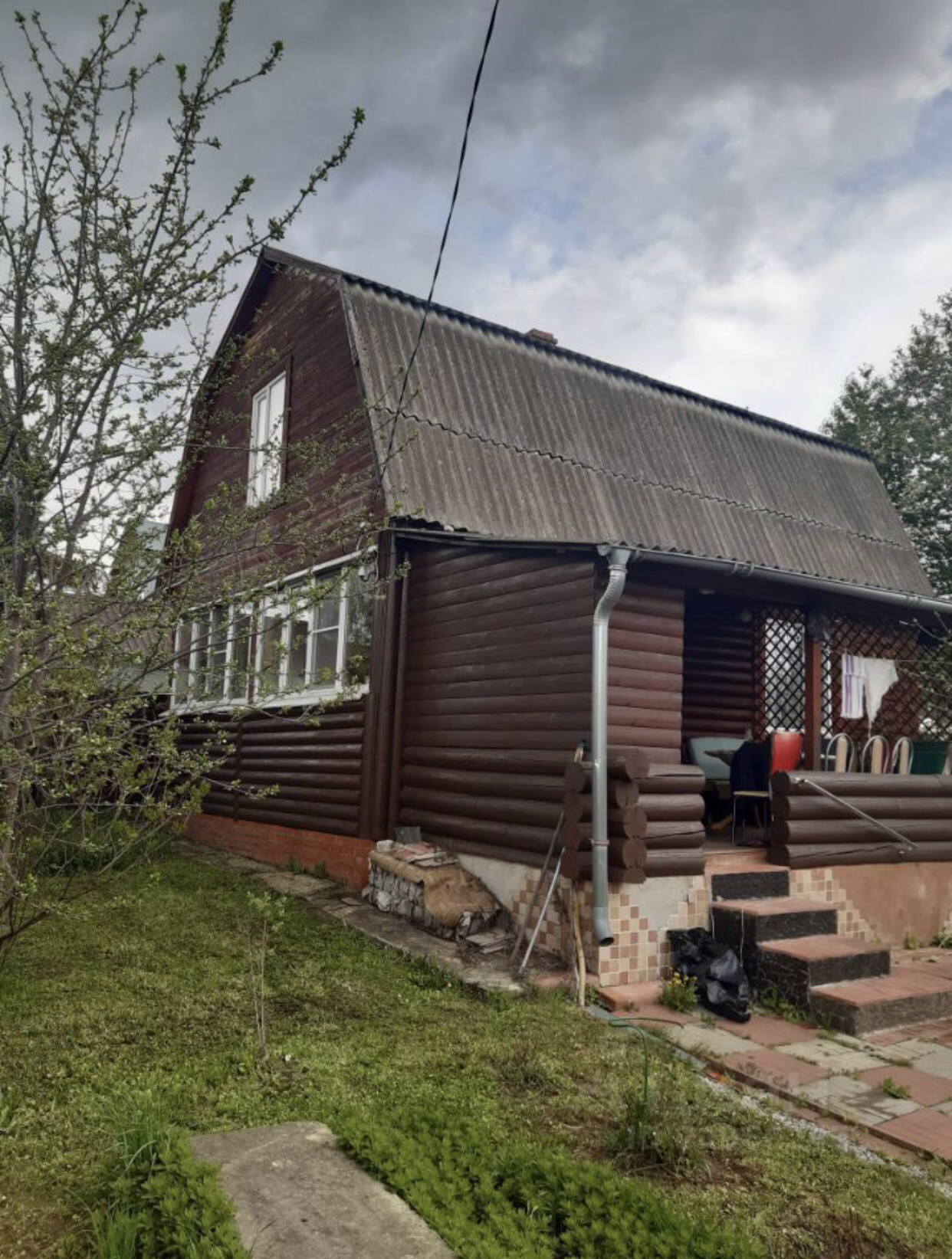 Продается земельный участок и 2-х этажный дом из бруса 200х200, обшит блок хаусом, крыша покрыта шифером, 1995 года постройки на ленточном фундаменте, общей площадью 108 кв. м., расположенный по адресу: Московская область, Ступинский район, СНТ Съяново-2. Дом (6,0 х 9,0) с большой пристроенной открытой верандой (3,0 х 6,0). На веранду подведена вода, используется как летняя кухня. В доме есть застекленная веранда (2,5 х 6,0). Окна во всем доме пластиковые. На первом этаже кухня, место для гардеробной, большая комната 18 кв. м. с печью-камином. На 2-ом этаже 2 комнаты со встроенными шкафами 15 кв. м и 39 кв. м. Дом жилой, все документы оформлены.