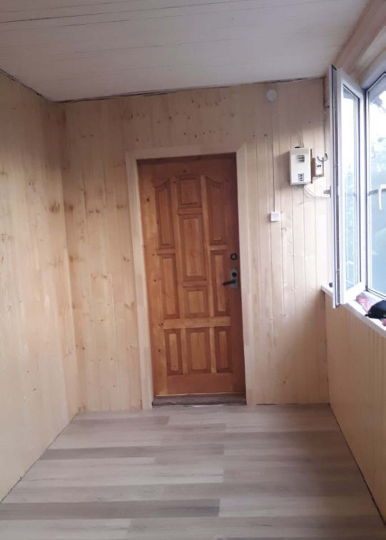 Подключен бойлер для нагревания воды и мотор нагнетания давления для бесперебойной подачи воды. Так же есть оцинкованная бочка на 200 литров для естественного нагревания воды в хорошую солнечную погоду. Во второй части хозблока большая комната со стеллажами. Комната может быть использована, как для хранения инструментов и инвентаря, так и для отдыха.
