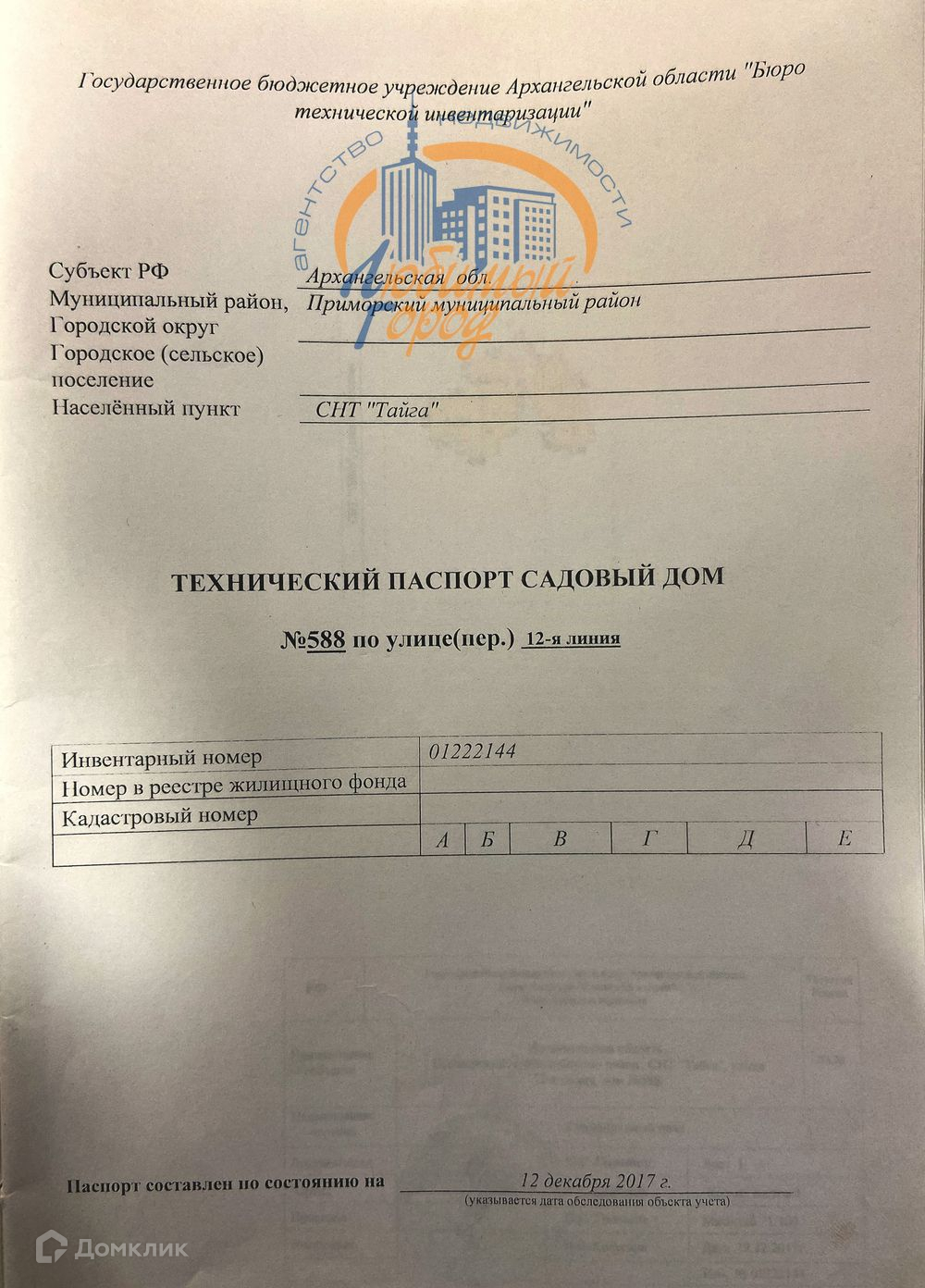 кадастровый номер дома: 29:16:205601:1366, земли: 29:16:205601:595