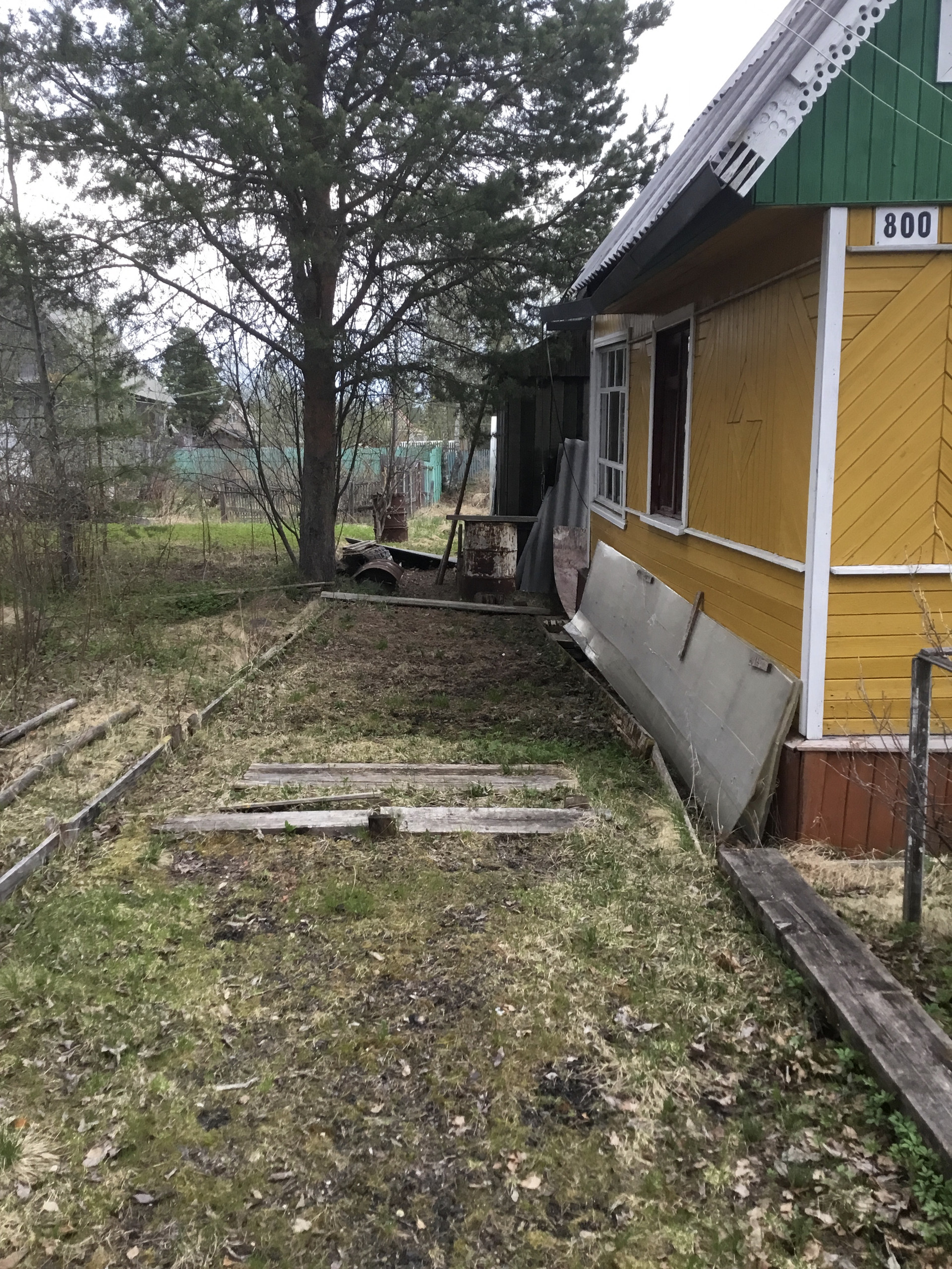 Теплица поставлена на шпалы, обработанные смолой.