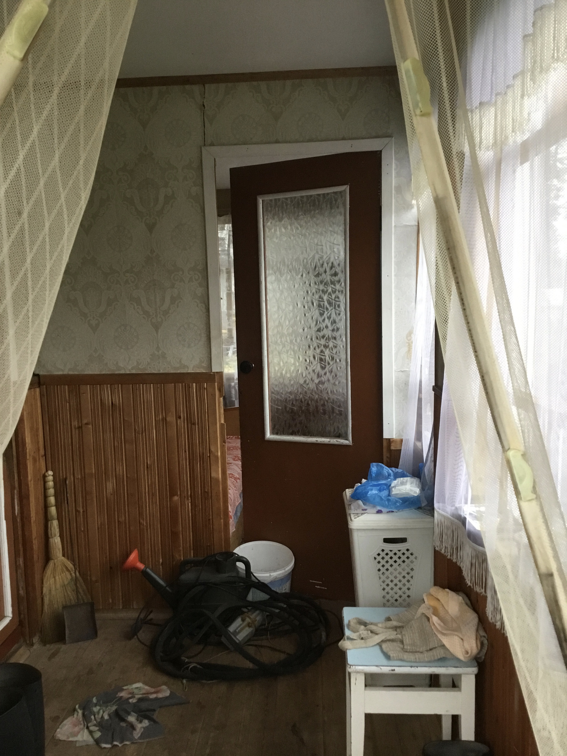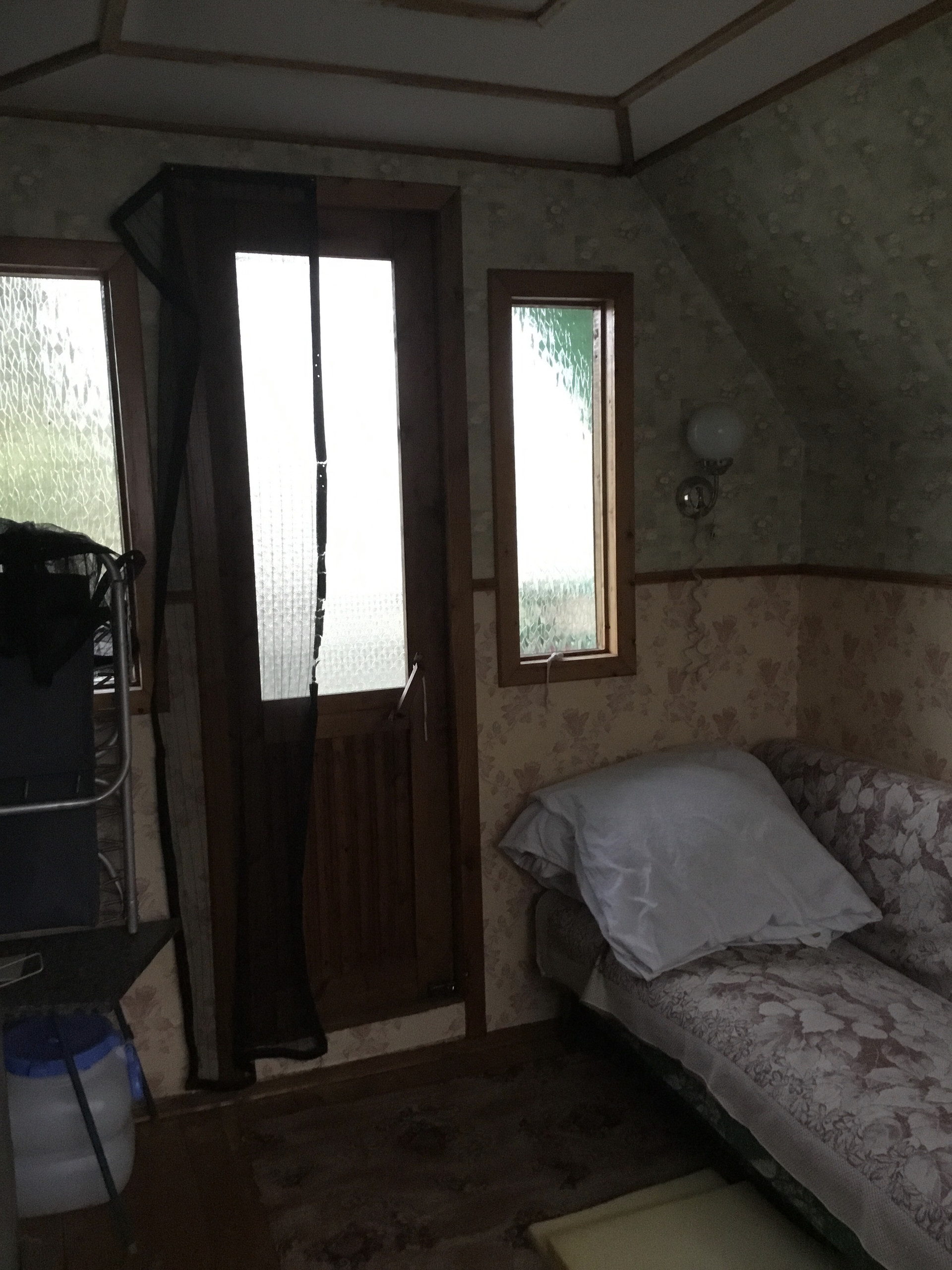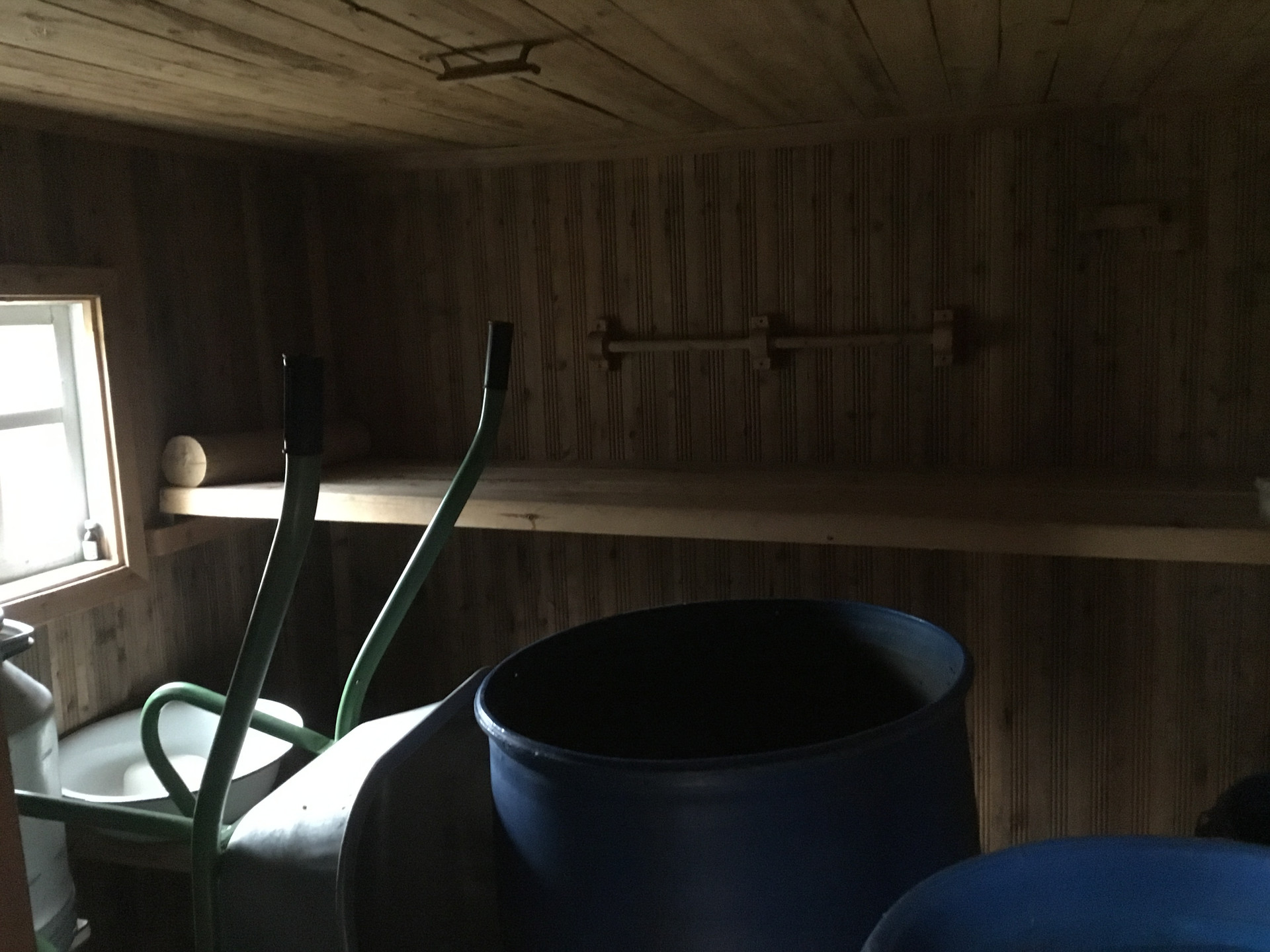 В сарае: мастерская и погреб( даже в сильные морозы все сохраняется)