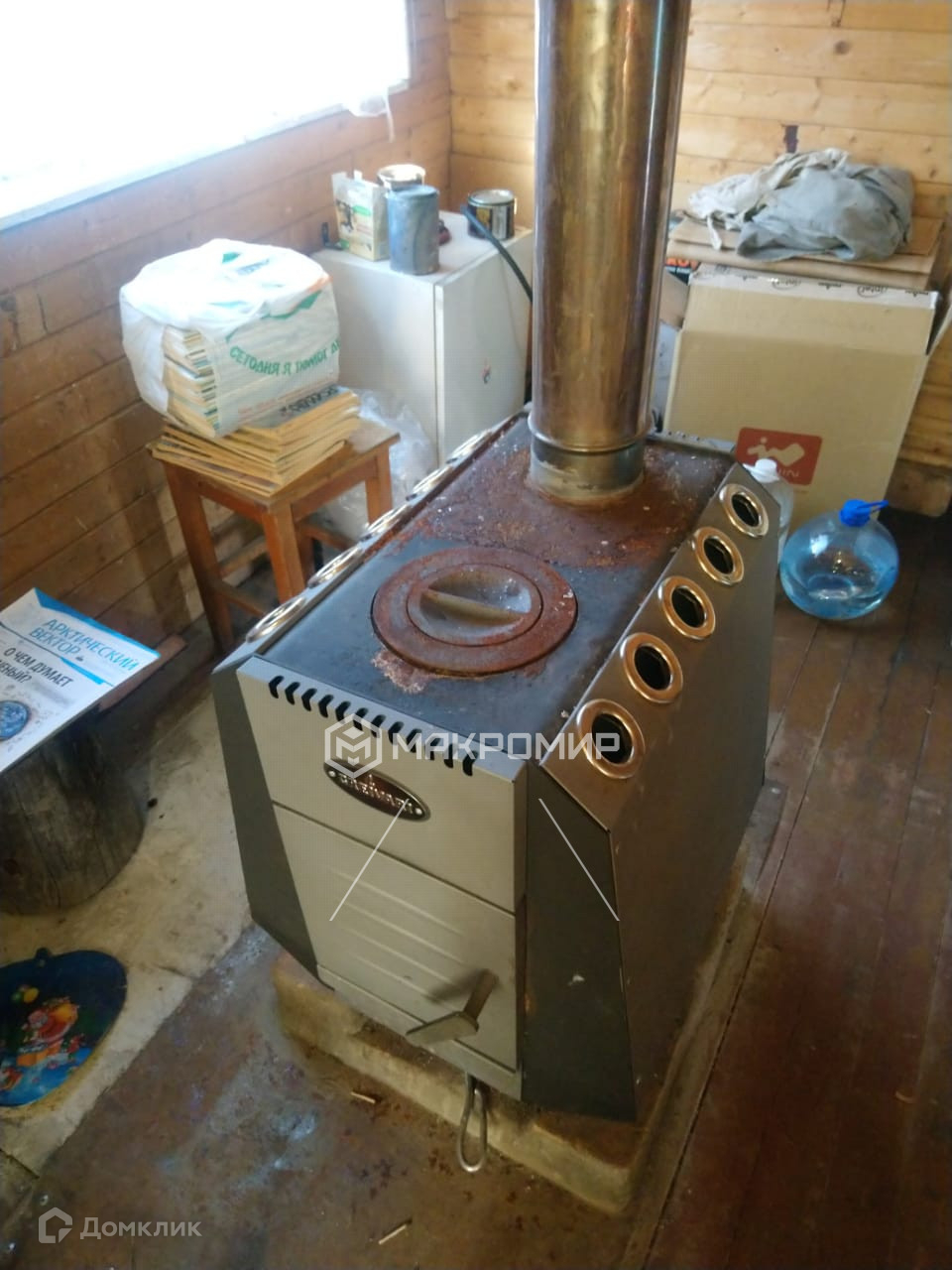 Дом с печным отоплением, туалет на улице. Два этажа, балкон. Магазин в пяти минутах ходьбы на Первой линии. Меньше 10 минут до остановки пешком.