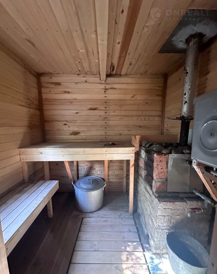 Есть пocтройка, в одной части которой оборудована БАНЯ на два отделение (небольшой предбанник и помывочная), помещение для хранения дров и хозяйственного инвентаря, а так же отдельное помещение- туалет.