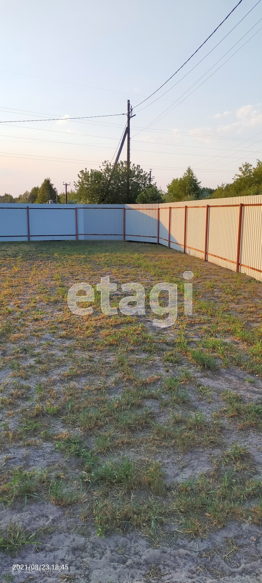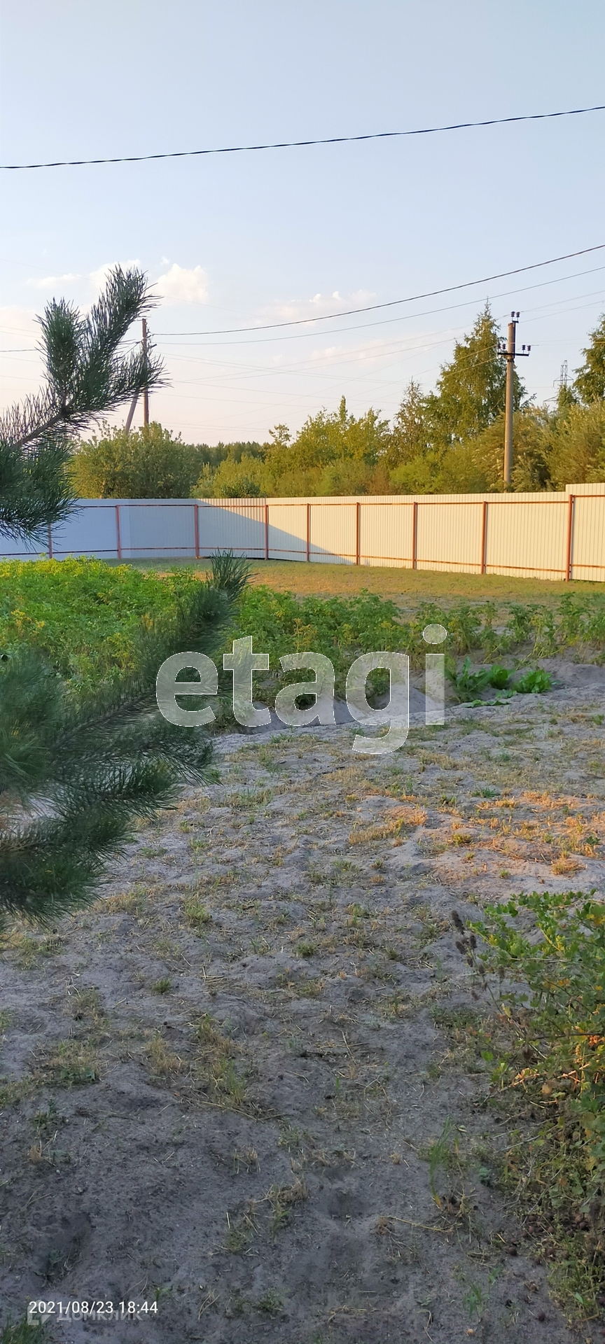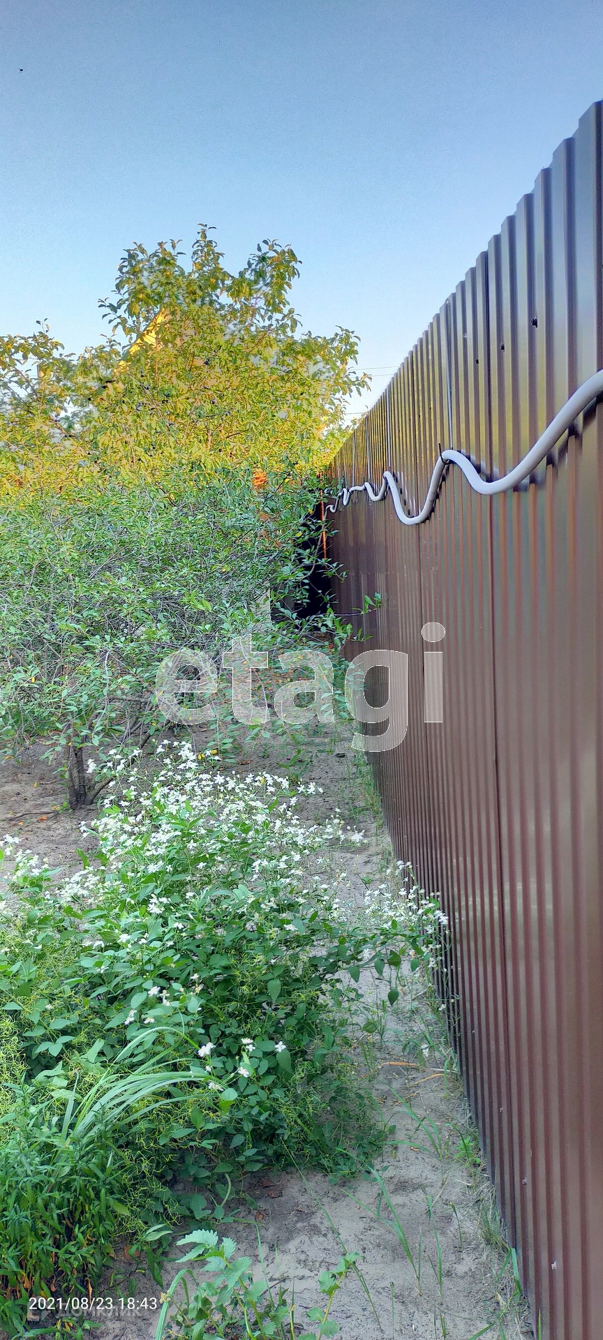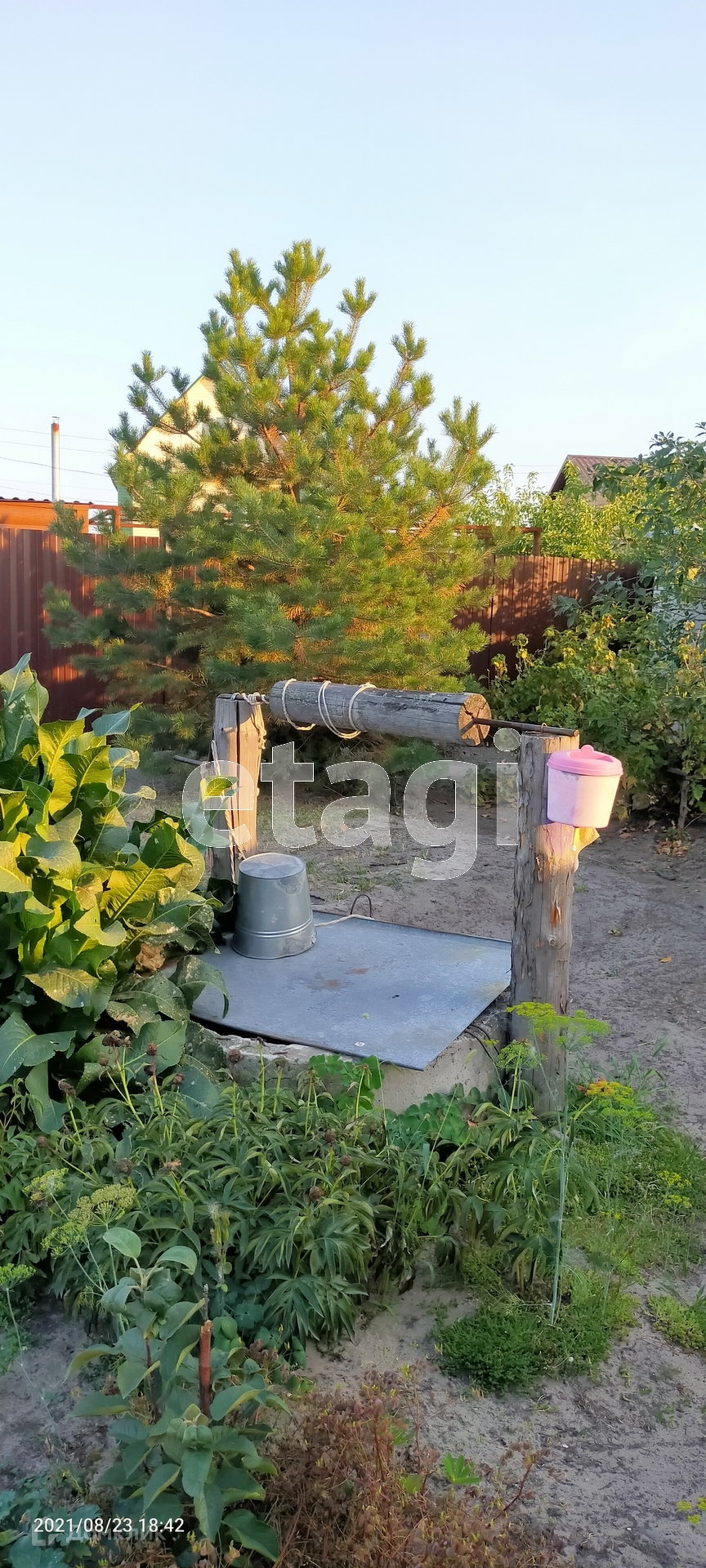 На территории есть : скважина , колодец , деревья , ягоды . Забор из профлиста вокруг .