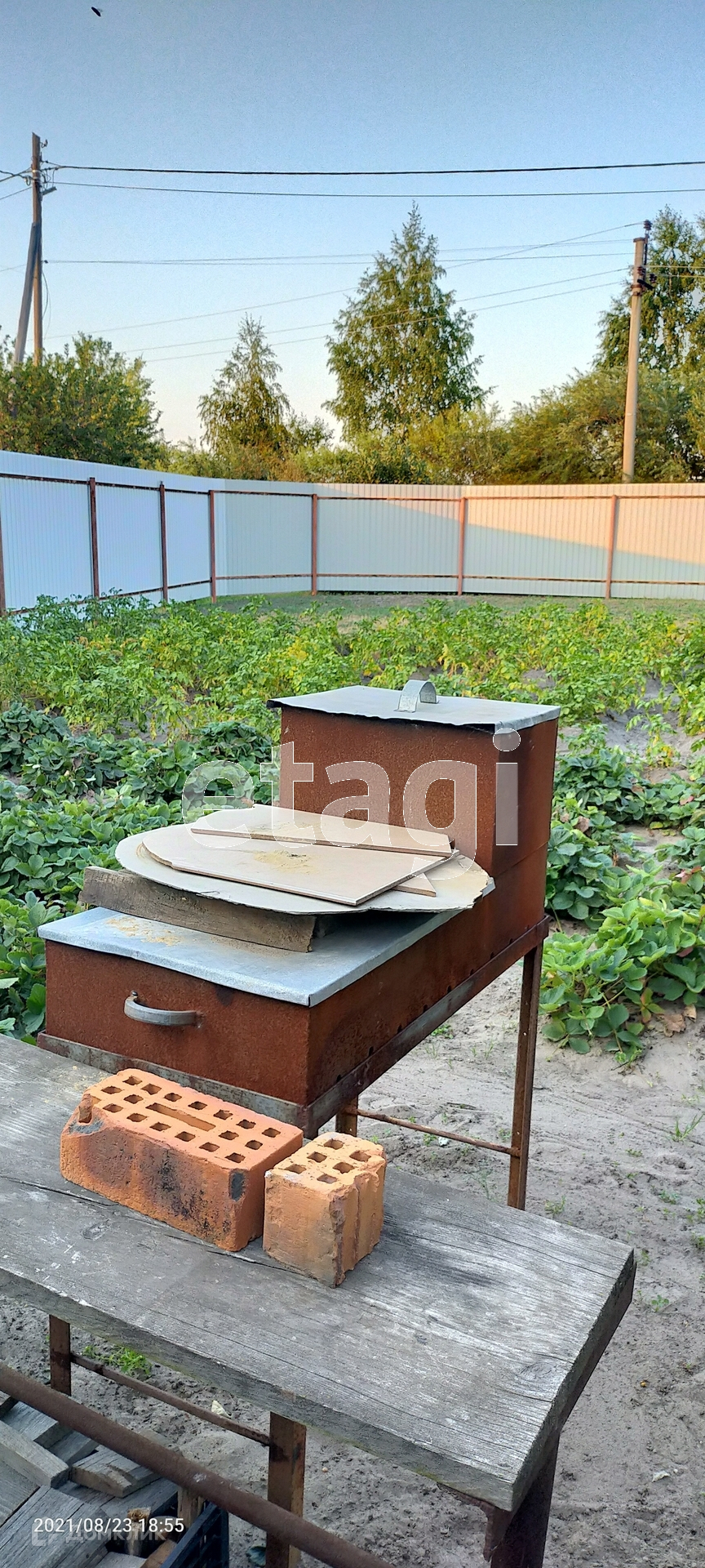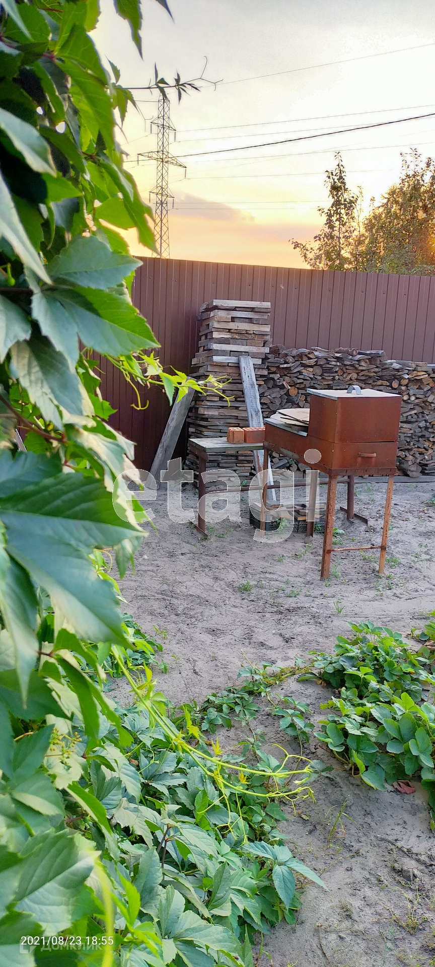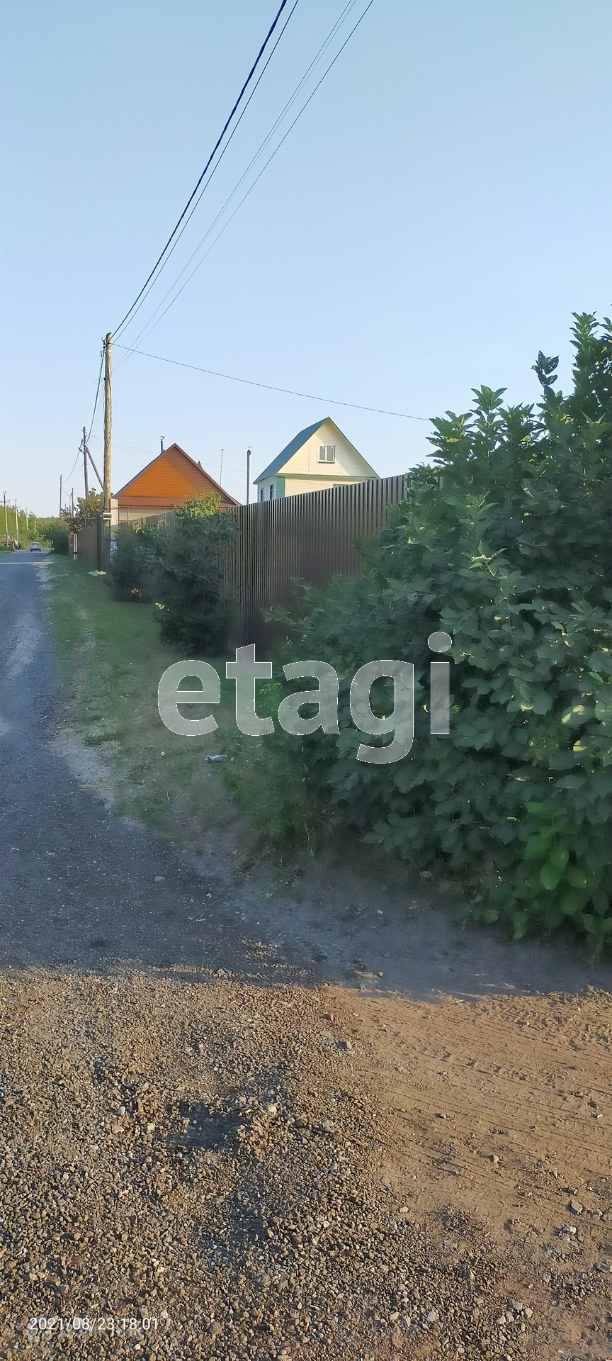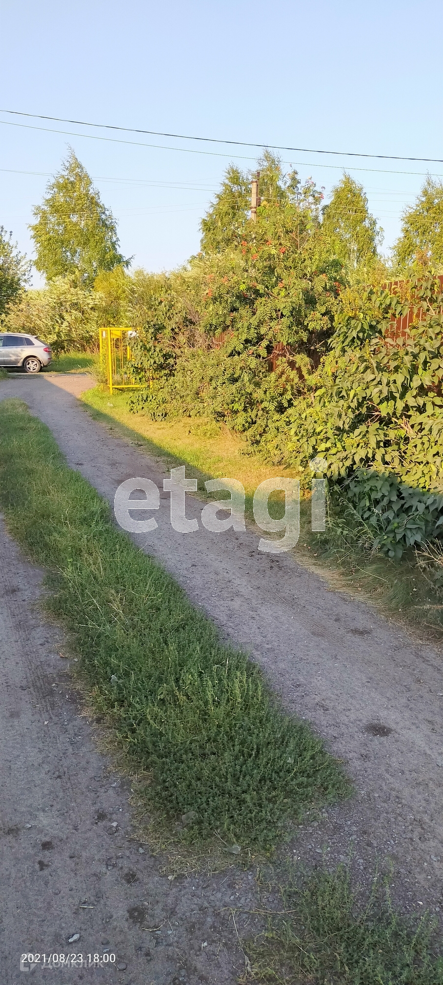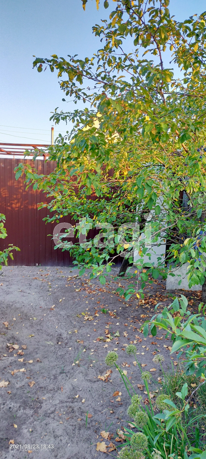 На территории есть : скважина , колодец , деревья , ягоды . Забор из профлиста вокруг .