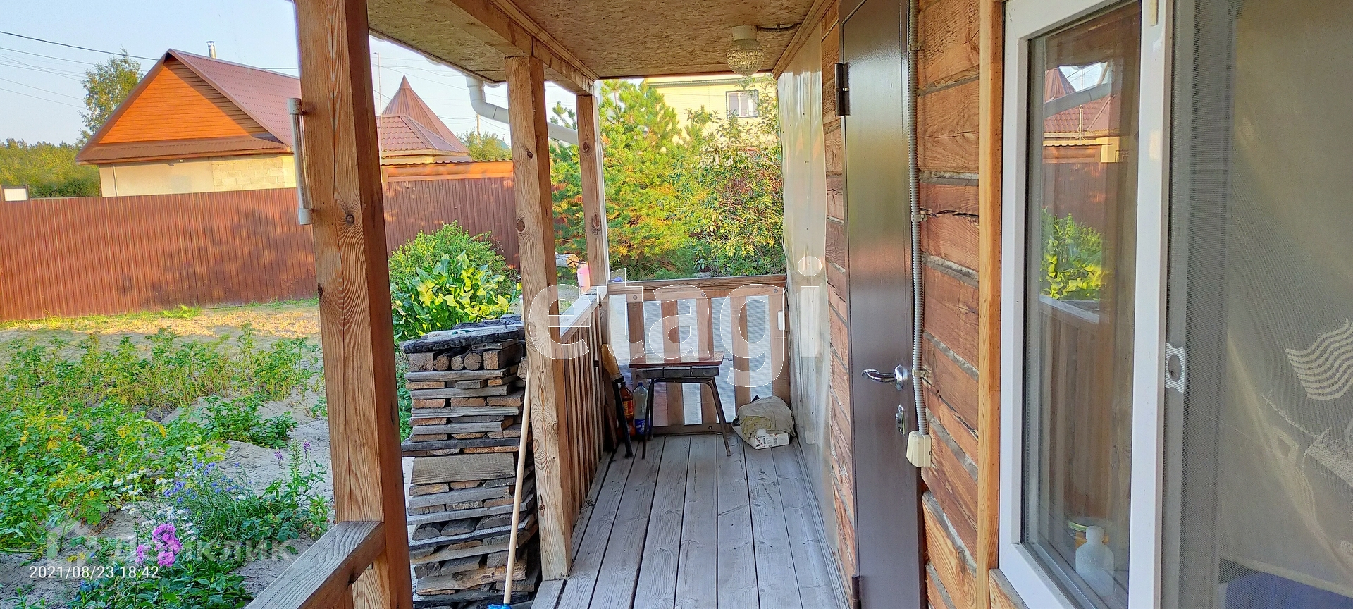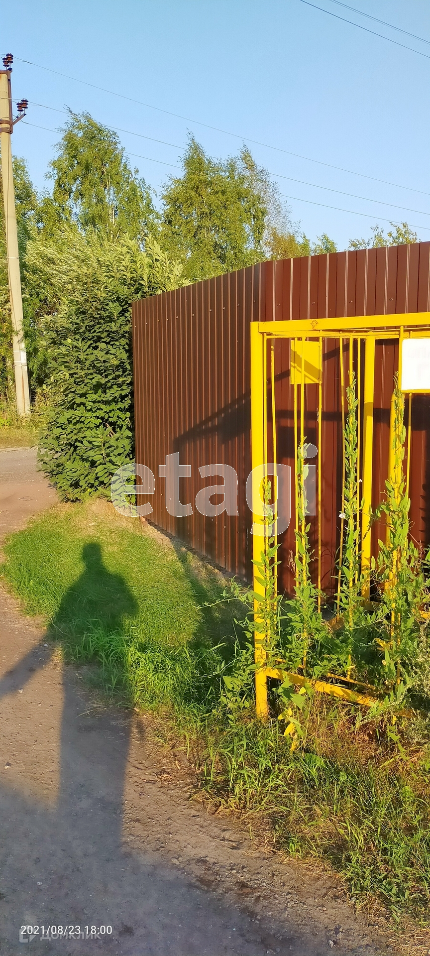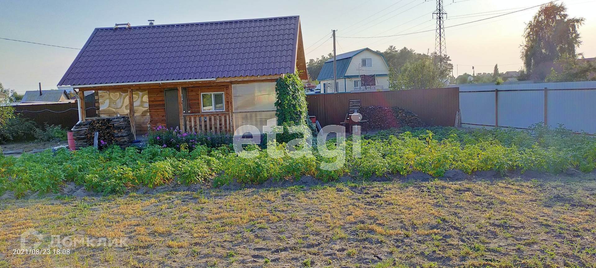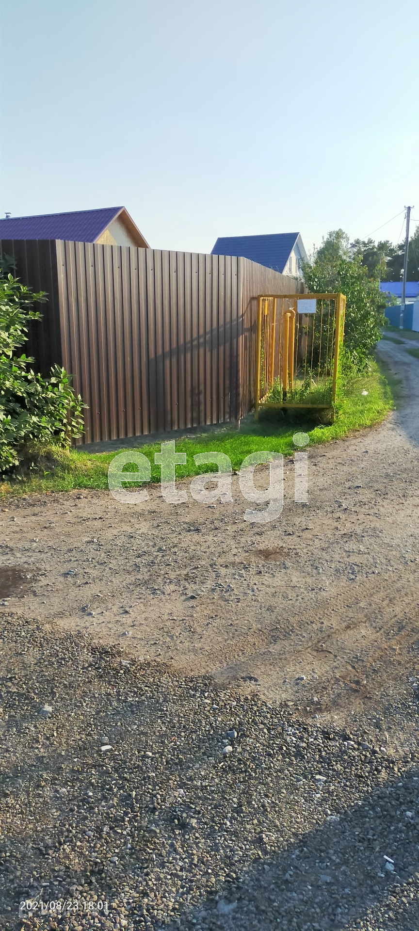 На территории есть : скважина , колодец , деревья , ягоды . Забор из профлиста вокруг .