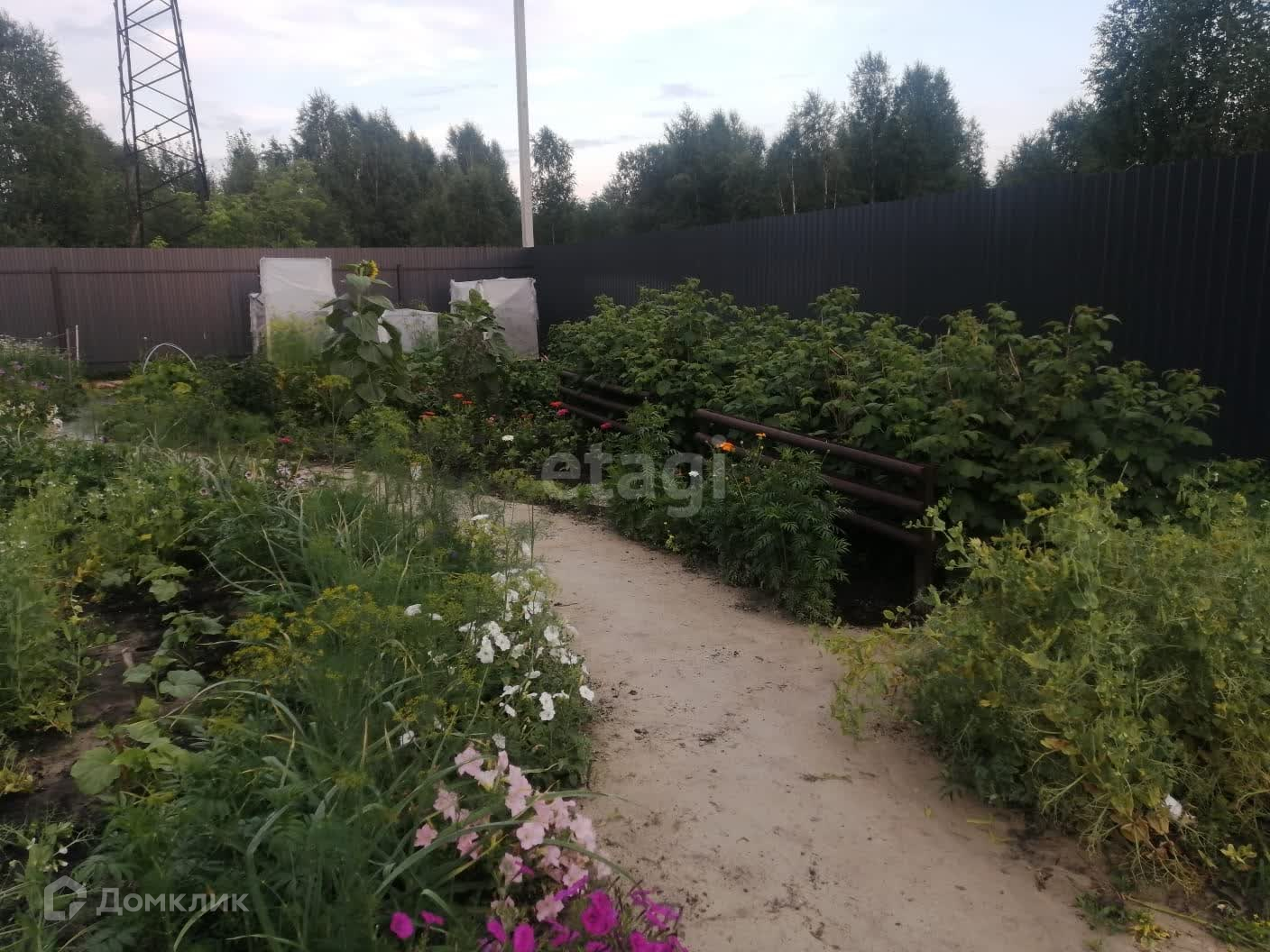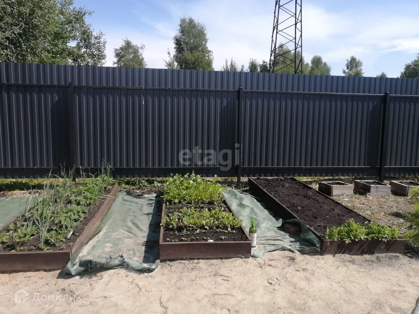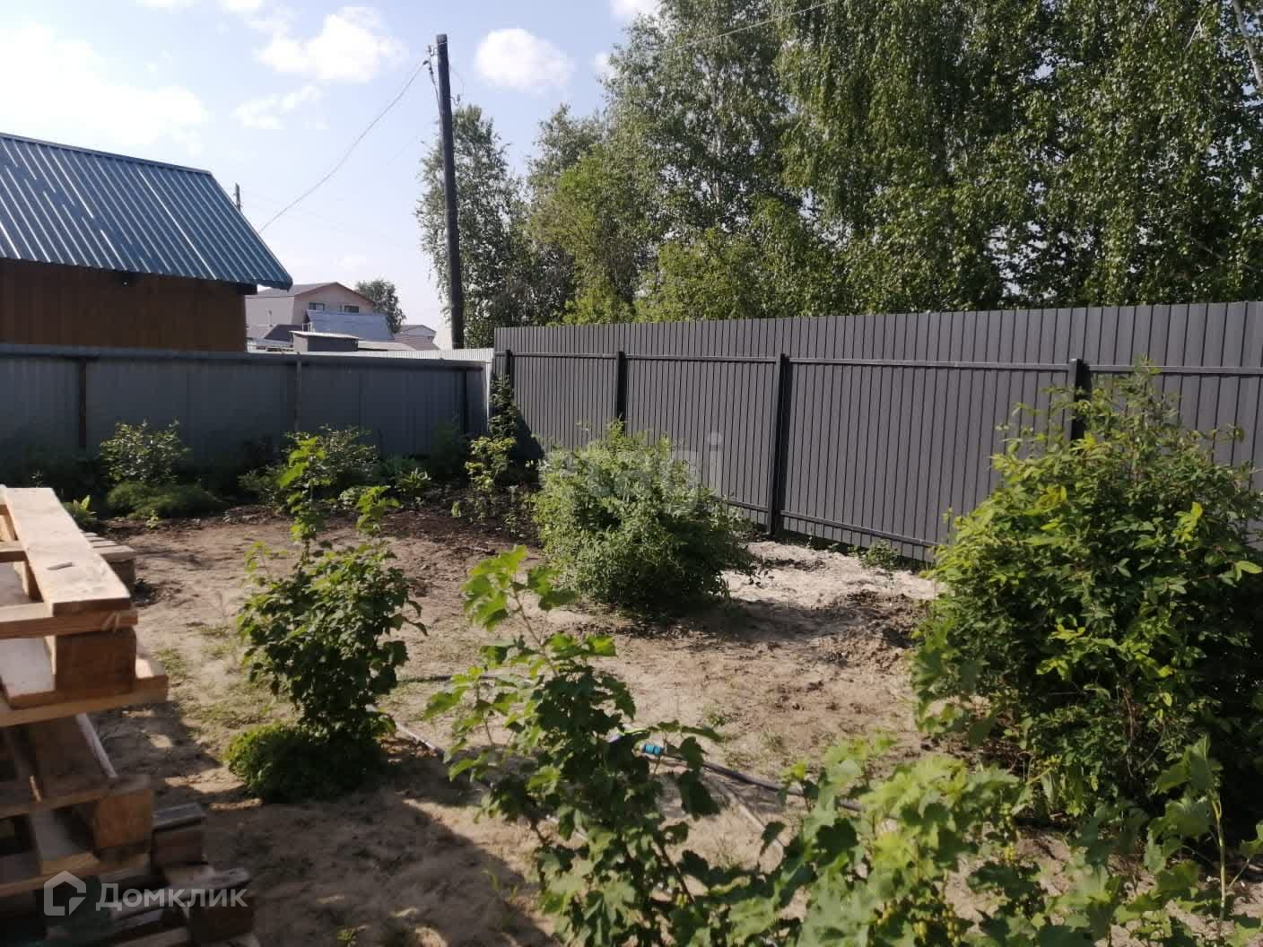 Участок огорожен супер стильным забором графитового цвета 150м по периметру из профлиста, высота 2м.