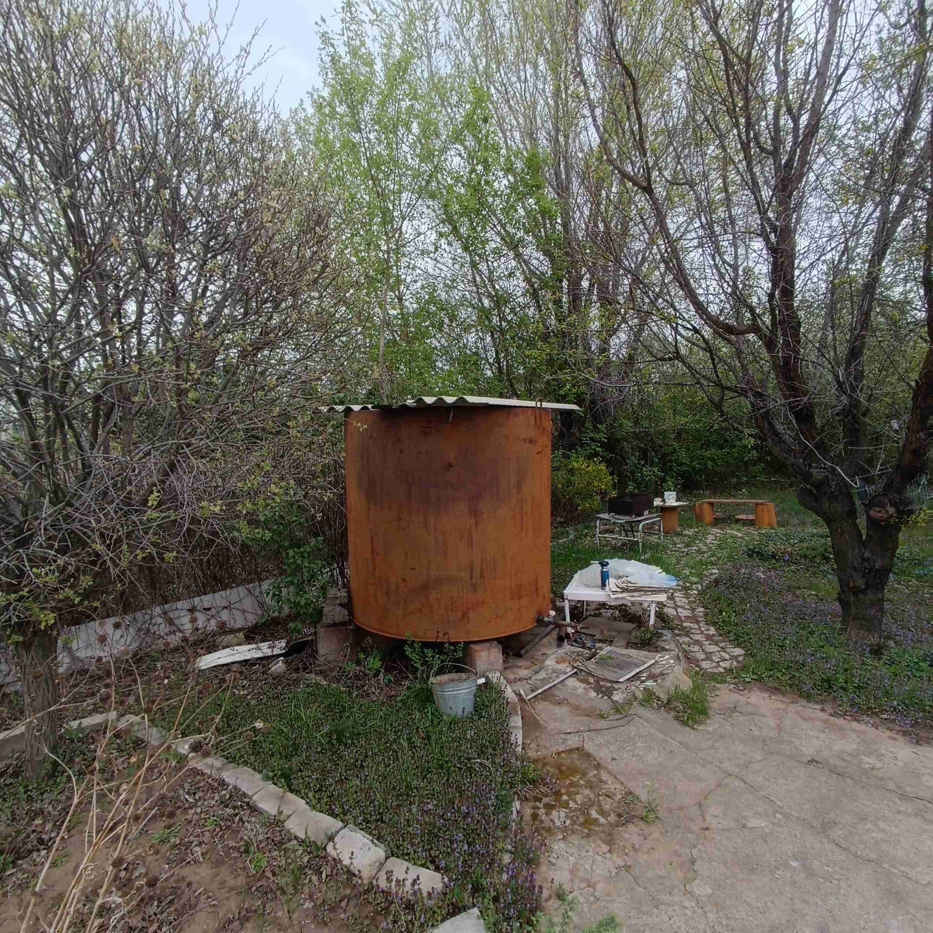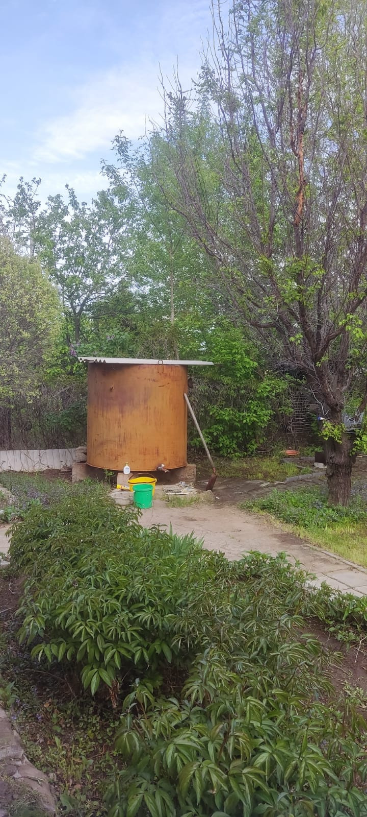 По участку разведена система летнего полива. Также имеются 2 больших ёмкости для воды