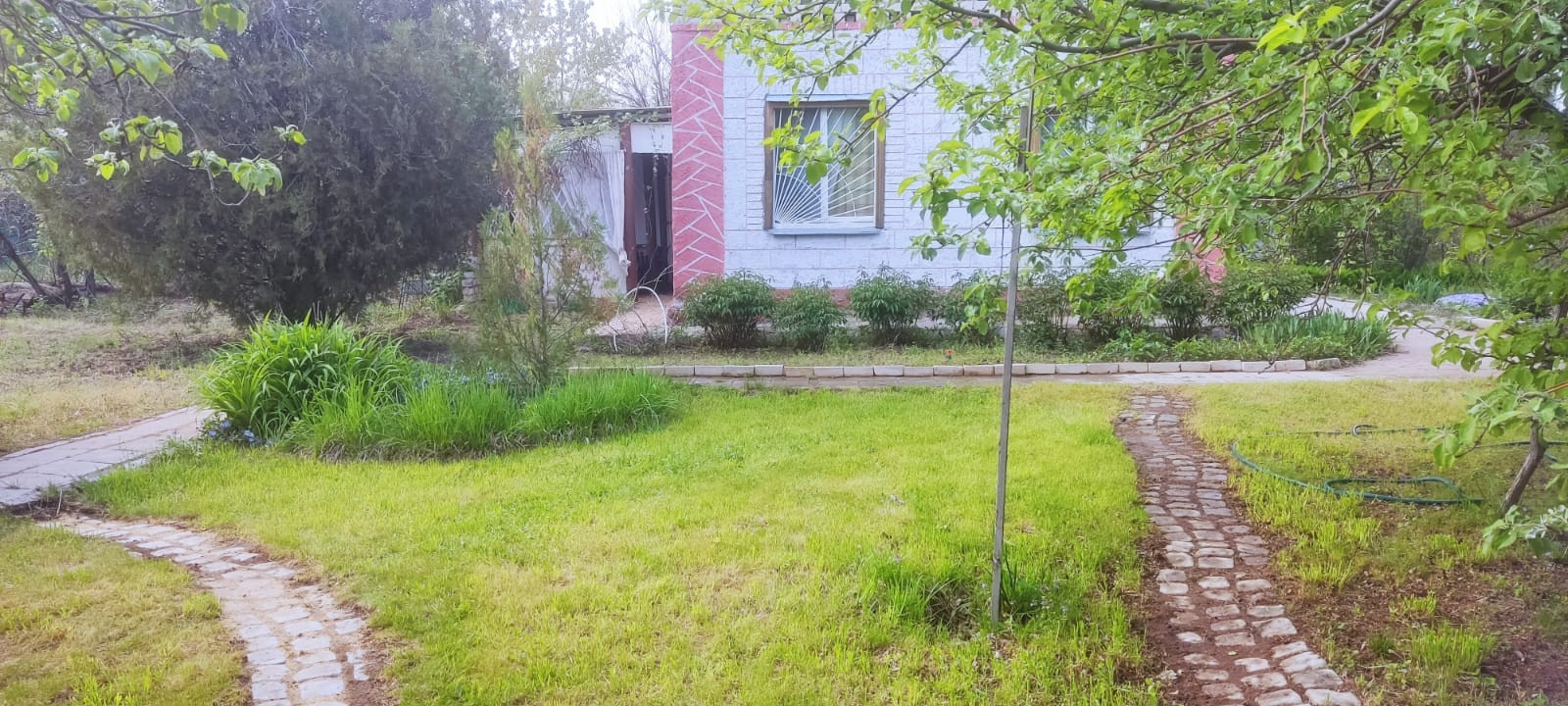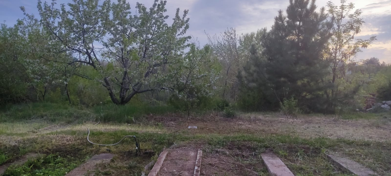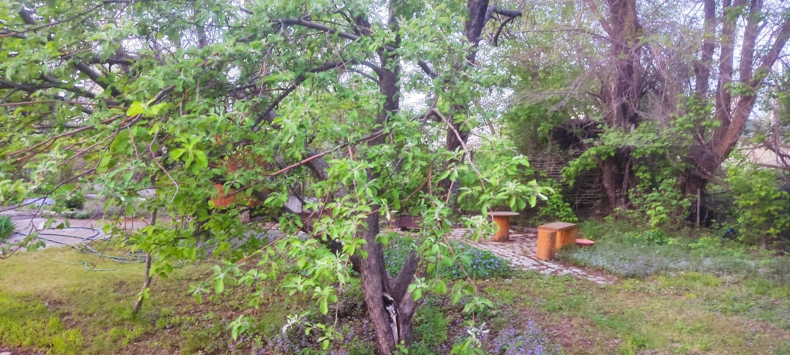 Плодовый сад- старые и молодые, сортовые деревья: яблони, вишня, черешня, слива, грецкий орех. Виноград 3 вида.
