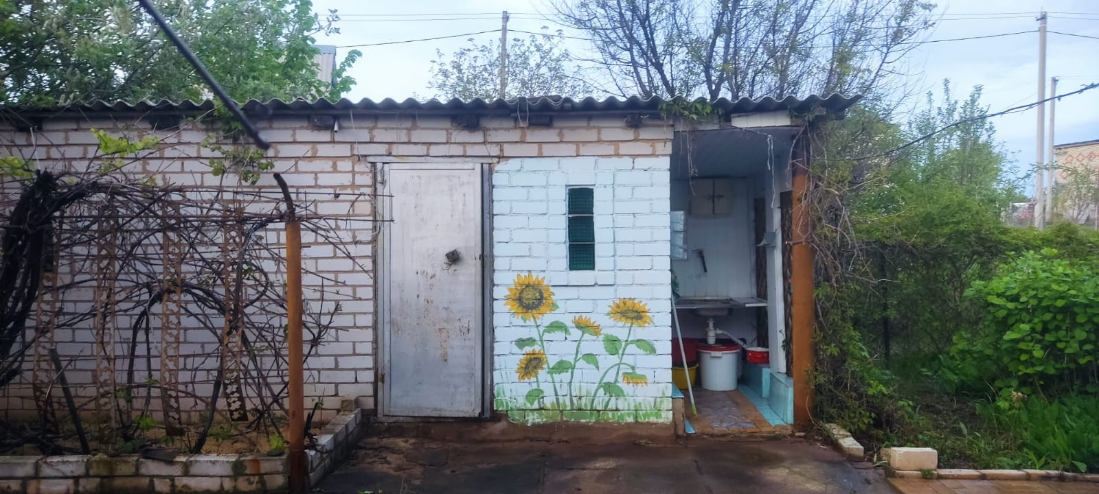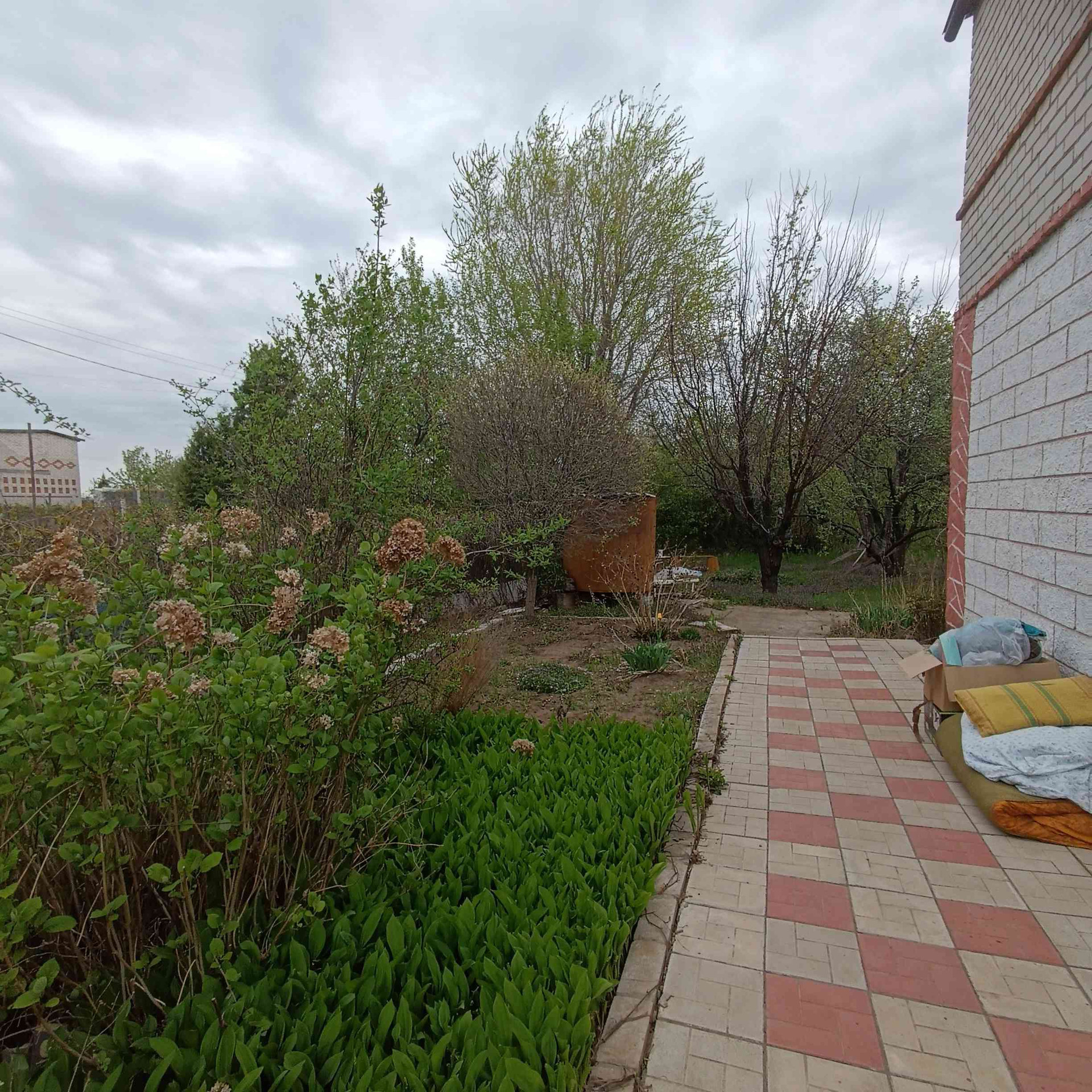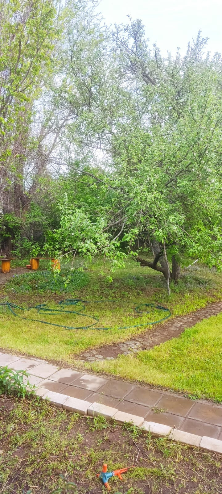 Плодовый сад- старые и молодые, сортовые деревья: яблони, вишня, черешня, слива, грецкий орех. Виноград 3 вида.