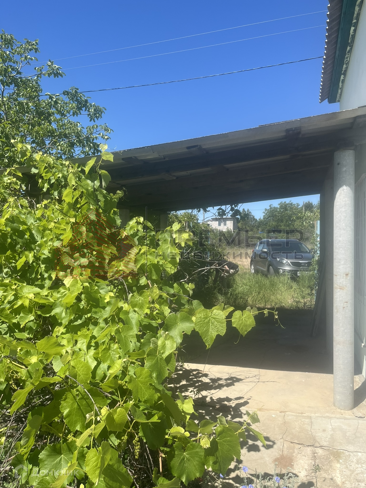 Внизу застекленная веранда. Имеется навес , где помещается один автомобиль и остается еще место.