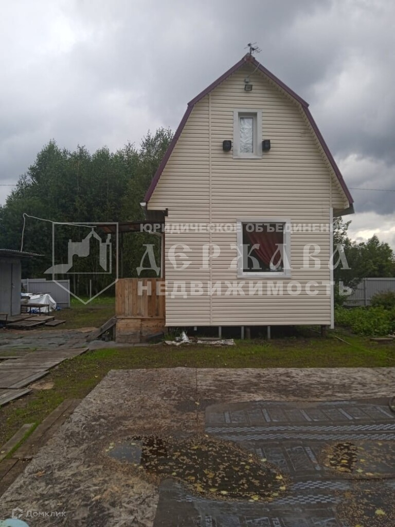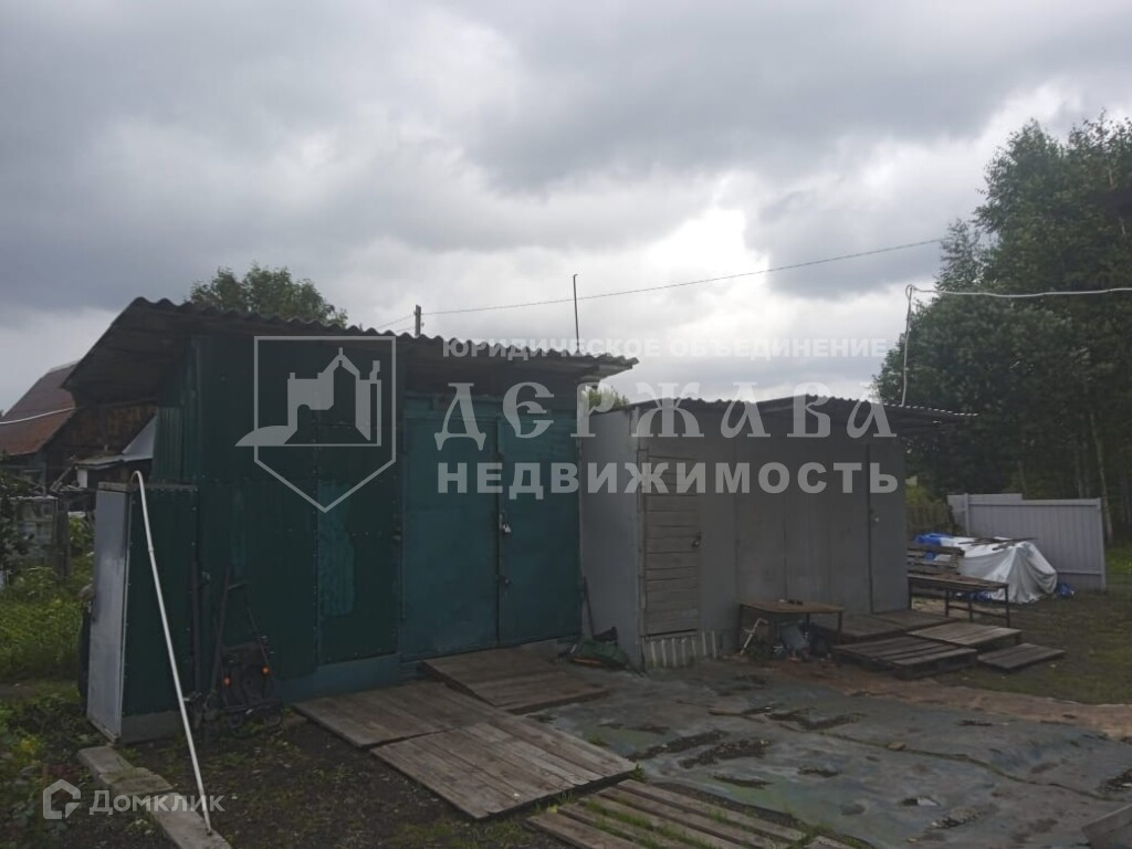 На участке деревянный дом из бруса обшит сайдингом,  на сваях в 2 этажа площадью 30м2. На первом этаже комната 18м2 с двумя окошками. На втором этаже комнату чуть поменьше с одним окошком. В дом проведена вода и есть слив. Есть печка , но ее нужно установить. К дому предусмотрено место для веранды, при желании ее можно построить. Участок огорожен забором с 3х сторон, с 4й стороны не до конца, там нужно установить только ворота. Большая пред дворовая территория, где можно ставить несколько машин. Напротив дома лесной массив.