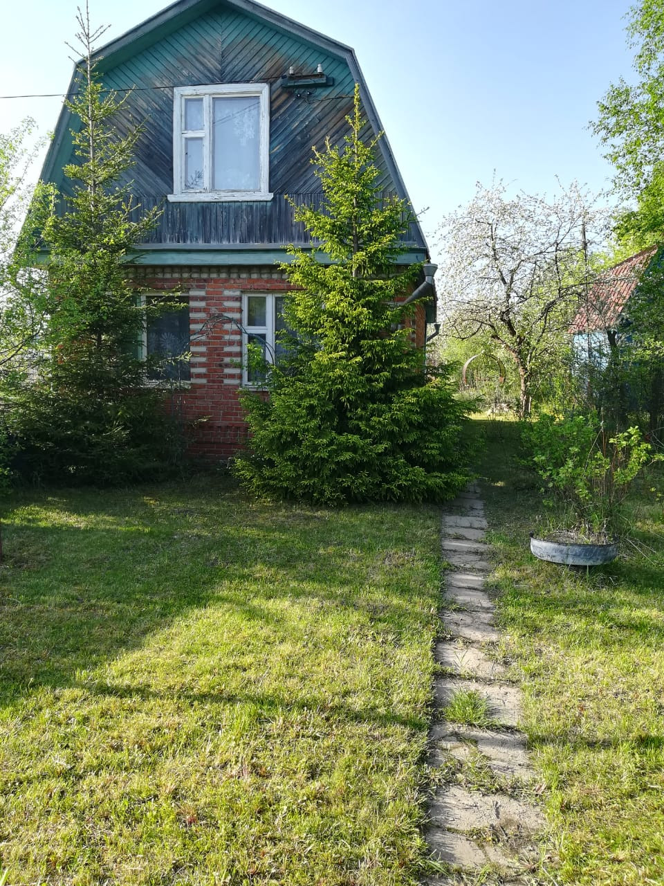Первый этаж-кирпич, второй этаж-дерево. 3 комнаты, кухня, терраса.