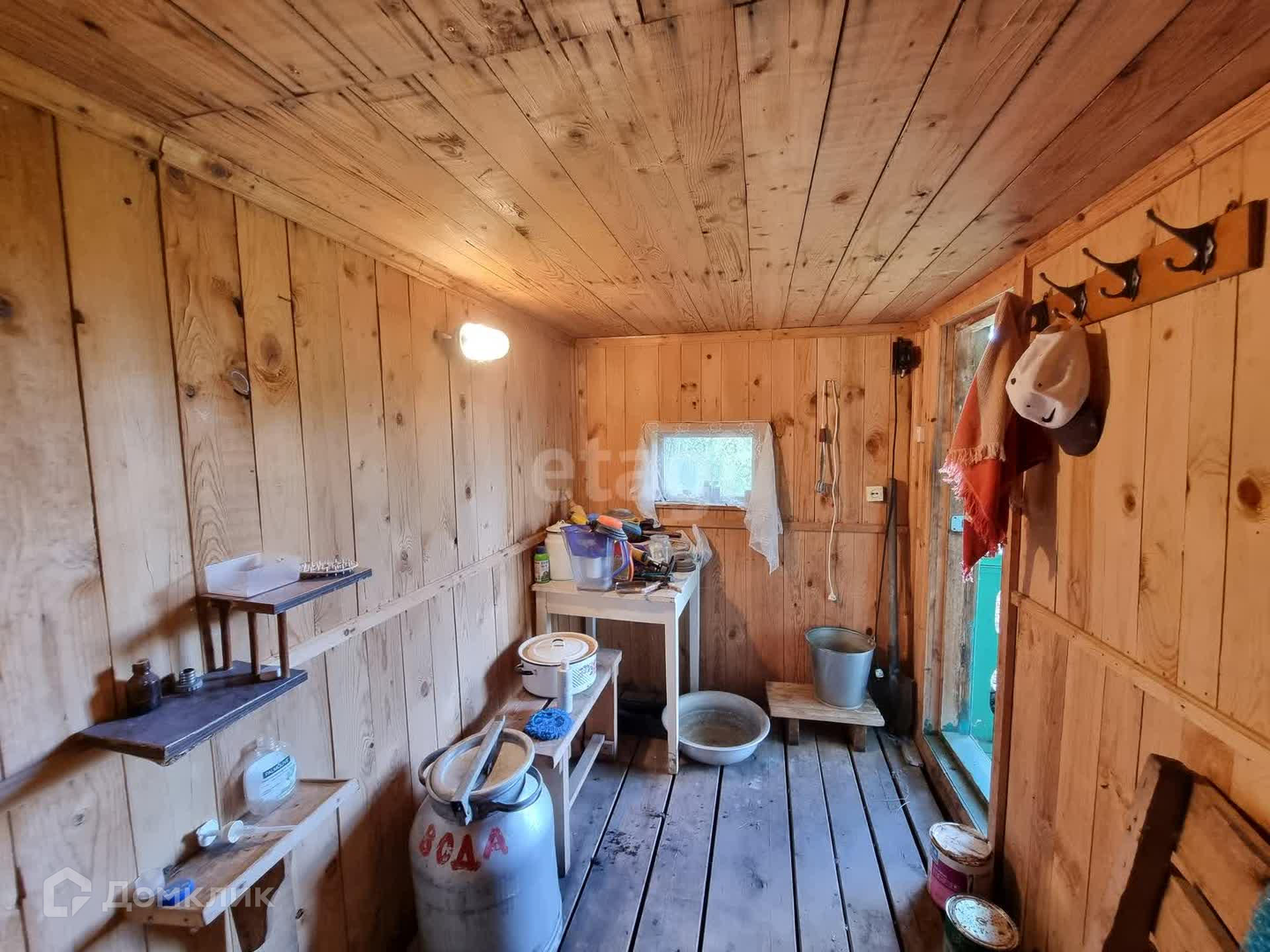 Дом на участке деревянный, одноэтажный. Площадь дома по документам 27,6 кв.м., планировка с двумя изолированными комнатами, кухней и небольшой темной комнатой. Внутри дом в нормальном дачном состоянии. Земельный участок ухожен, площадь 6 соток, оформлен в собственность, огорожен забором, имеется машино-место с воротами возле дома.