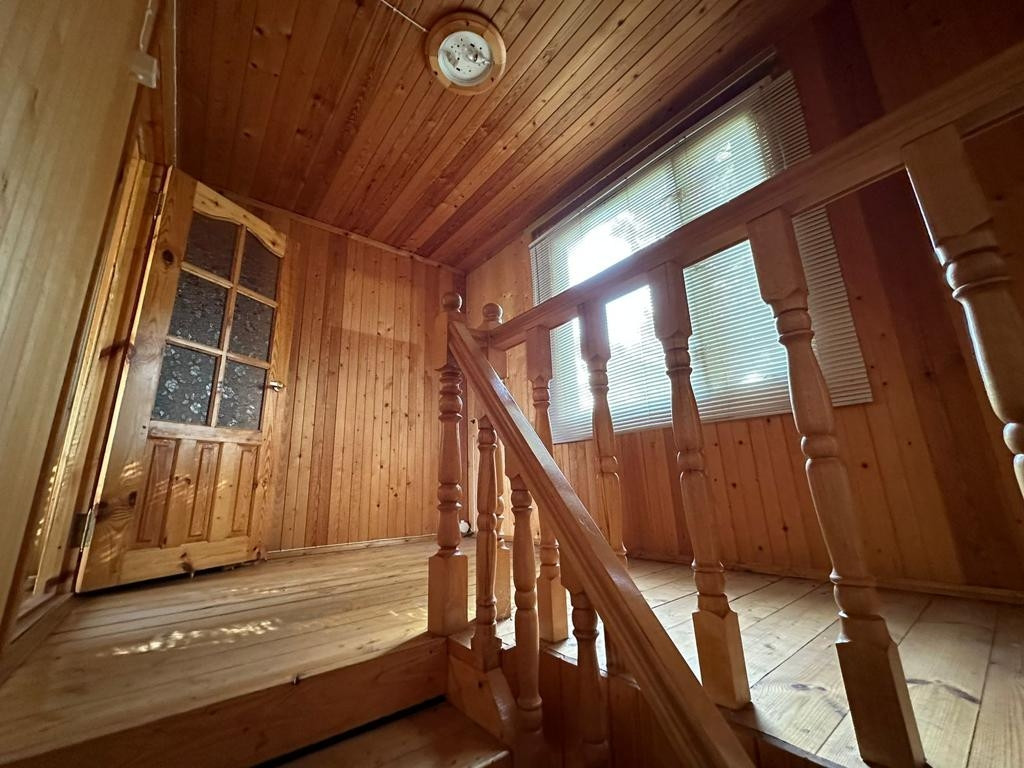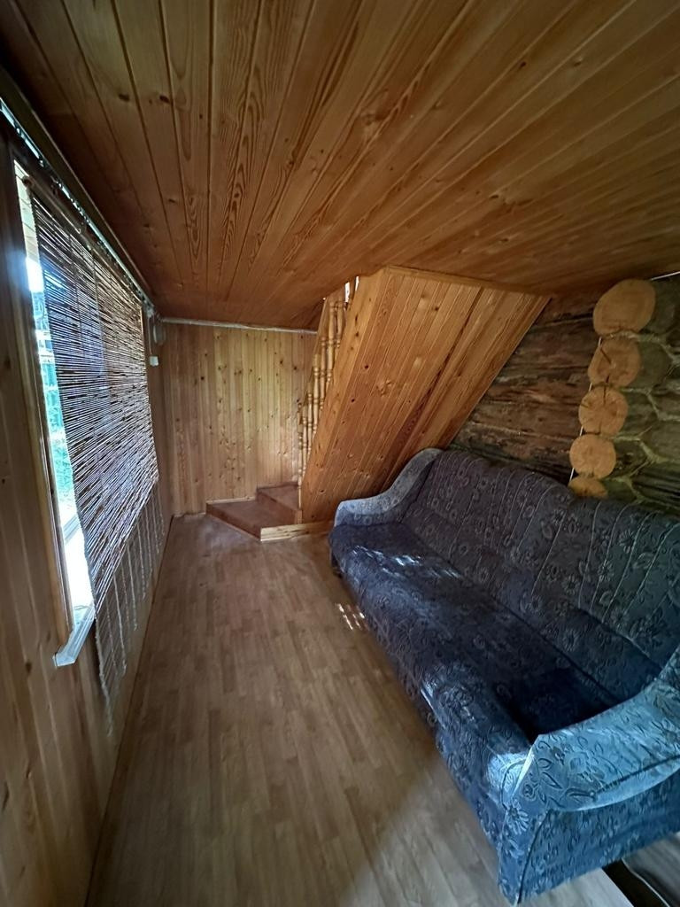 На первом этаже расположена небольшая гостиная и баня. На втором этаже спальня.