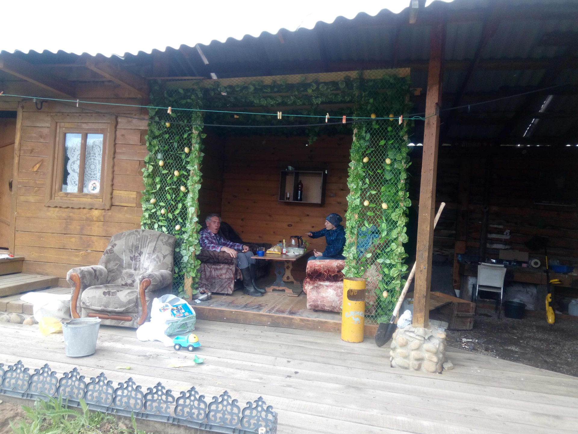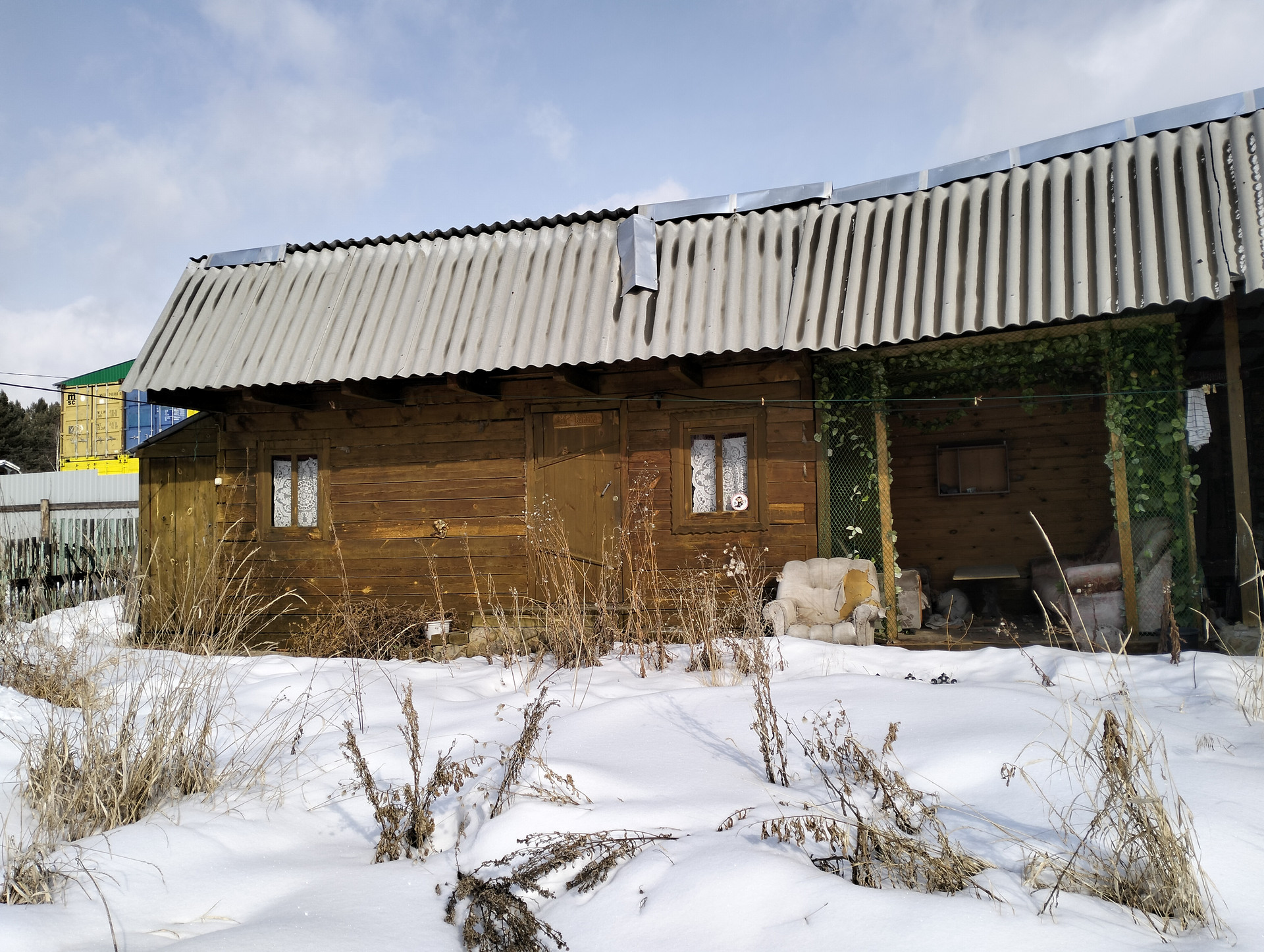 имеется баня, скважина, теплица, гараж на 2 машины, дровянник, беседка где летом