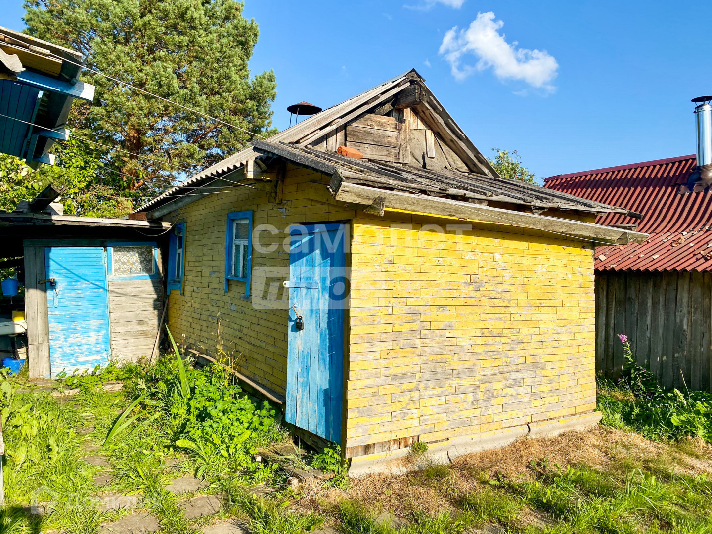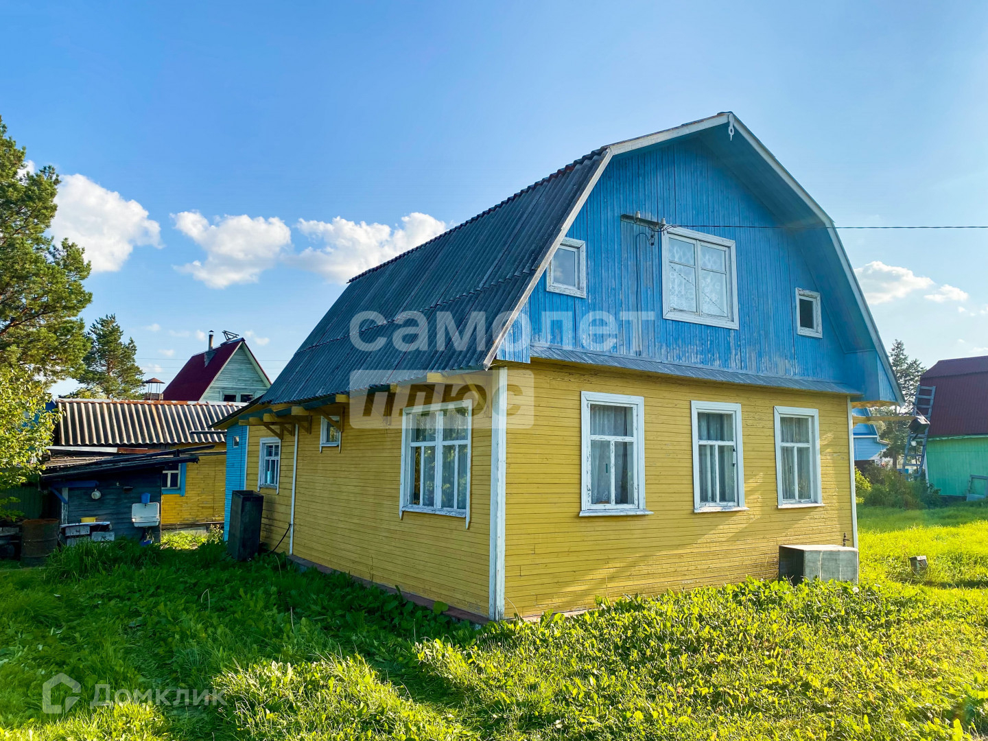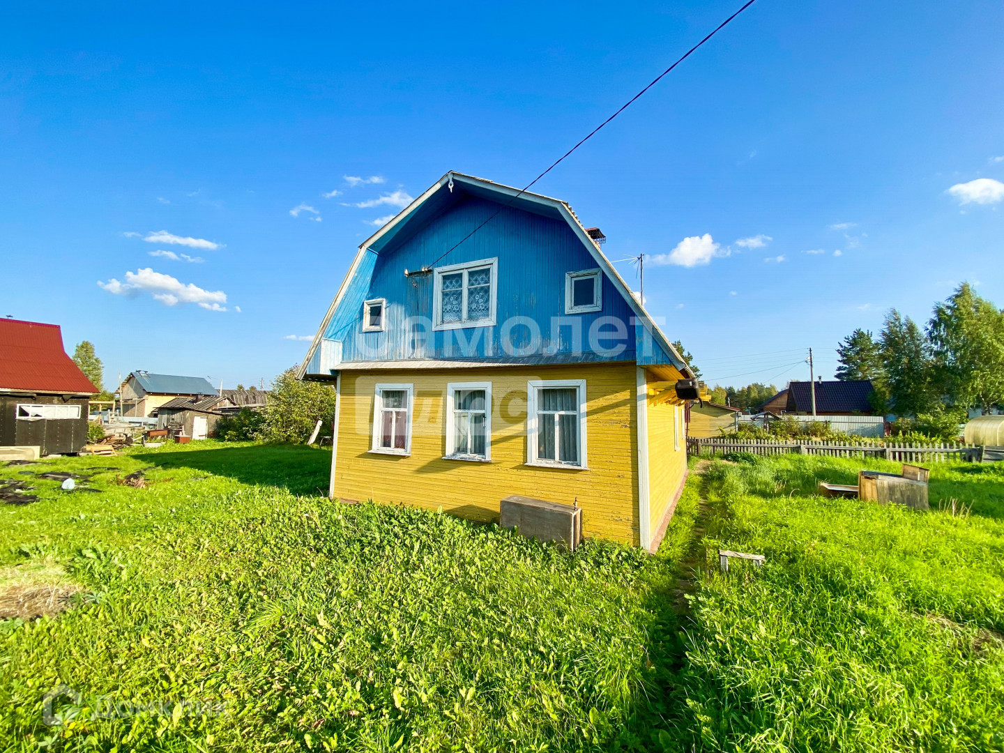 Жилой (желтый) дом в хорошем состоянии, не требует подъема. Каркас выполнен из бруса, фундамент - бетонные сваи и армированные плиты. Большой теплый двухэтажный дом в полностью пригодном состоянии.