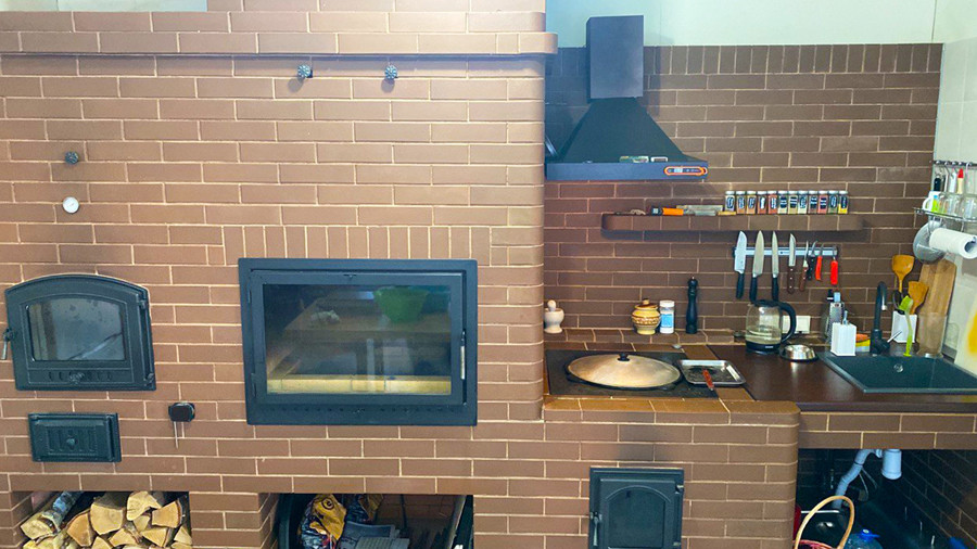 Беседка – это по сути еще один (гостевой) дом. Площадь – 28 кв.м. Построена на монолитной плите, утеплена, отапливается за счет «теплых полов», подключен водопровод. Из кирпича выложена русская печь для готовки самых разнообразных блюд.