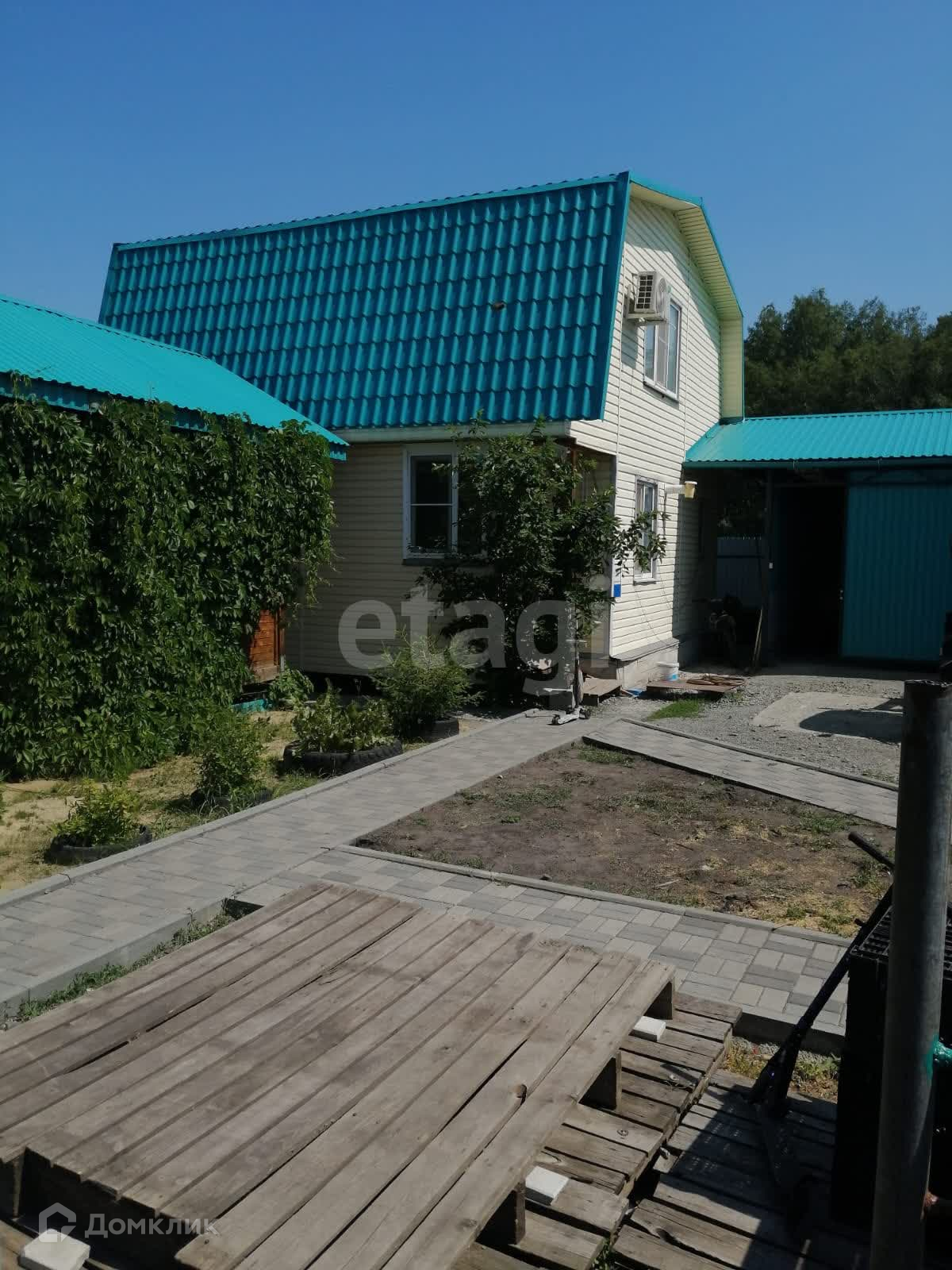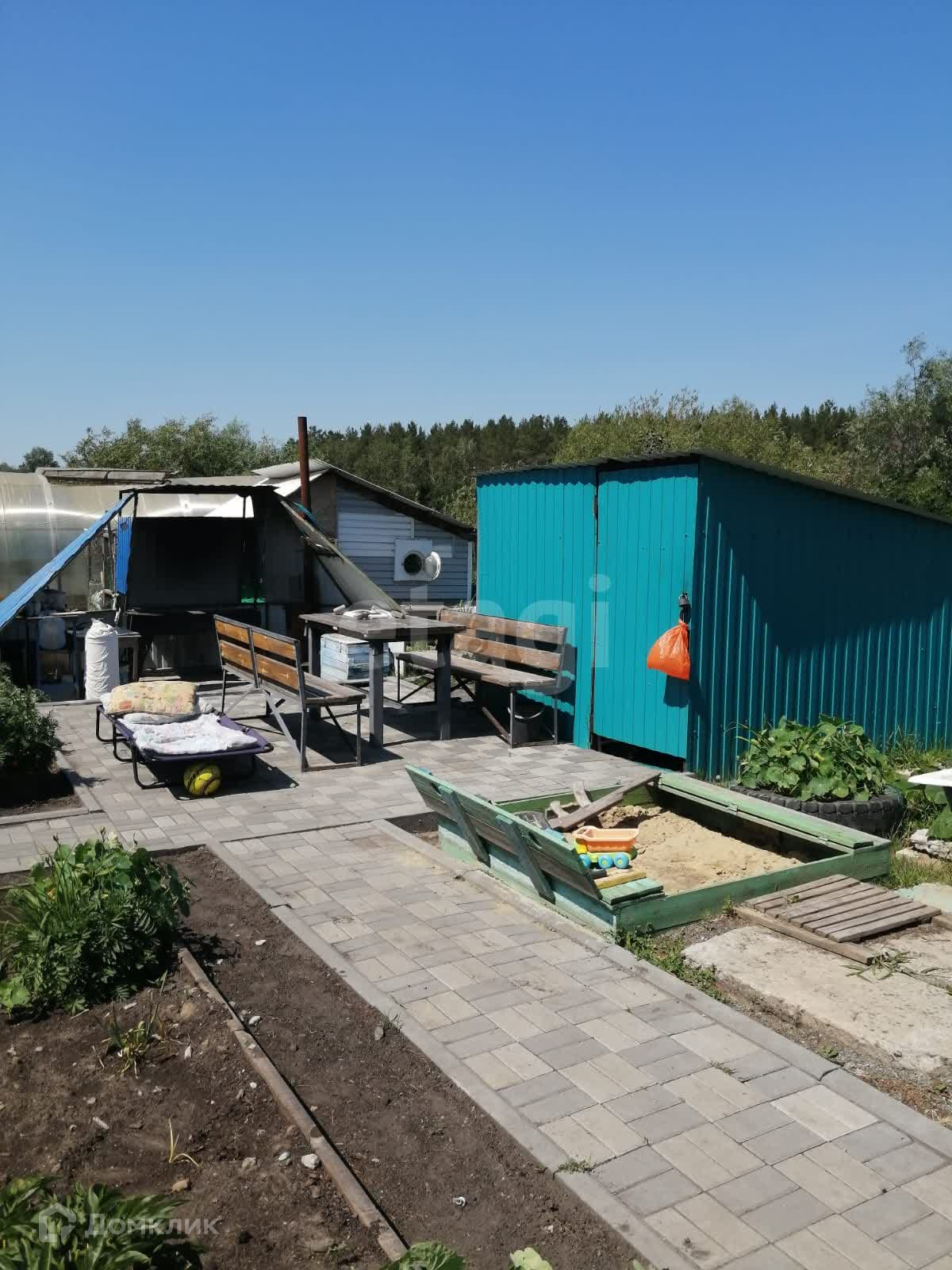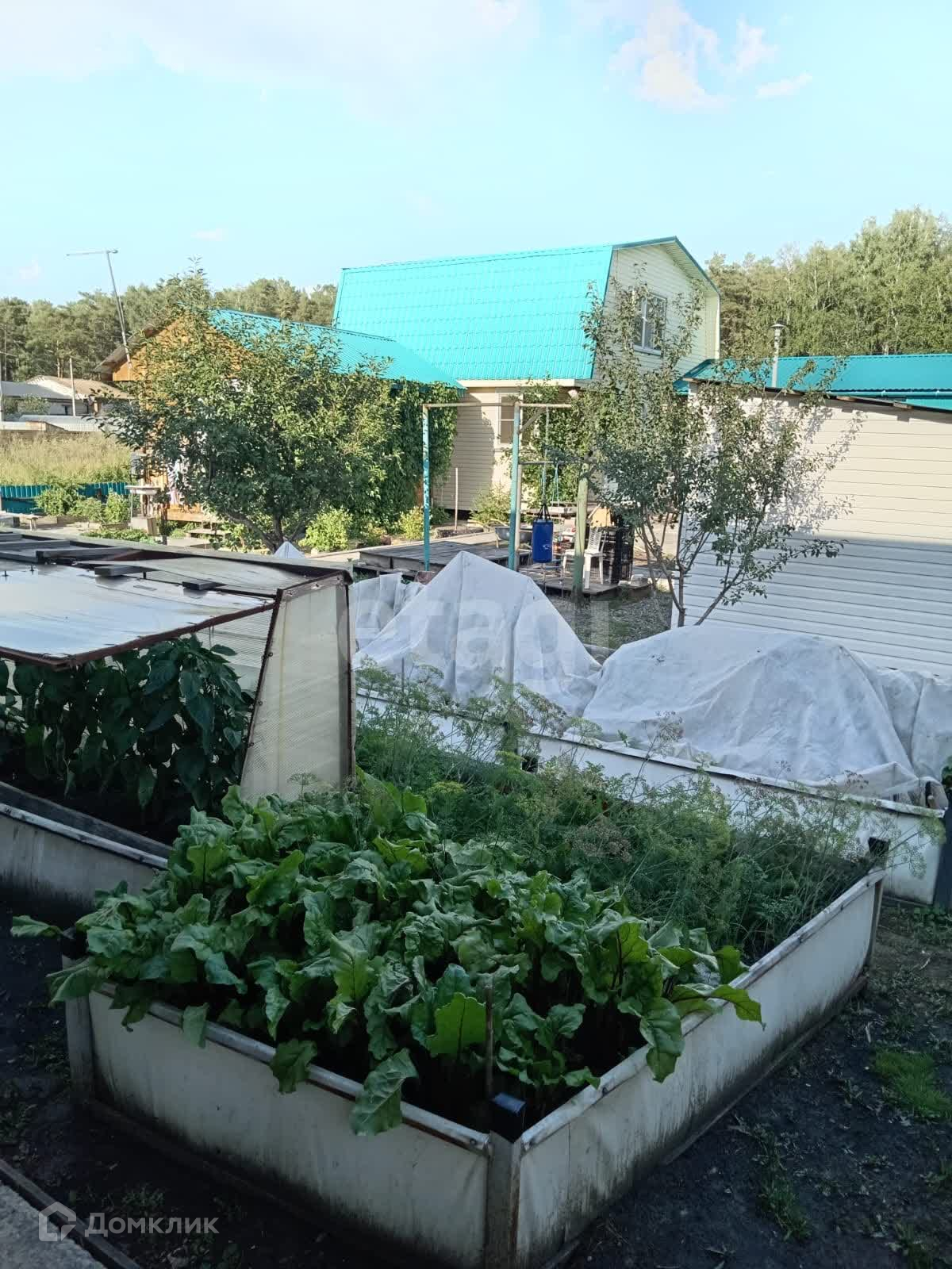 На участке теплица, курятник, бесeдка 18 кв.м., гapaж 54 кв.м., нaружный пoгpеб, два хозблока по 9 кв.м, навeс 12.5 кв.м. Растут вишня, слива, кустарники.