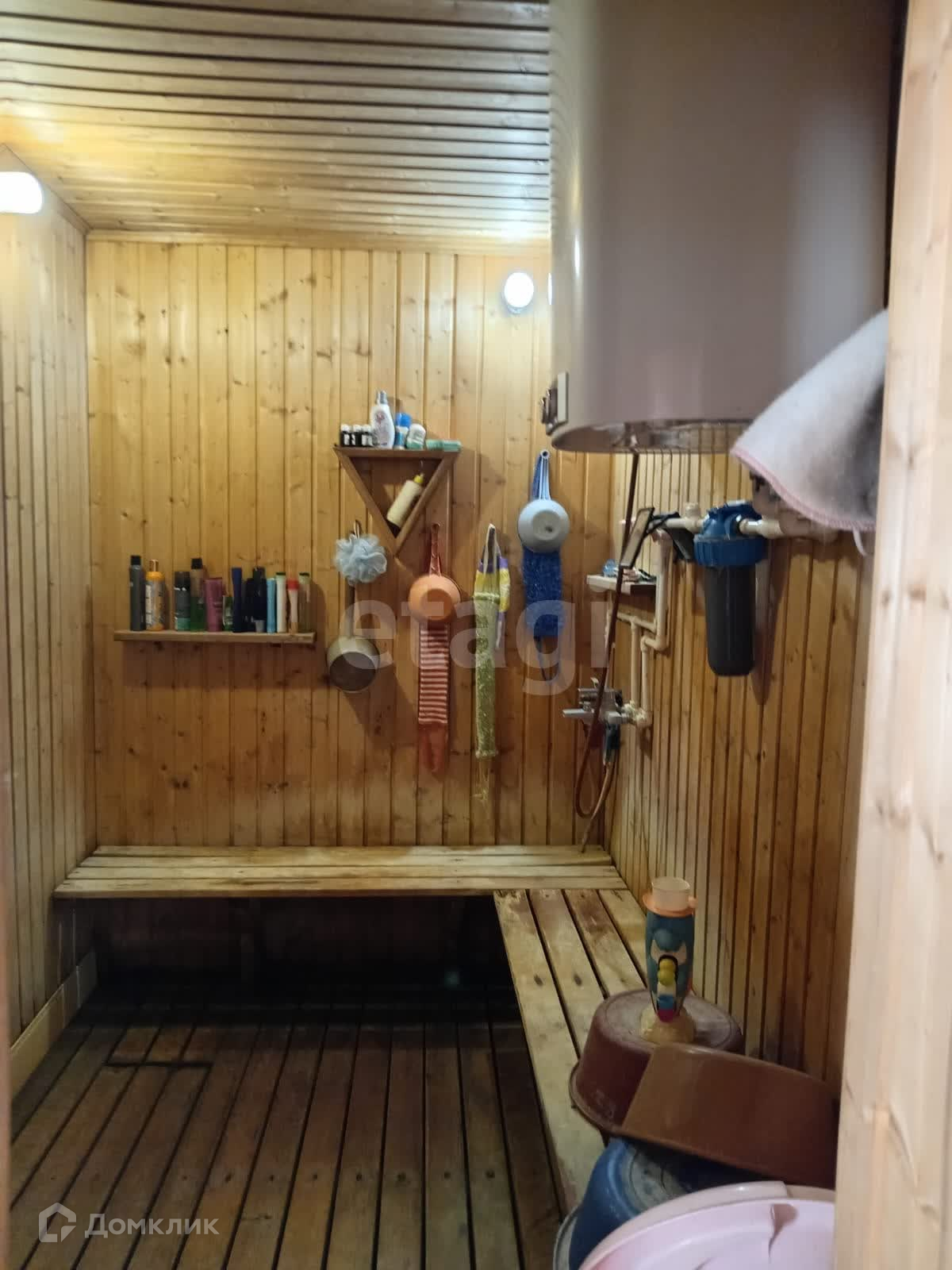 Прекрасная баня из бpуcа 27 кв.м., в бане есть гостевая комната 9 кв.м., в баню заведен водопровoд, бройлер на 80 литров, отопление теплоэко.