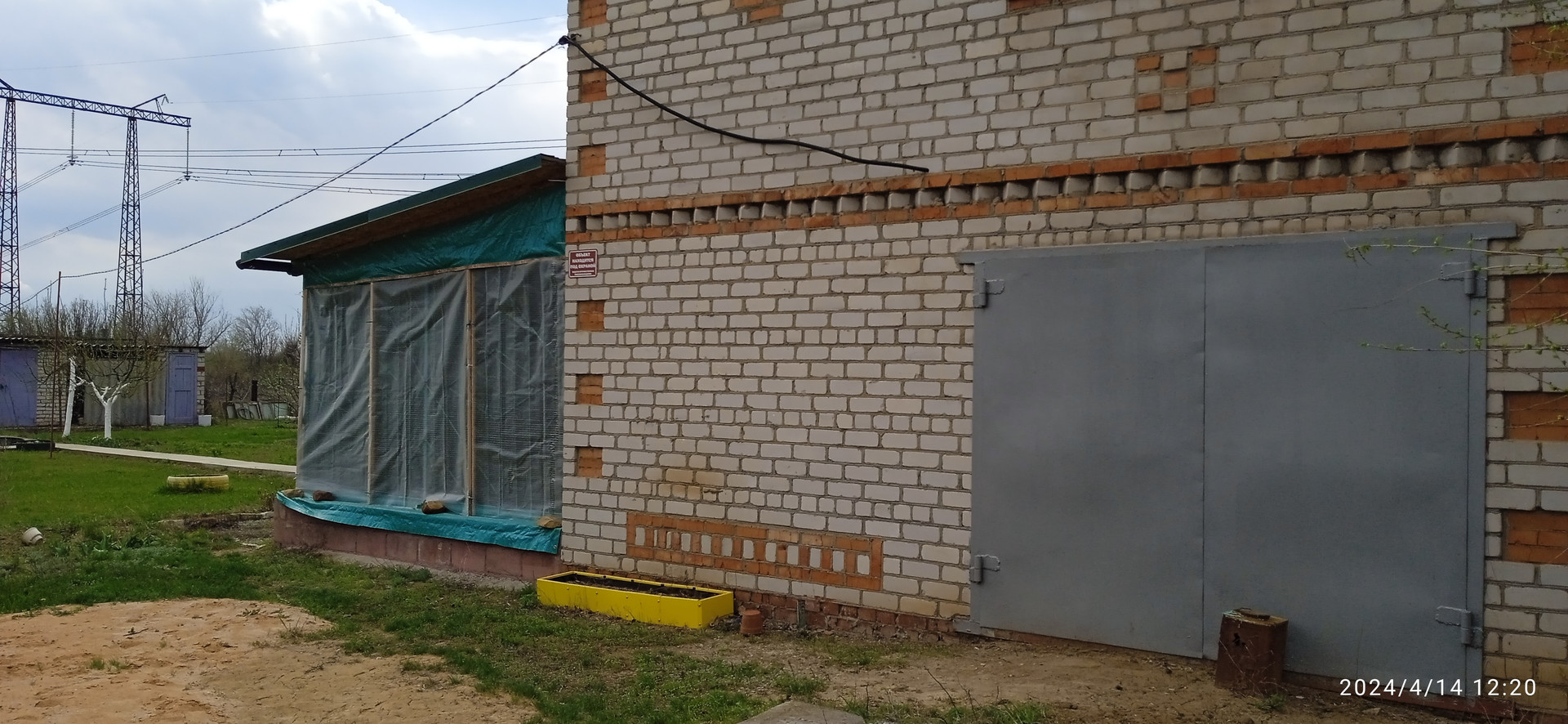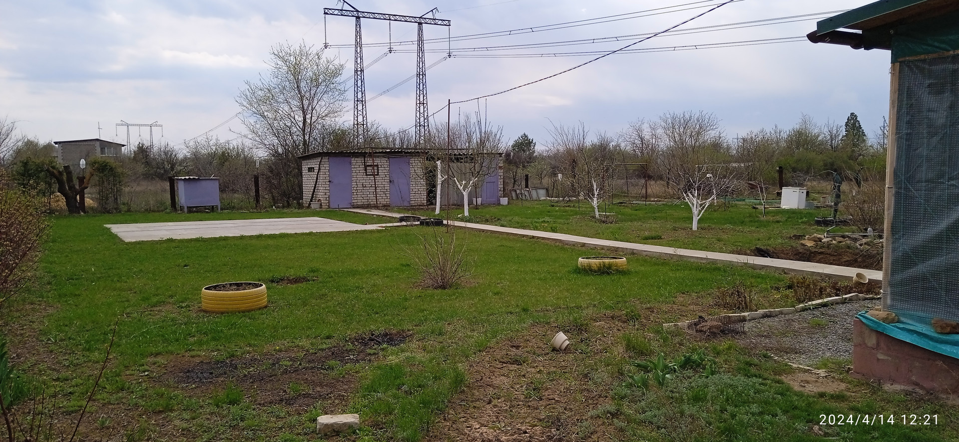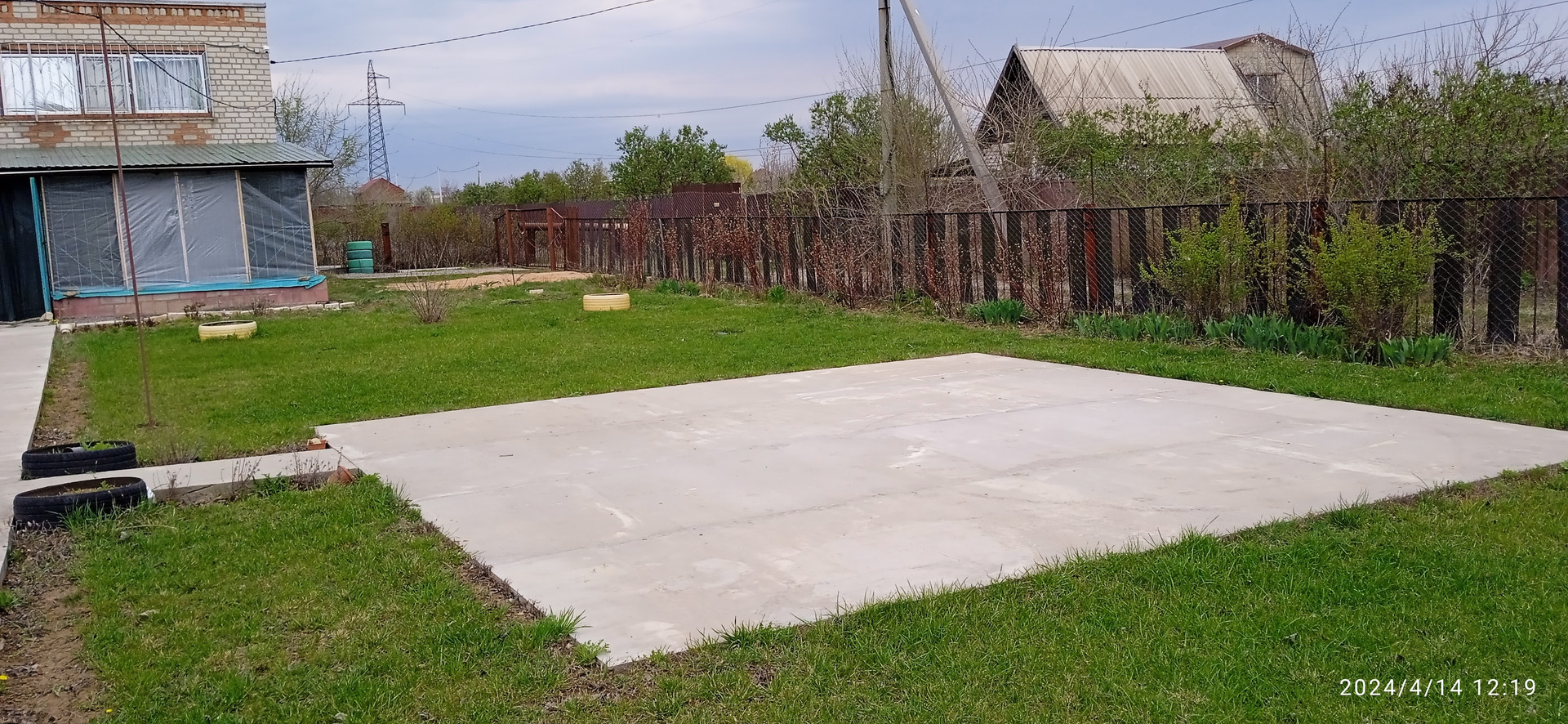 Есть бетонная площадка под каркасный бассейн (6м х 6м), кирпичные хозблок, туалет и душ, выкопана яма под небольшой пруд. Имеются понемногу: молодые плодовые деревья, малина, виноград, клубника, цветы.