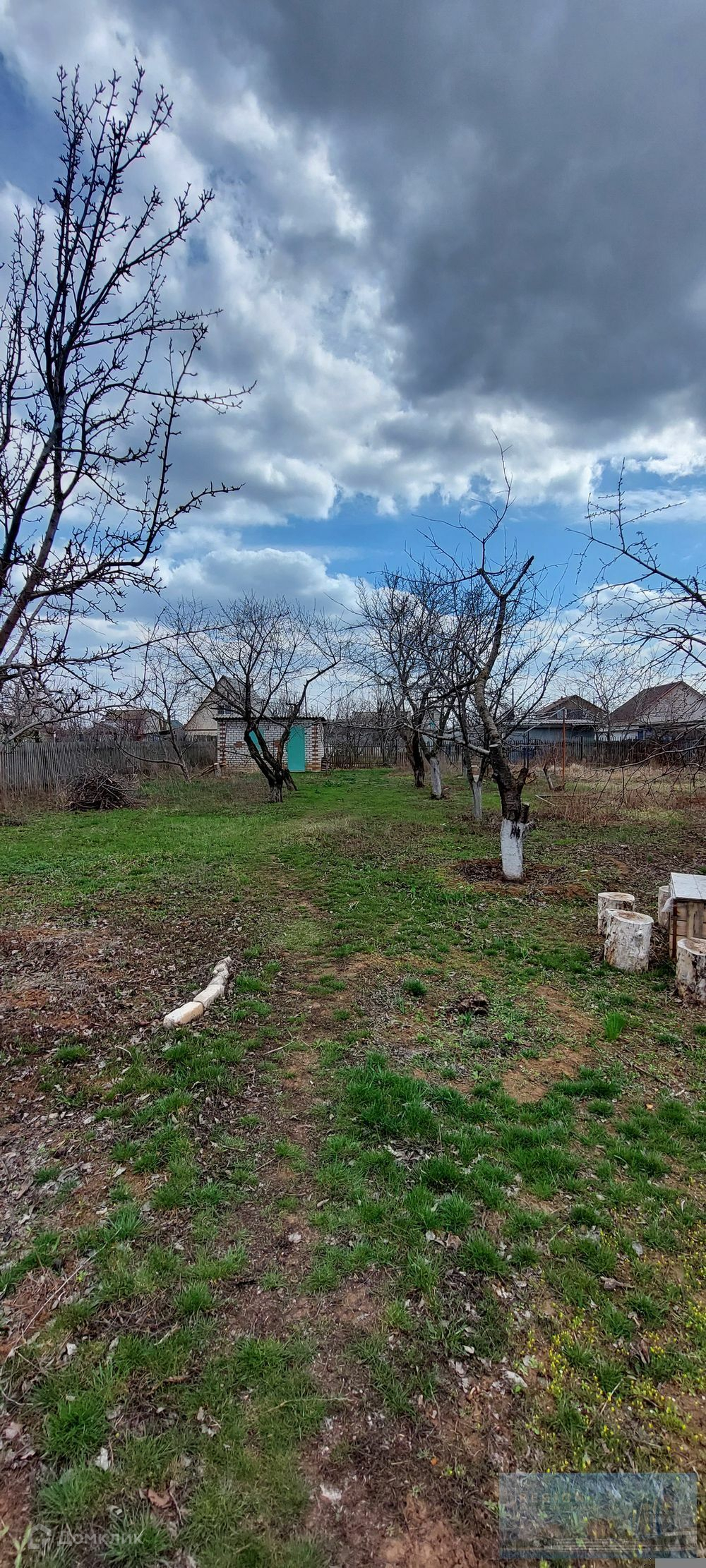 9 соток, есть хороший кирпичный сарайчик для хоз. нужд.