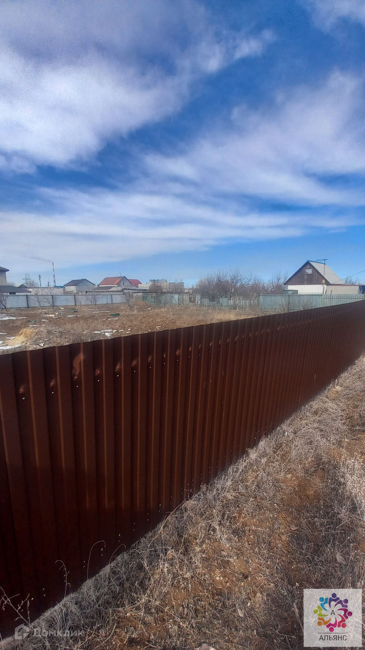 Участок огорожен забором из профлиста,есть ворота и калитка.