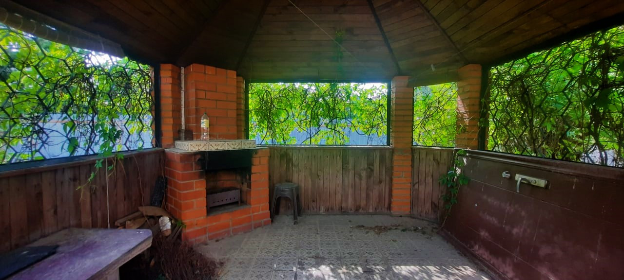 Большая беседка с мангалом, место под гамак.