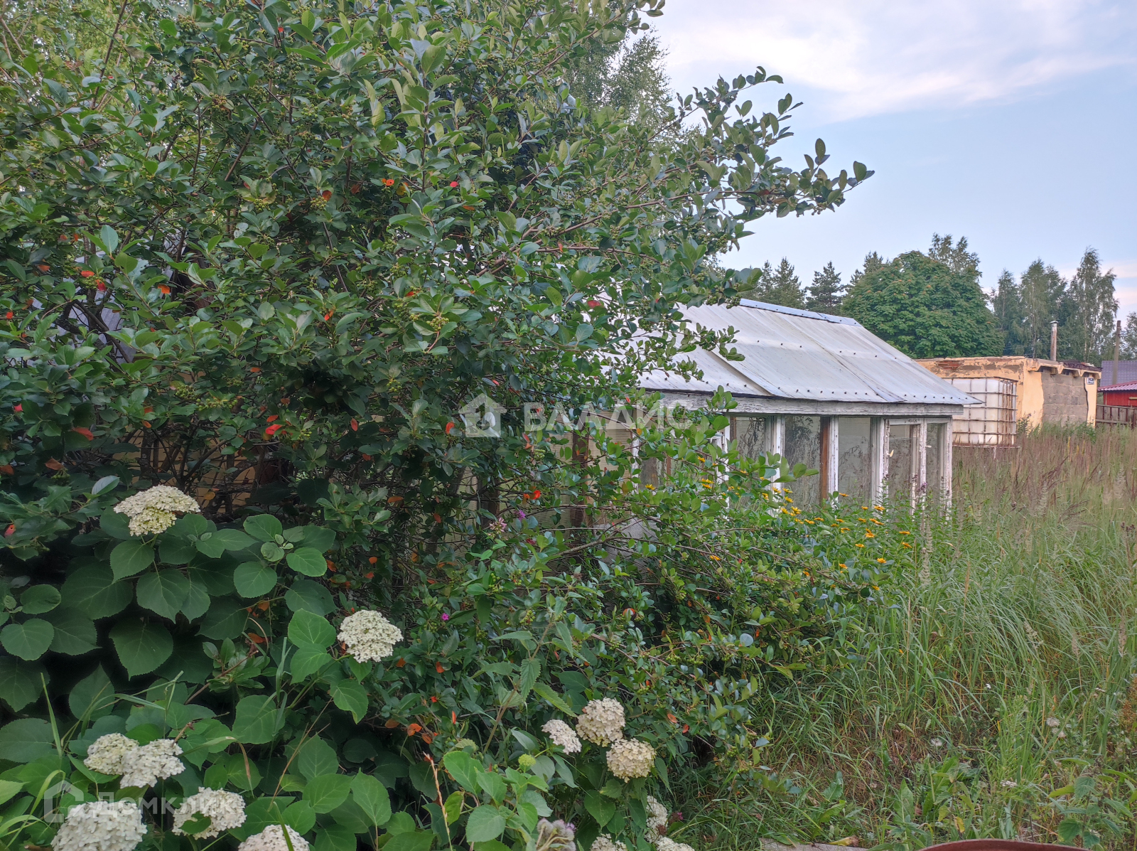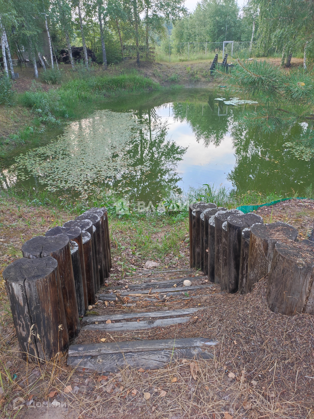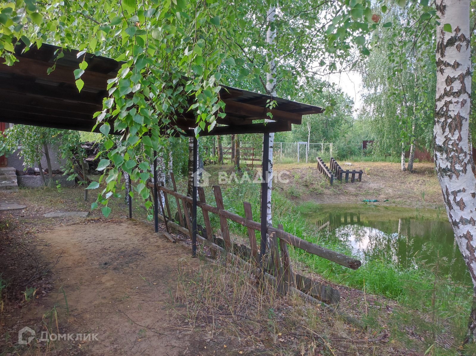 Участок 6 соток. Помимо дома на участке беседка, гараж и баня с парилкой, рядом пруд.