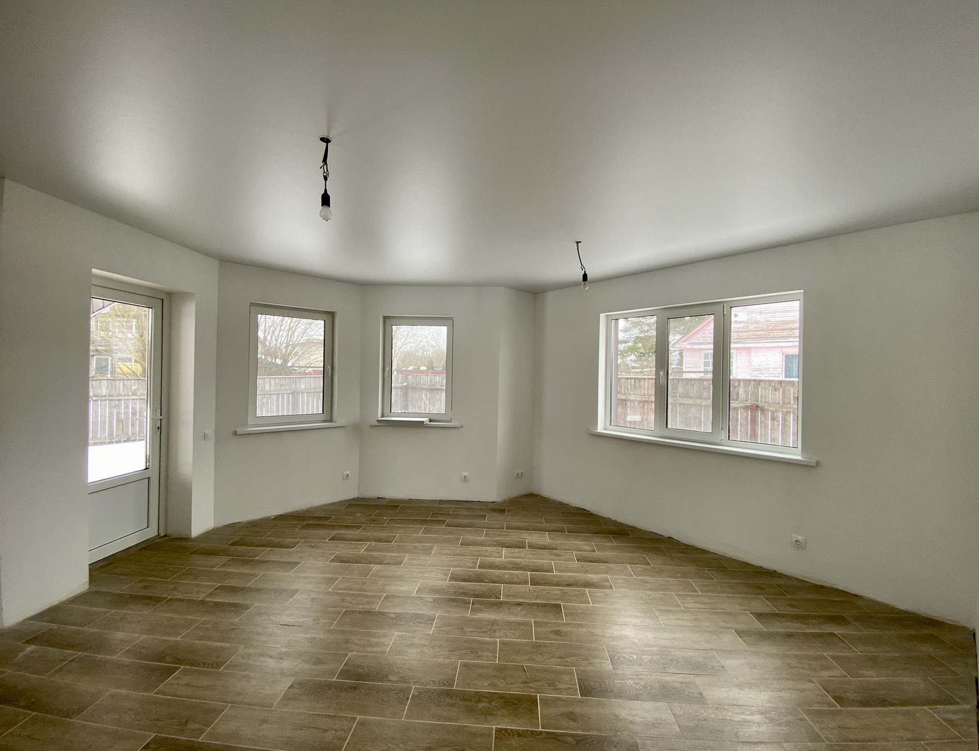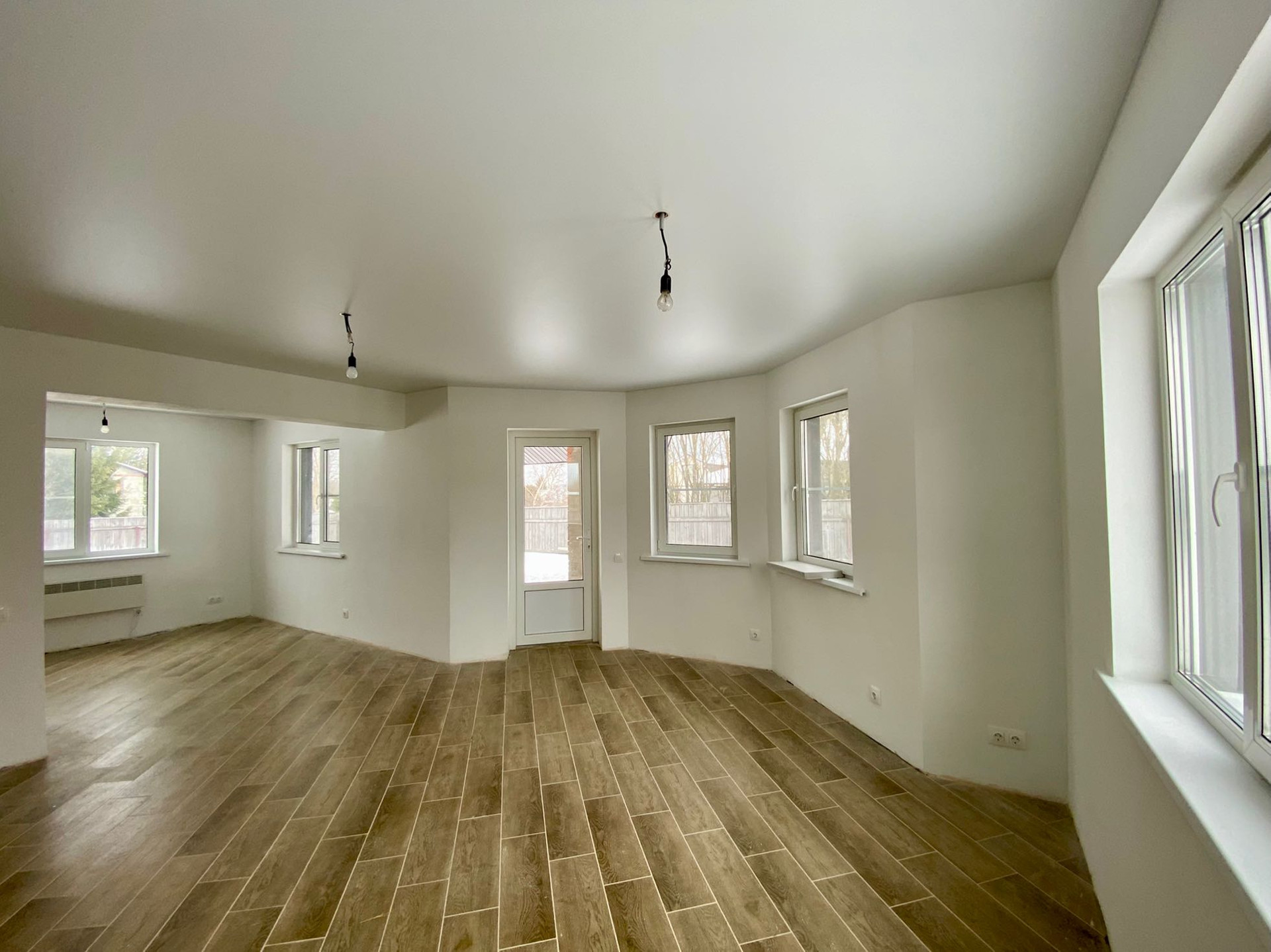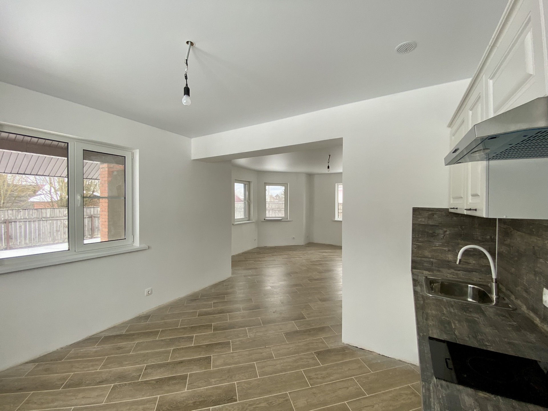 1 этаж: просторная кухня с обеденной и гостиной зоной, спальня, с/у с окном, бойлерная, гардеробная. Полы этажа  полностью выложены керамогранитом.