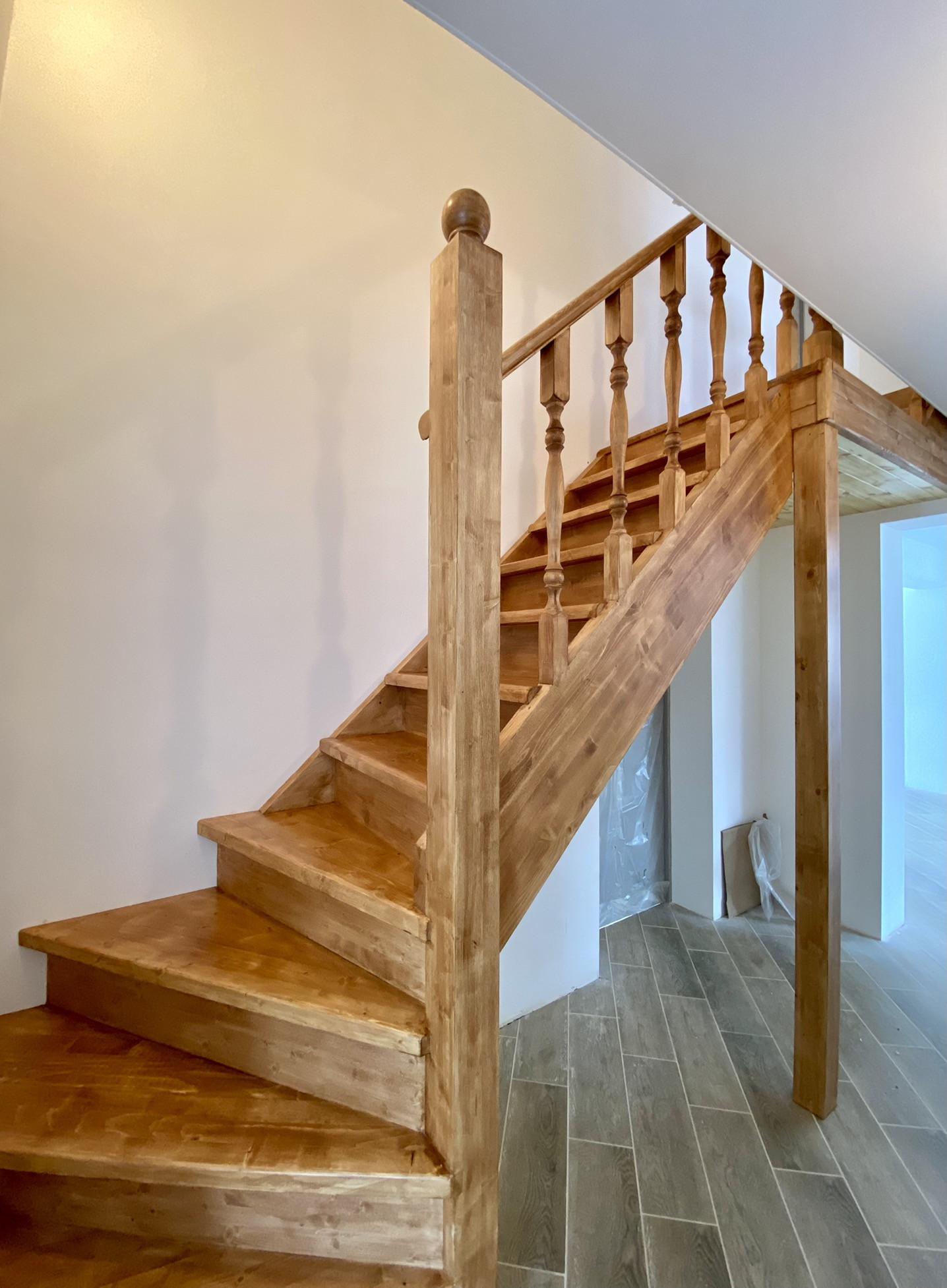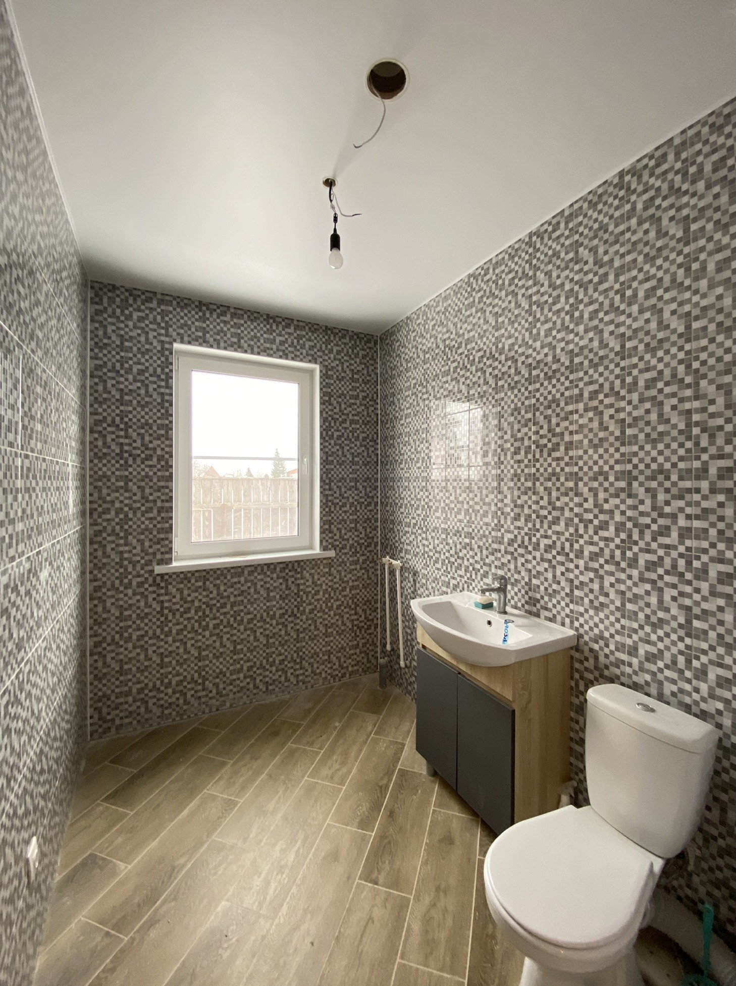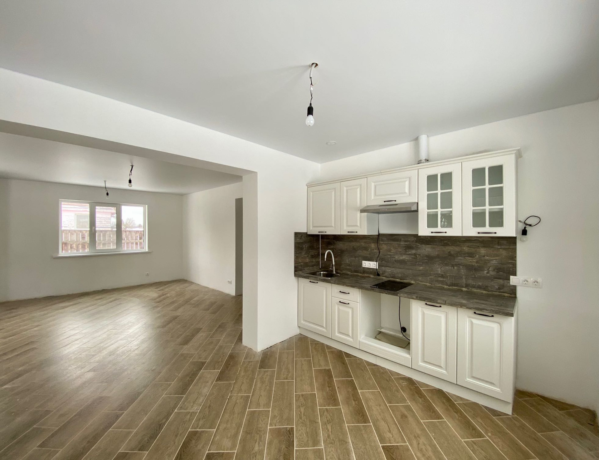 1 этаж: просторная кухня с обеденной и гостиной зоной, спальня, с/у с окном, бойлерная, гардеробная. Полы этажа  полностью выложены керамогранитом.