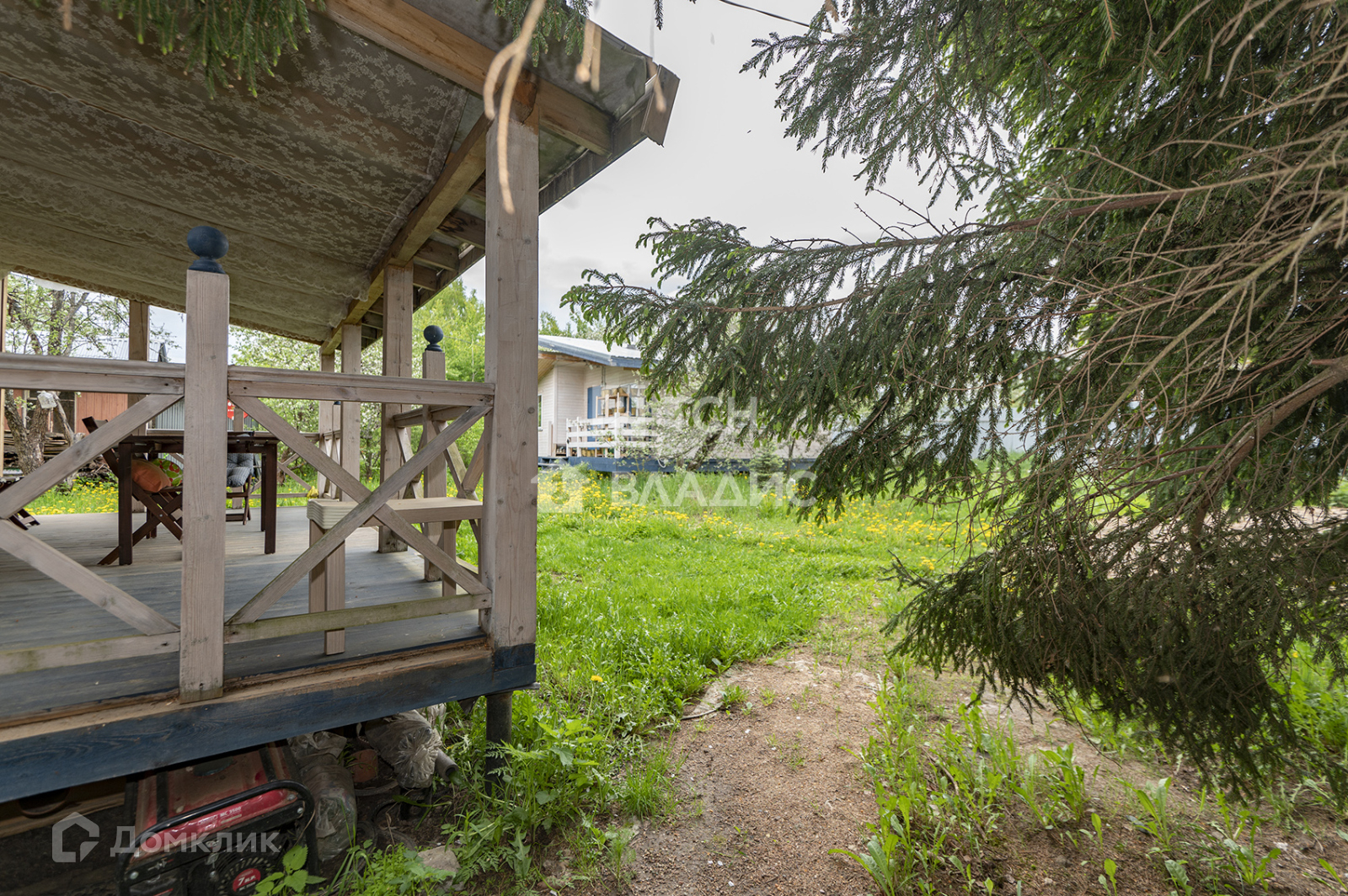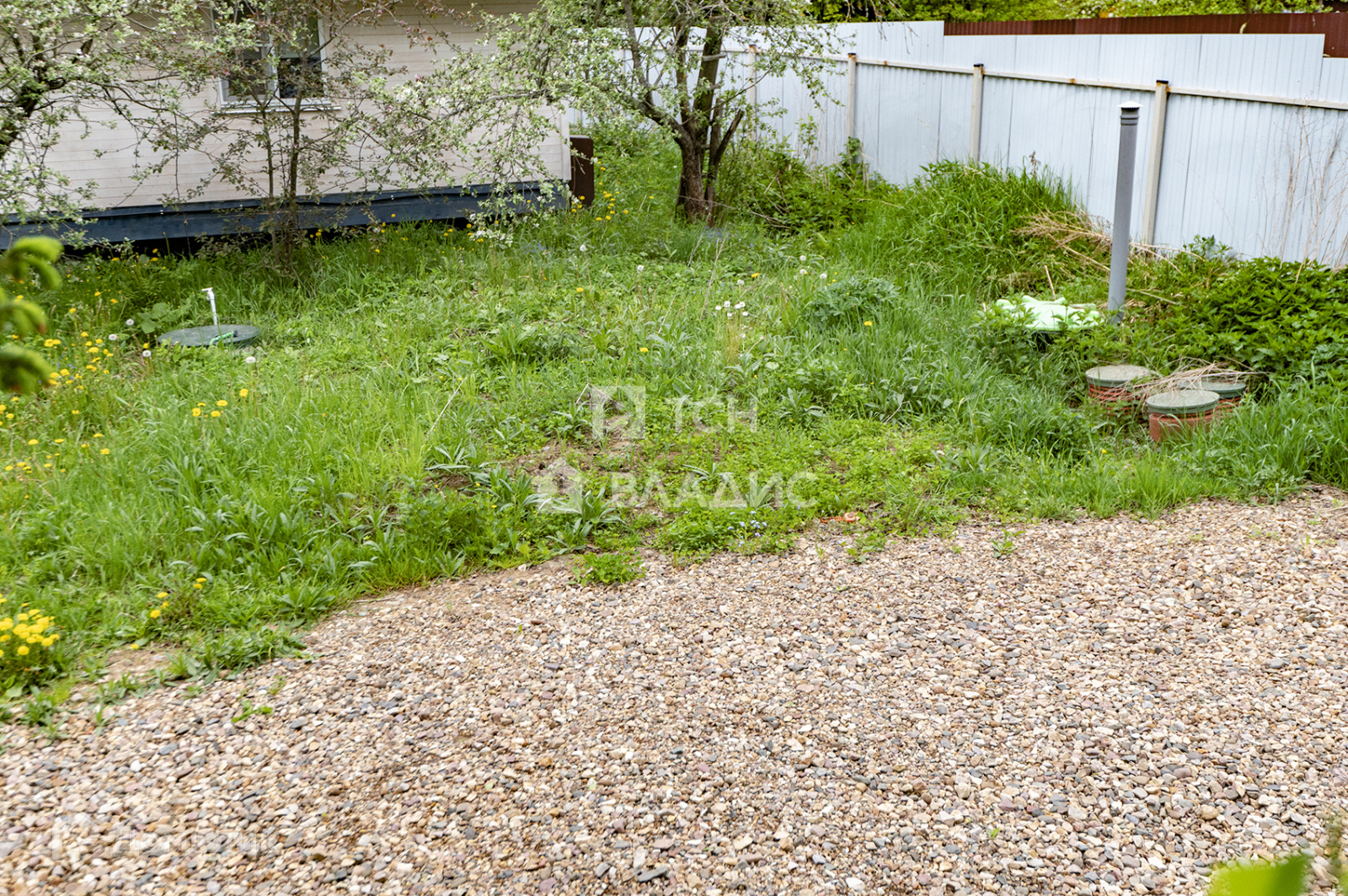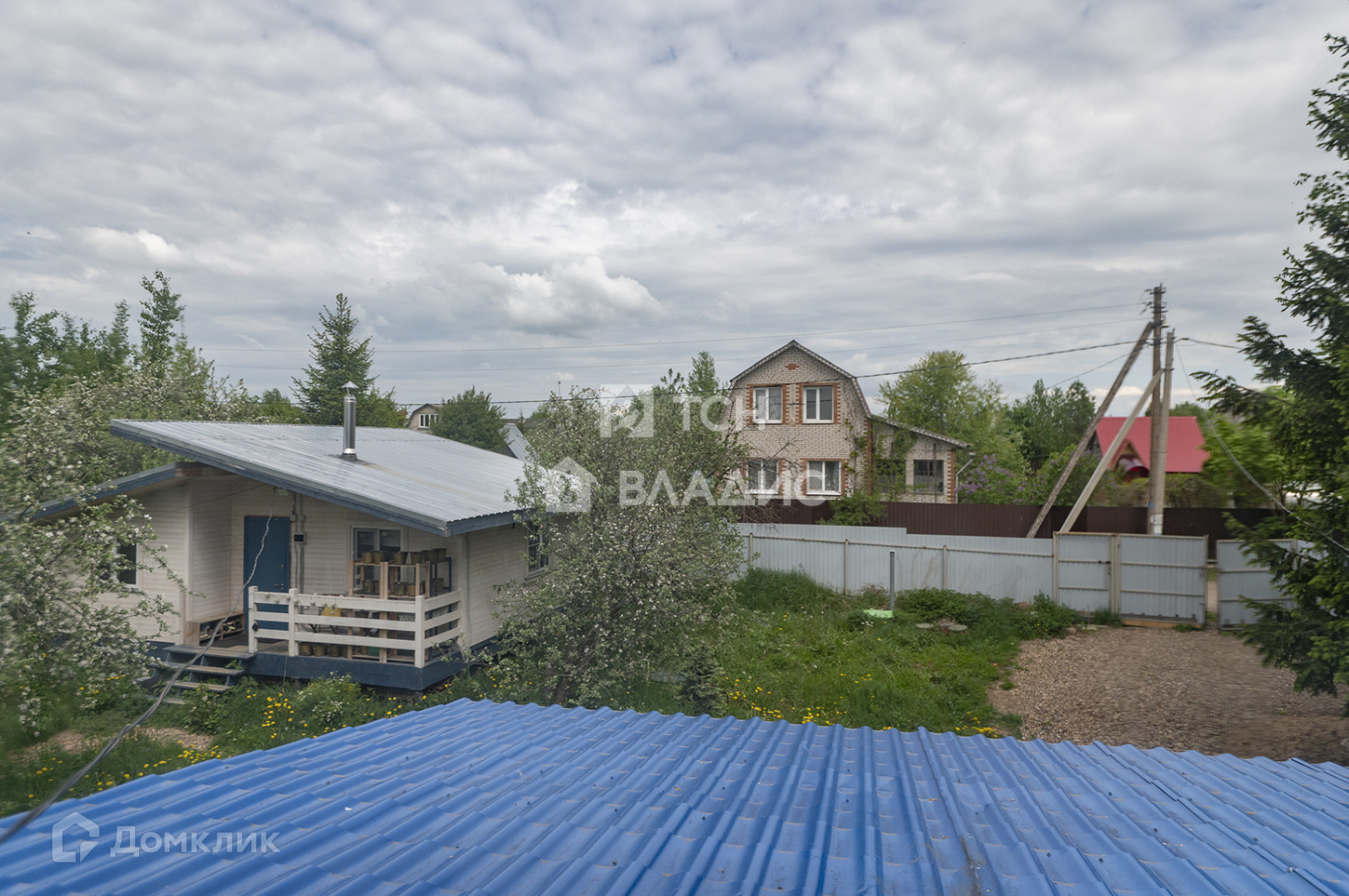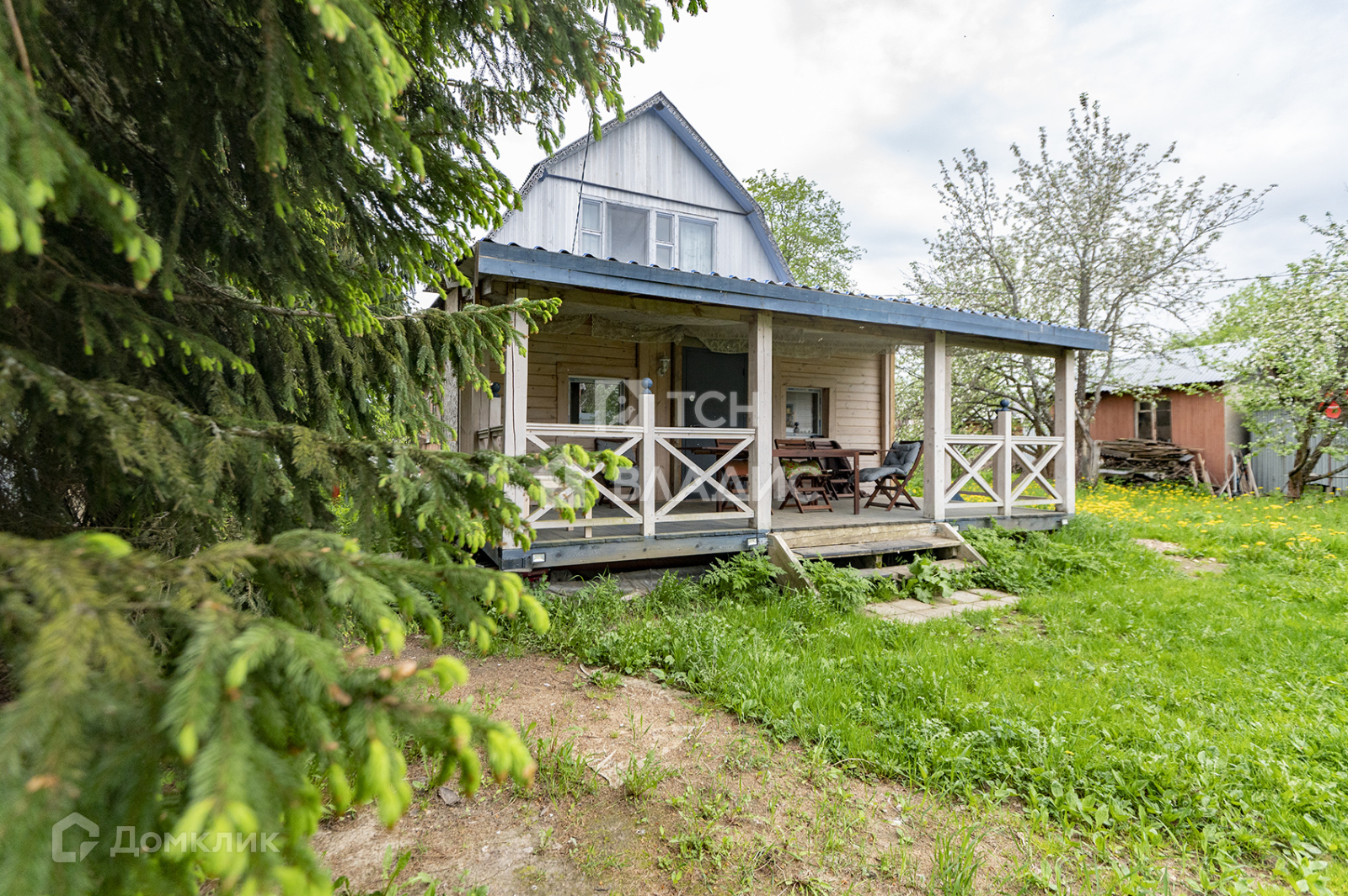 Участок 8,5 соток. На участке есть многолетние ели и множество других деревьев, установлена система полива, ворота, свой выход к водоему, территория огорожена забором со всех сторон, между соседями рабицей, а со стороны улицы профлистом. Установлена внешняя подсветка на участке и доме.