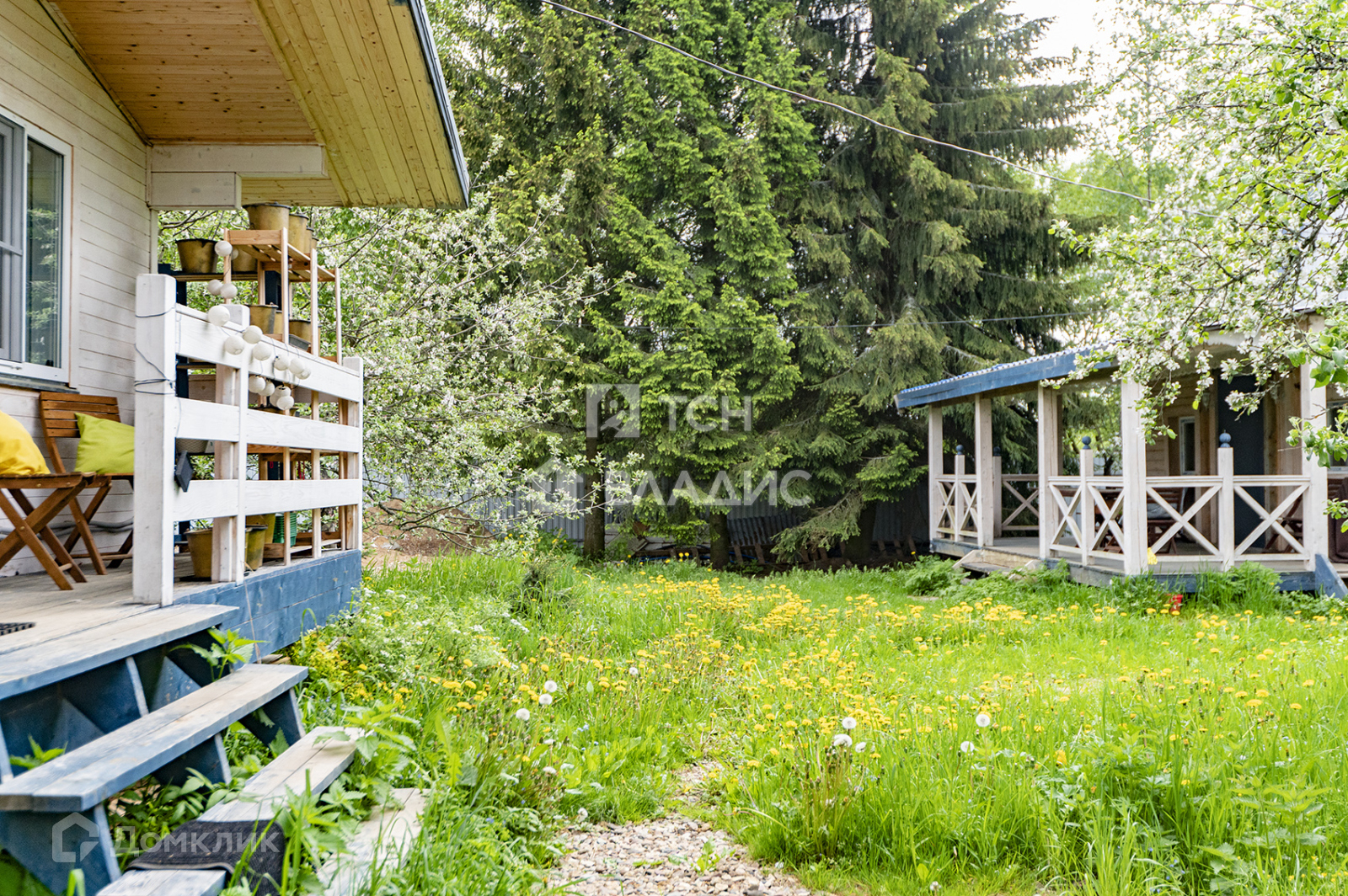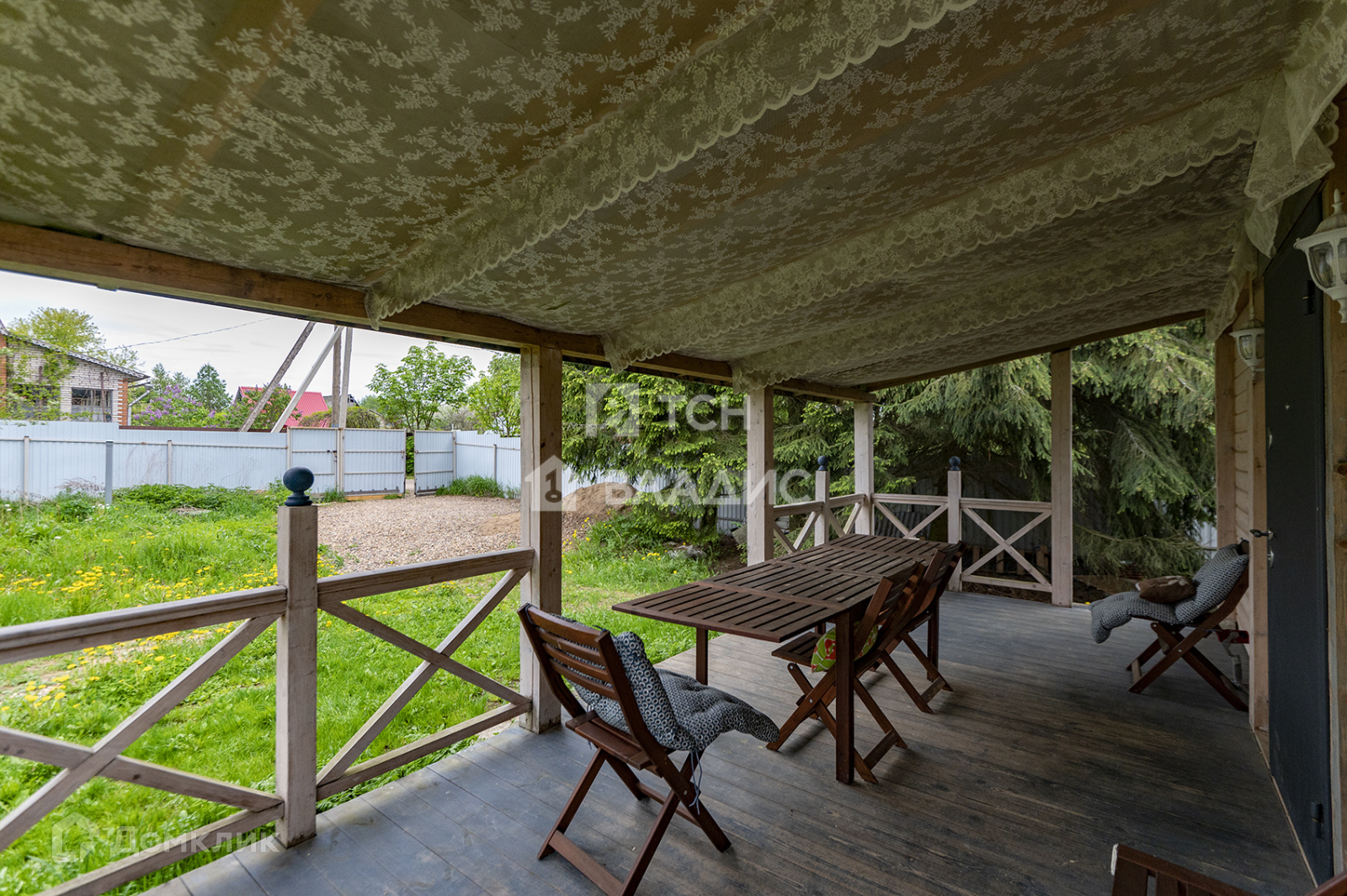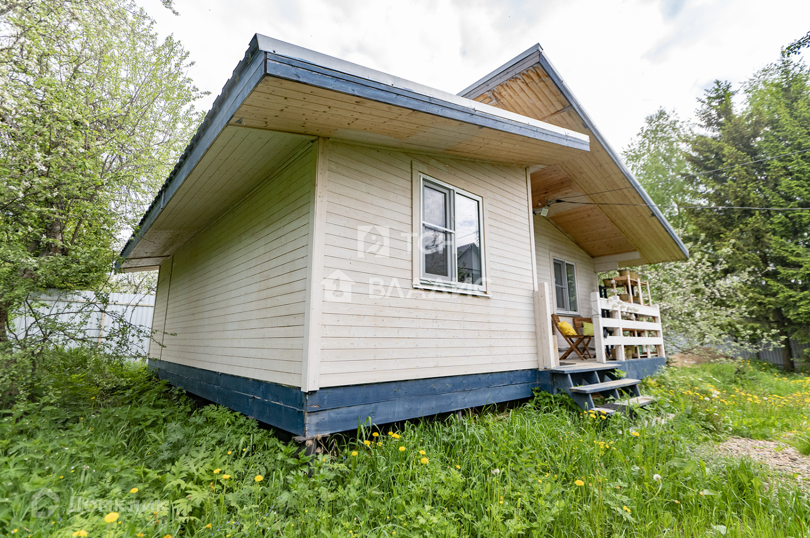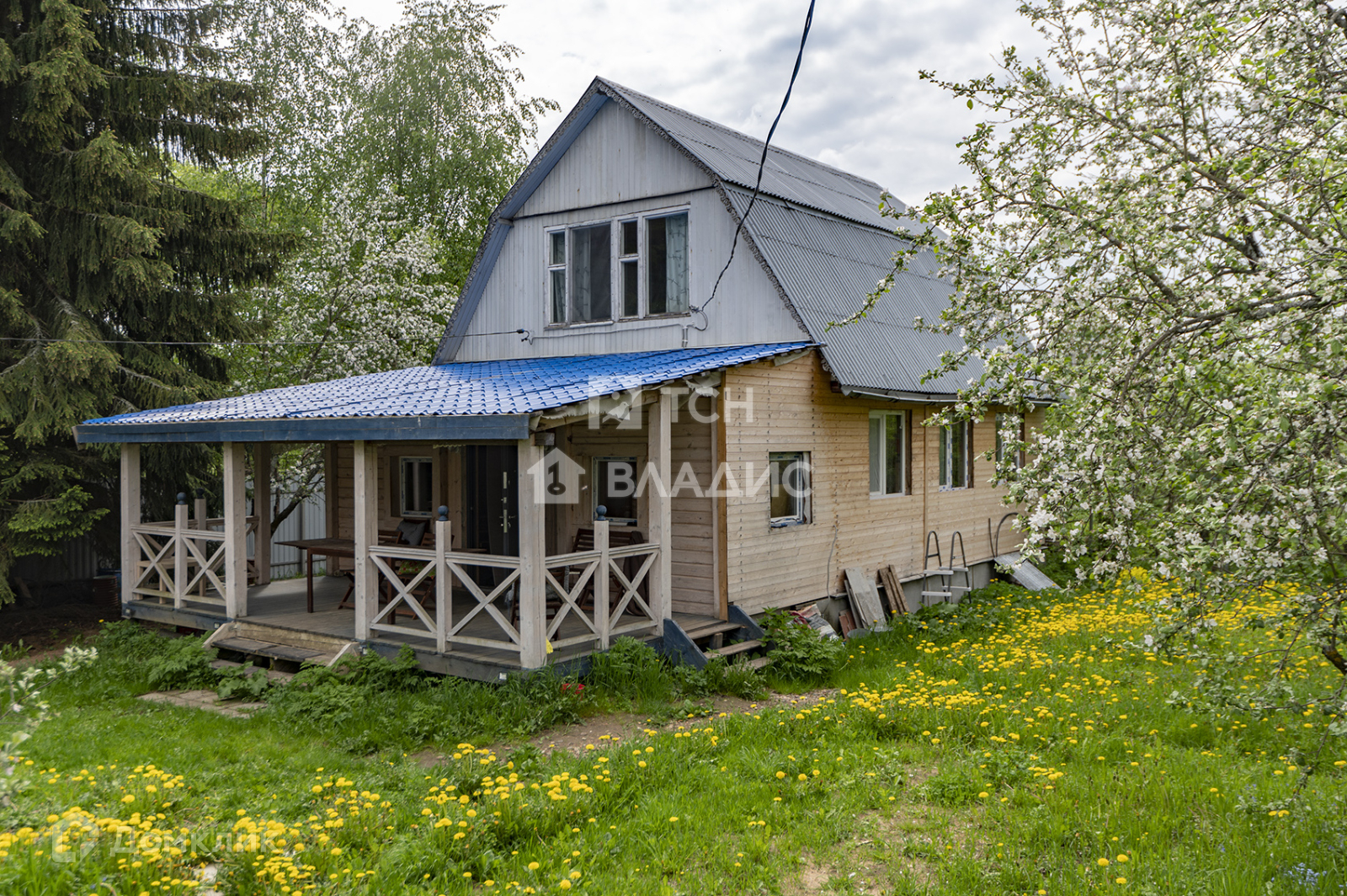 Участок 8,5 соток. На участке есть многолетние ели и множество других деревьев, установлена система полива, ворота, свой выход к водоему, территория огорожена забором со всех сторон, между соседями рабицей, а со стороны улицы профлистом. Установлена внешняя подсветка на участке и доме.