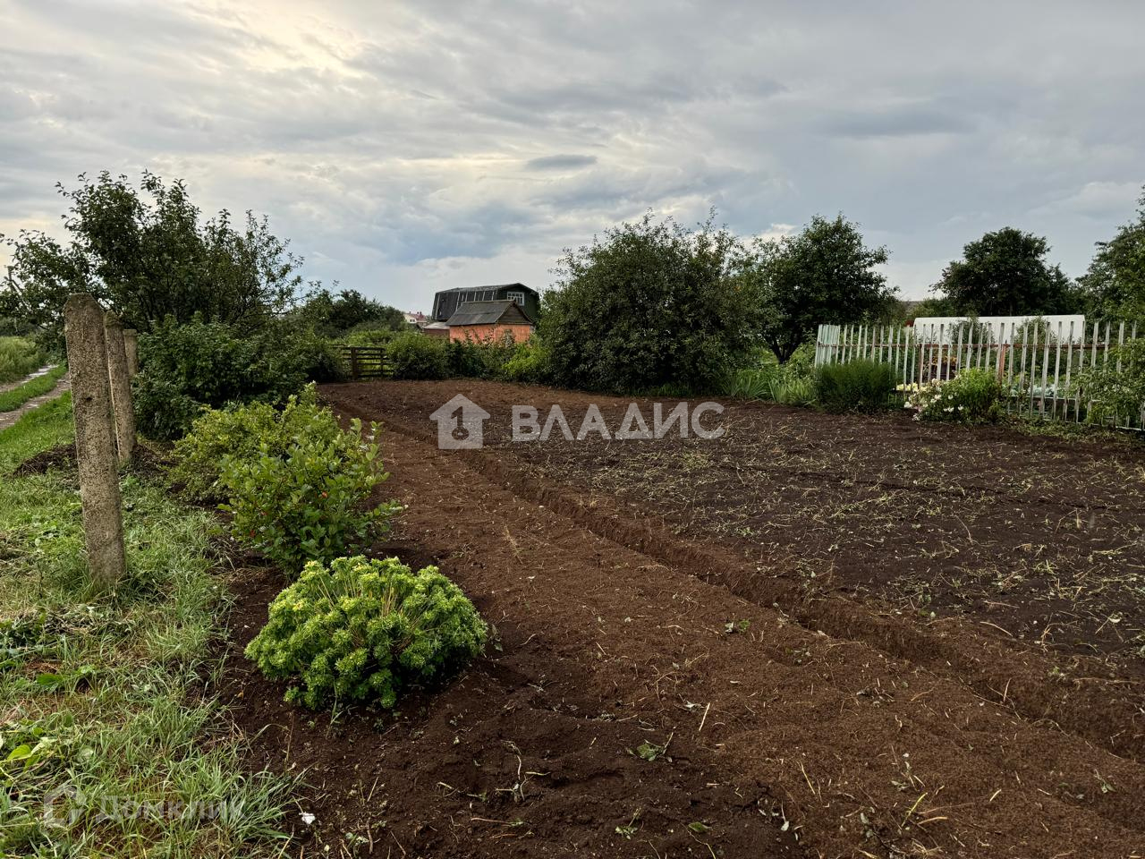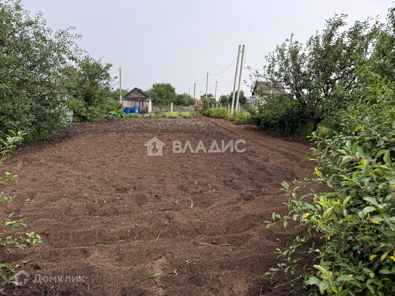По участку проходит свет, есть небольшой летний домик, есть насаждения, участок ухоженный.